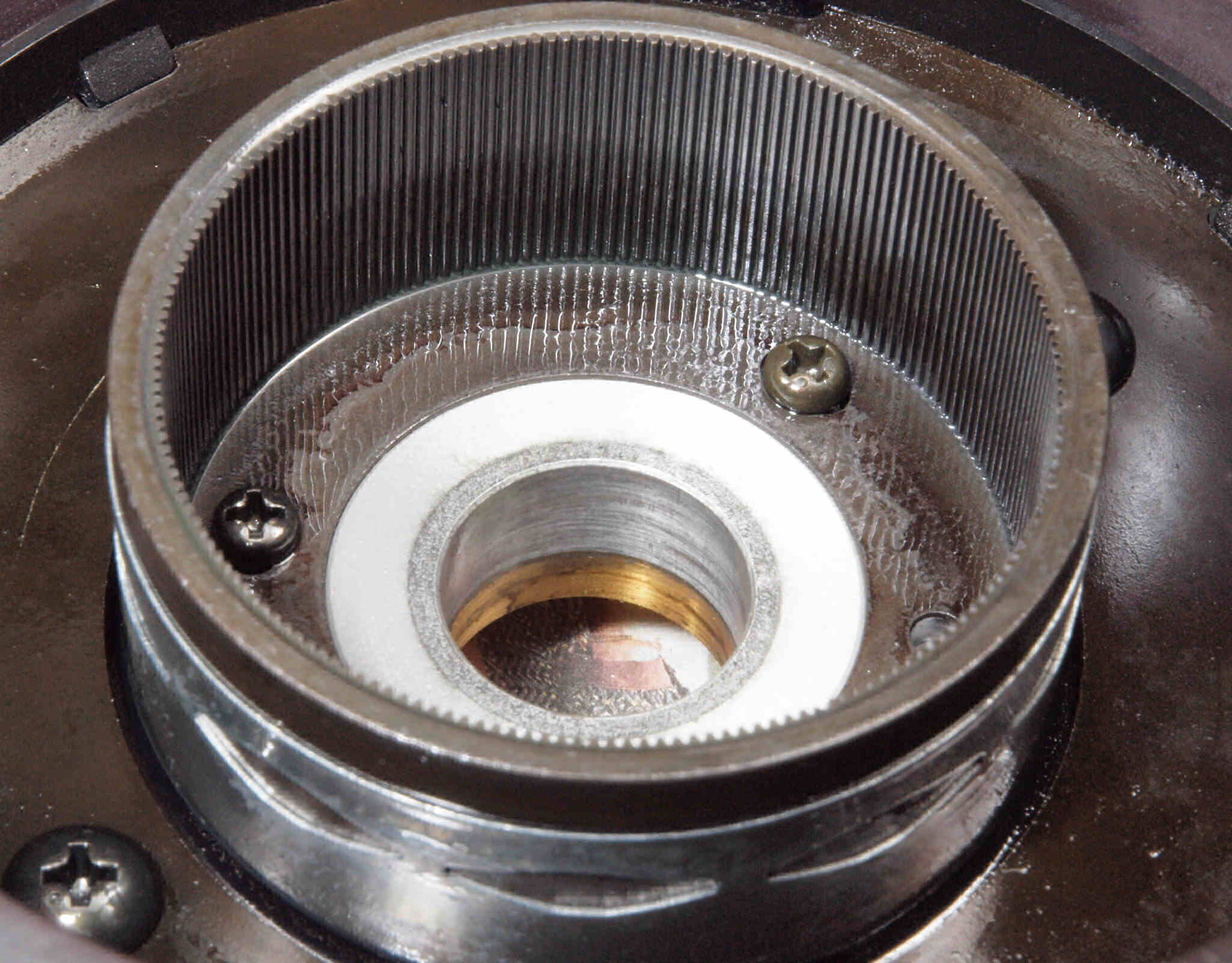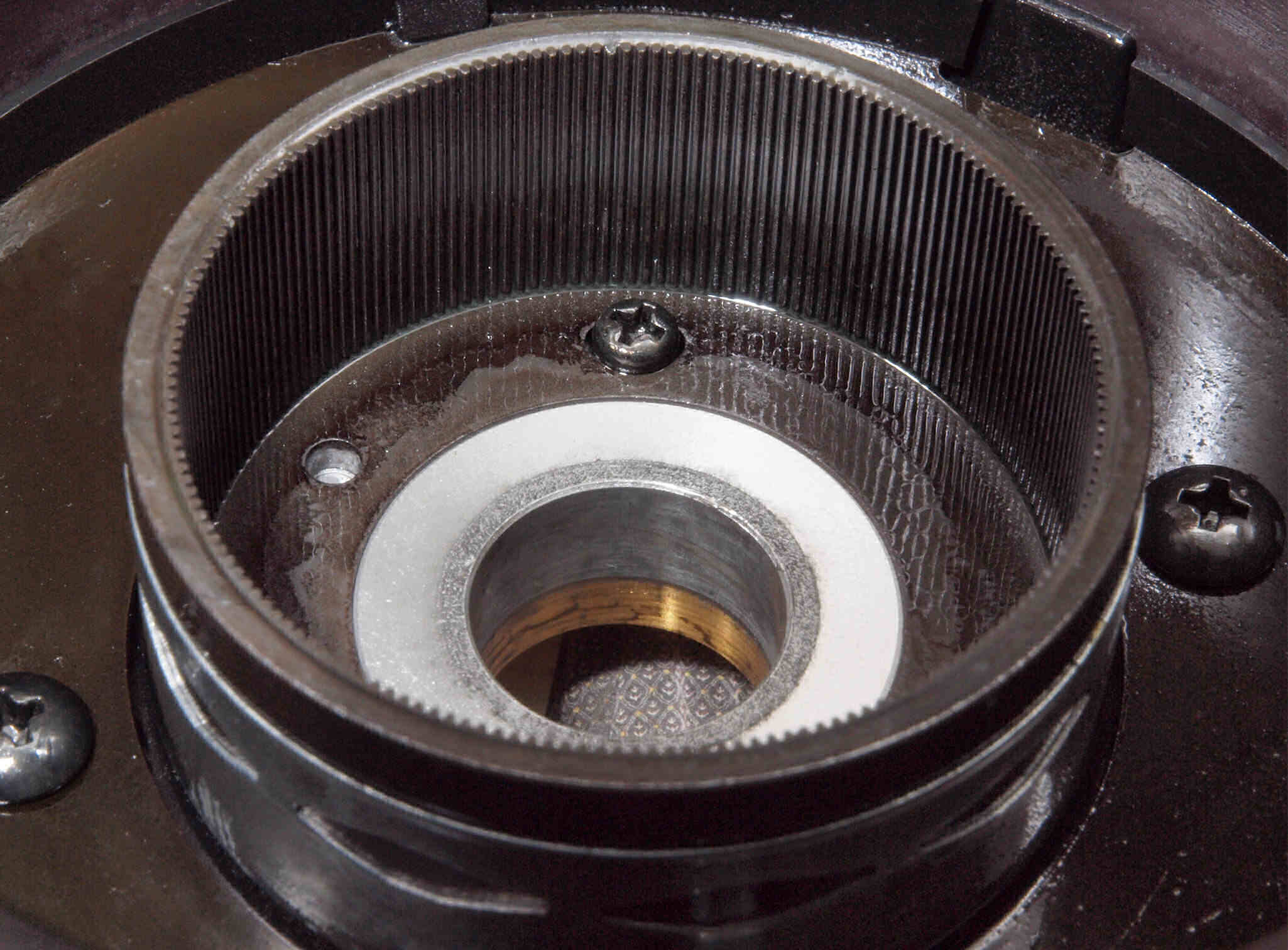 D78. 修理後 ターンテーブル裏 パルス発生磁石山、反対側。 CRCを軽く塗布し、錆の発生を防ぐ。