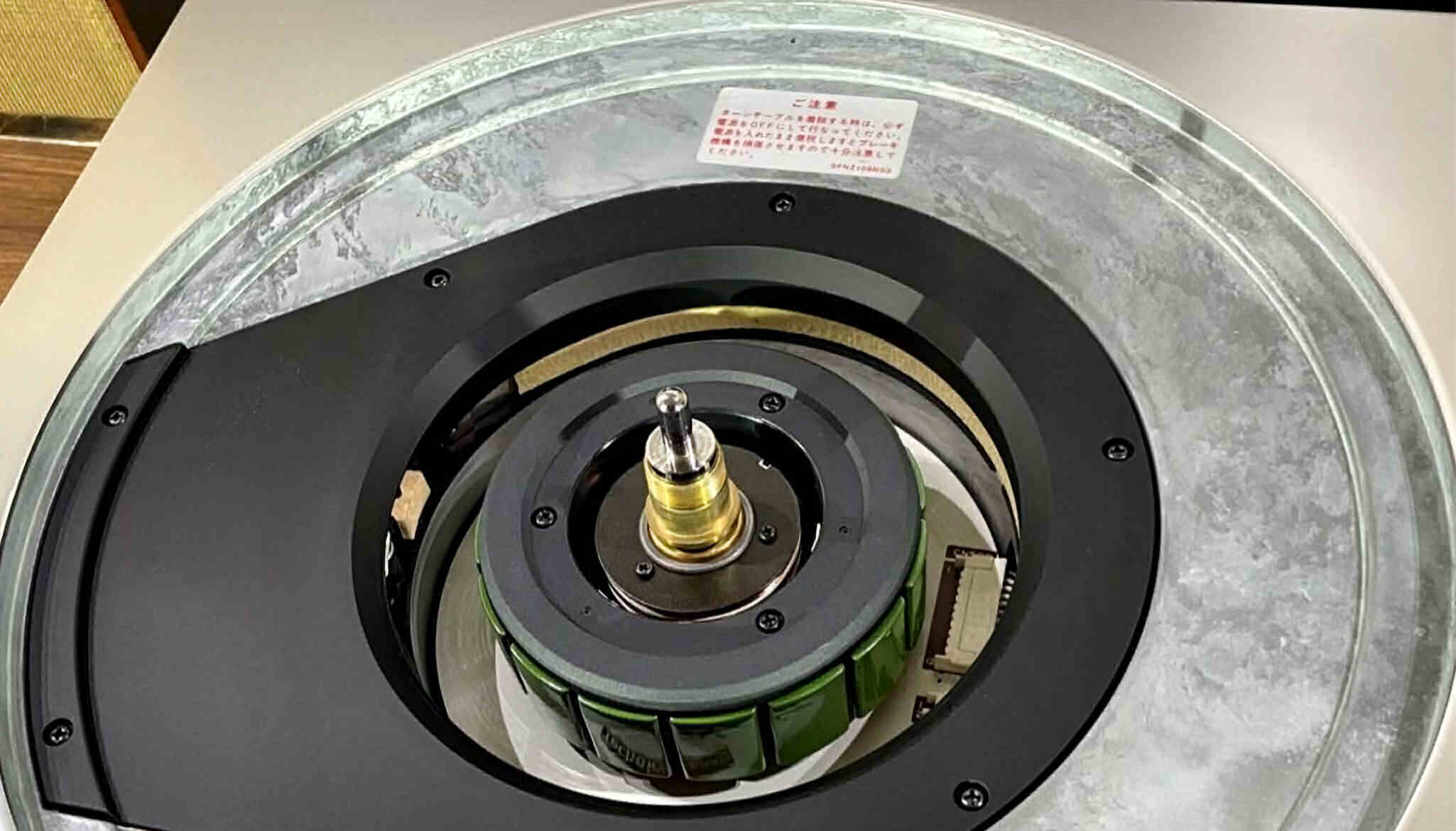 A16. 点検中 タンテーブルを外し、上から見る。