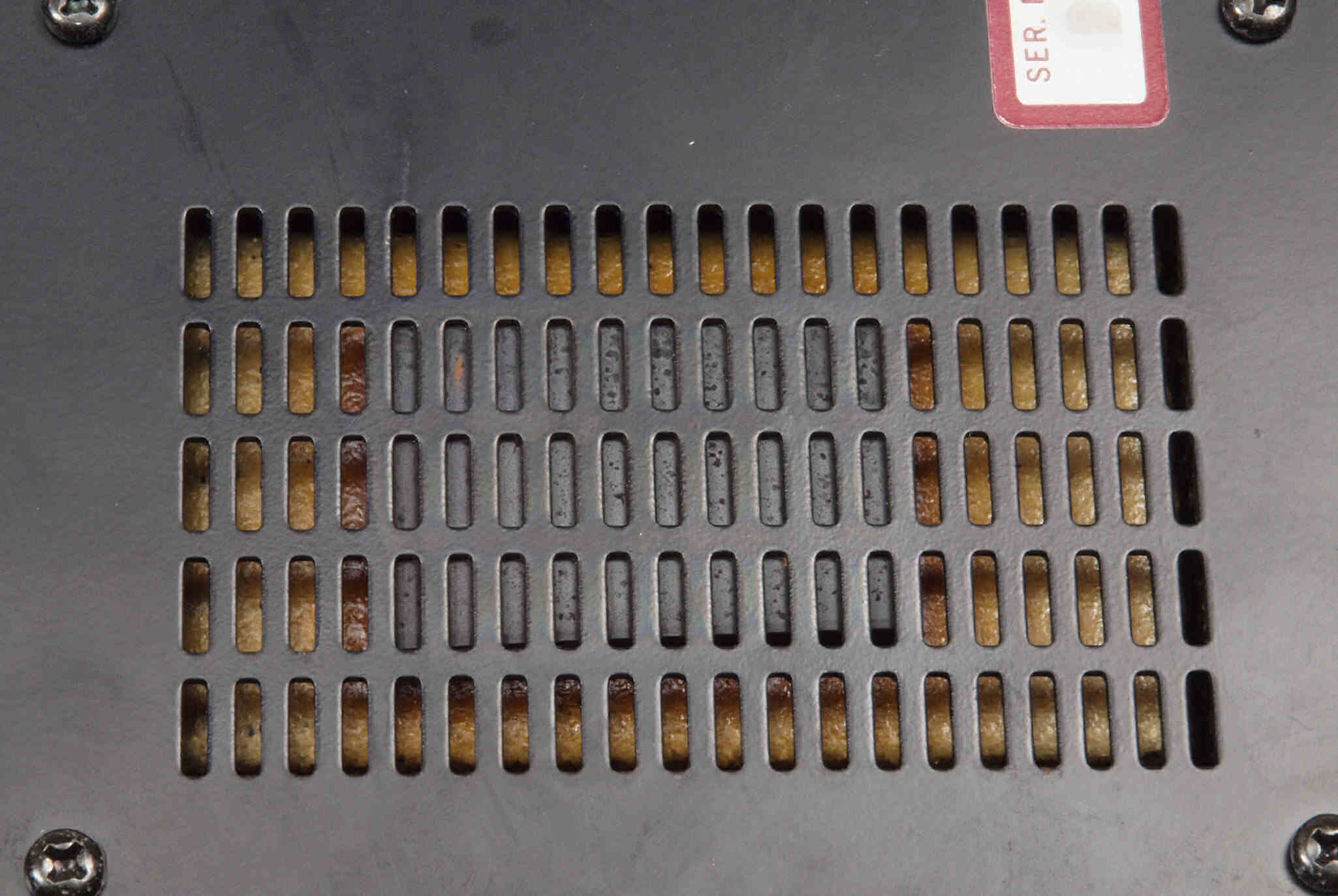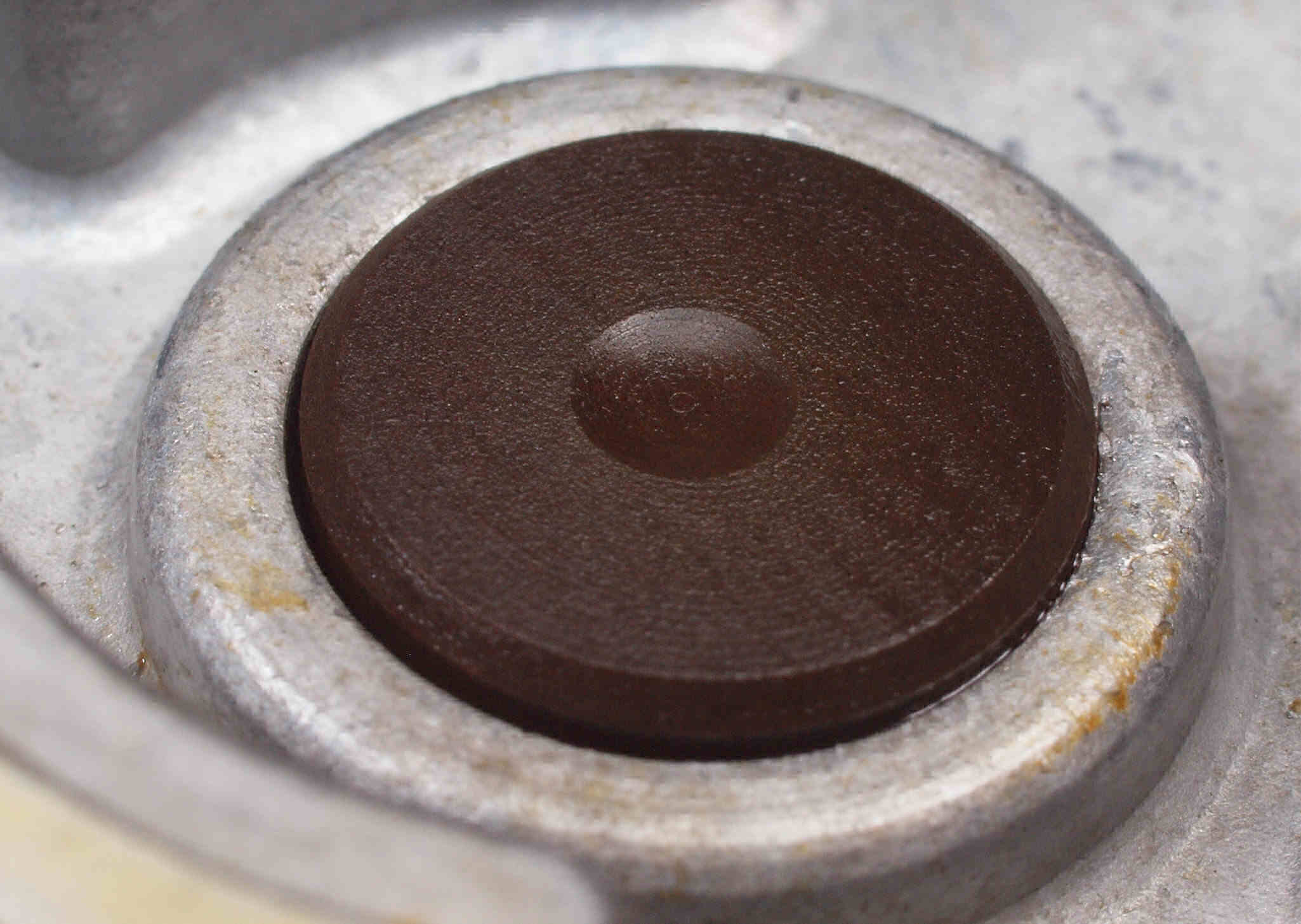 A35. 点検中 ターンテーブル裏 アウターロータの磁石。錆が発生し赤みを帯びている。