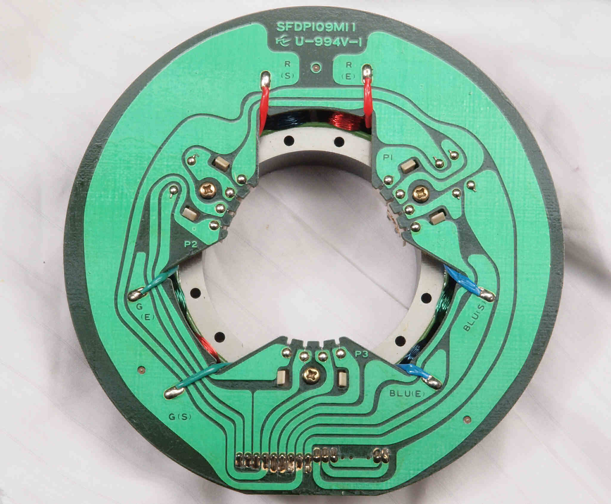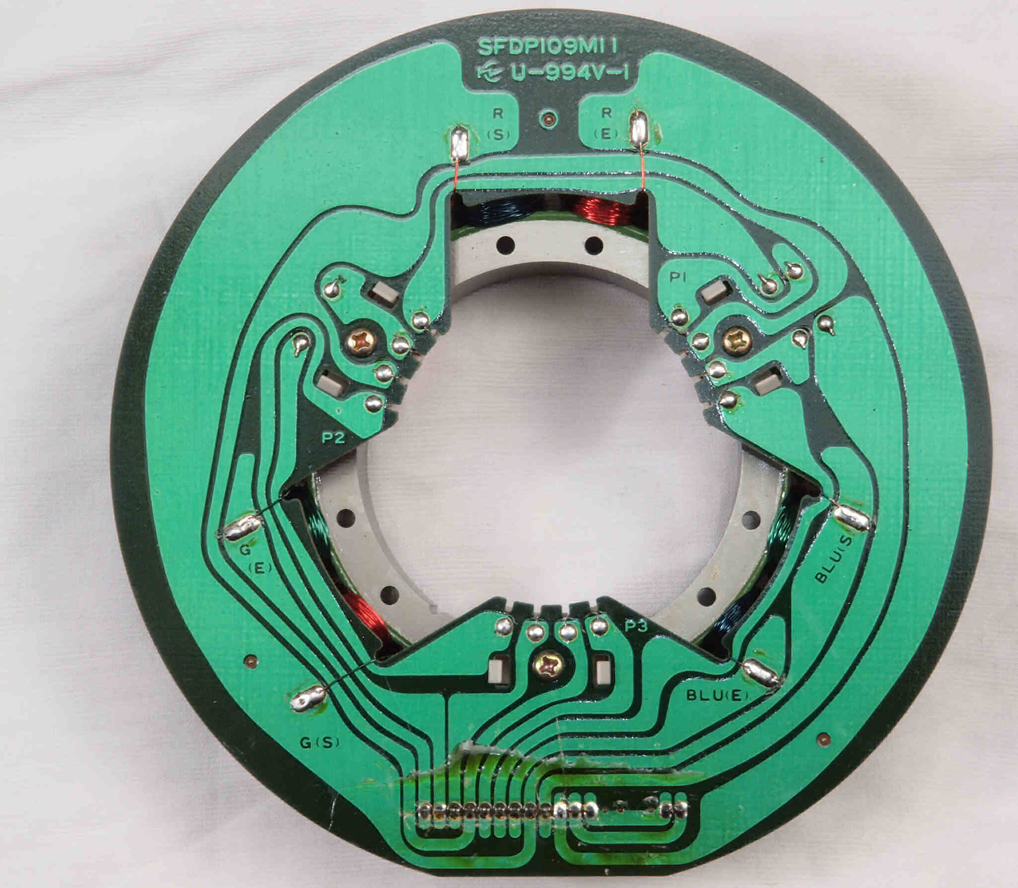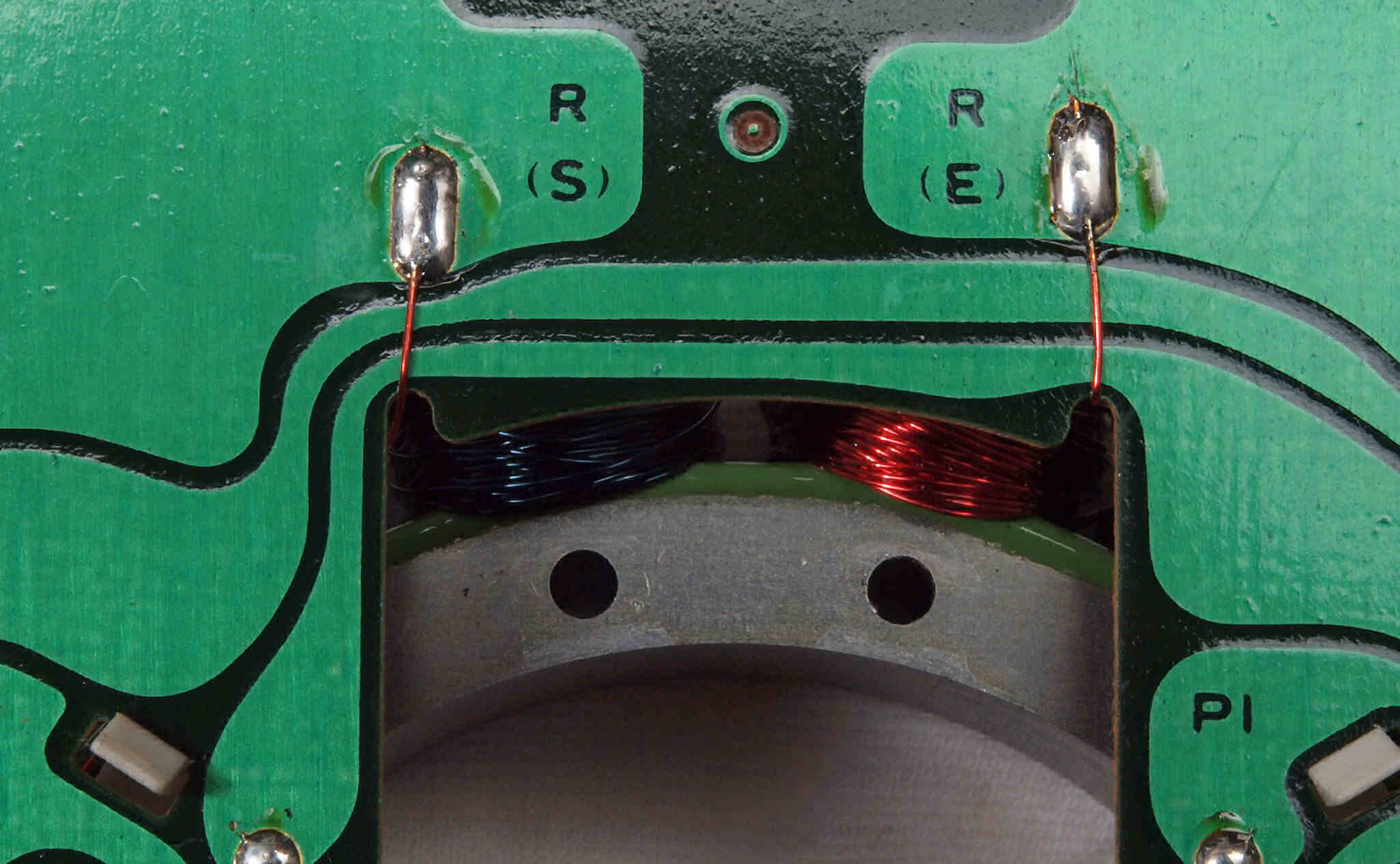 M24. 完成アマチュア(回転子)基盤裏。 余分なフラックスを洗浄後、コート液を塗。