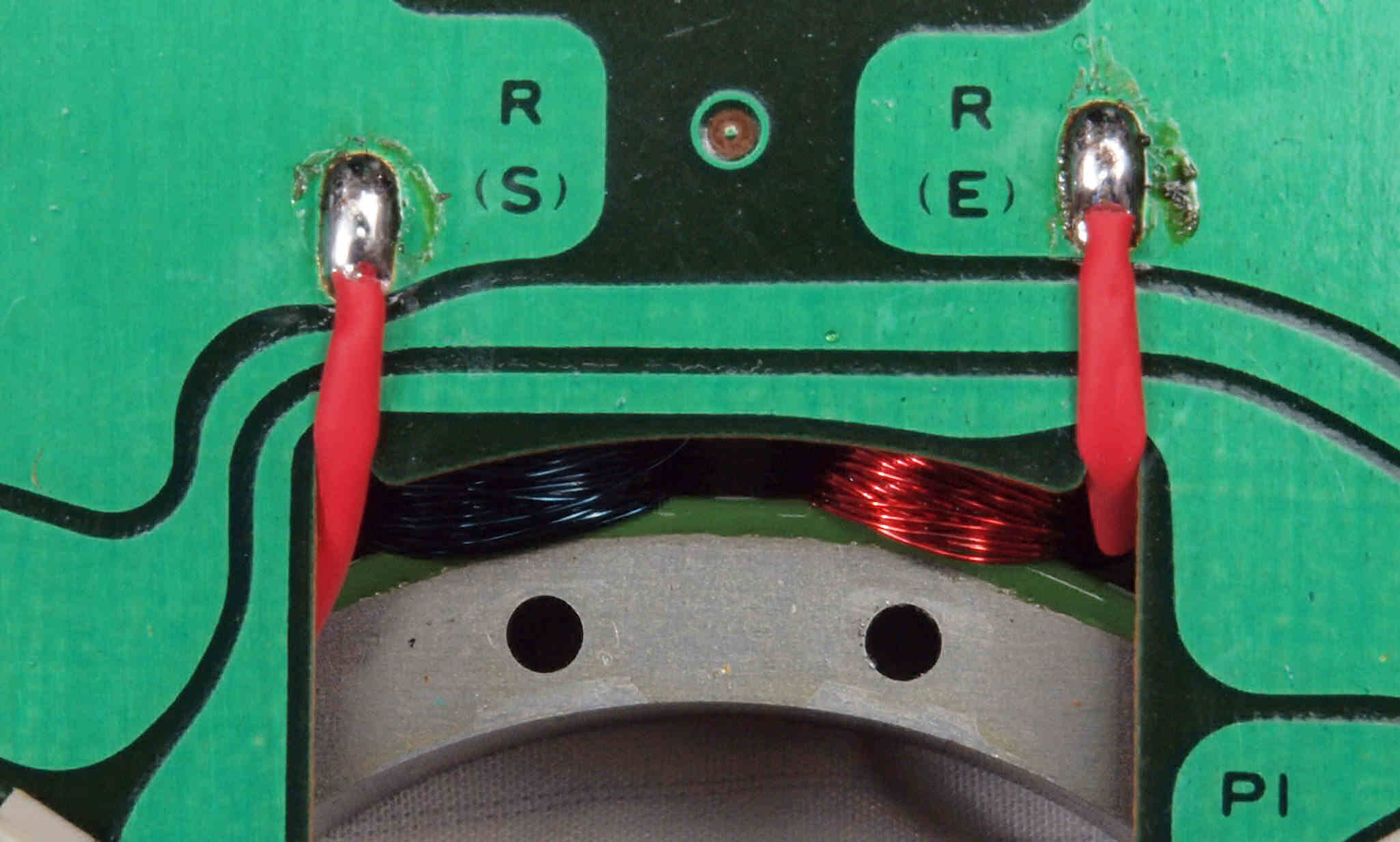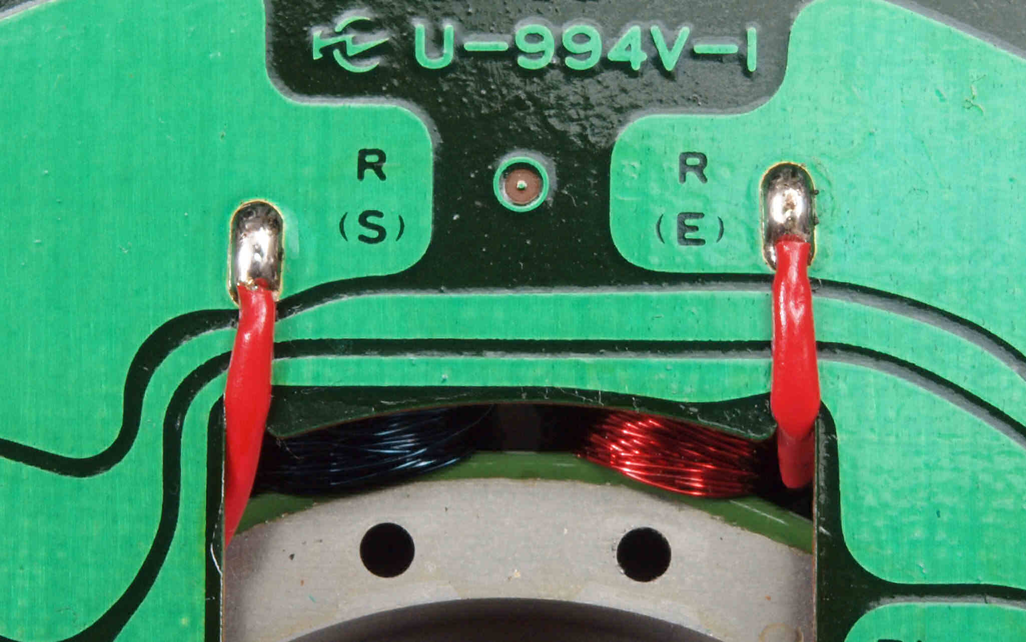 M32. 修理中、 半田補正・引き出し線絶縁。(RED巻線)
