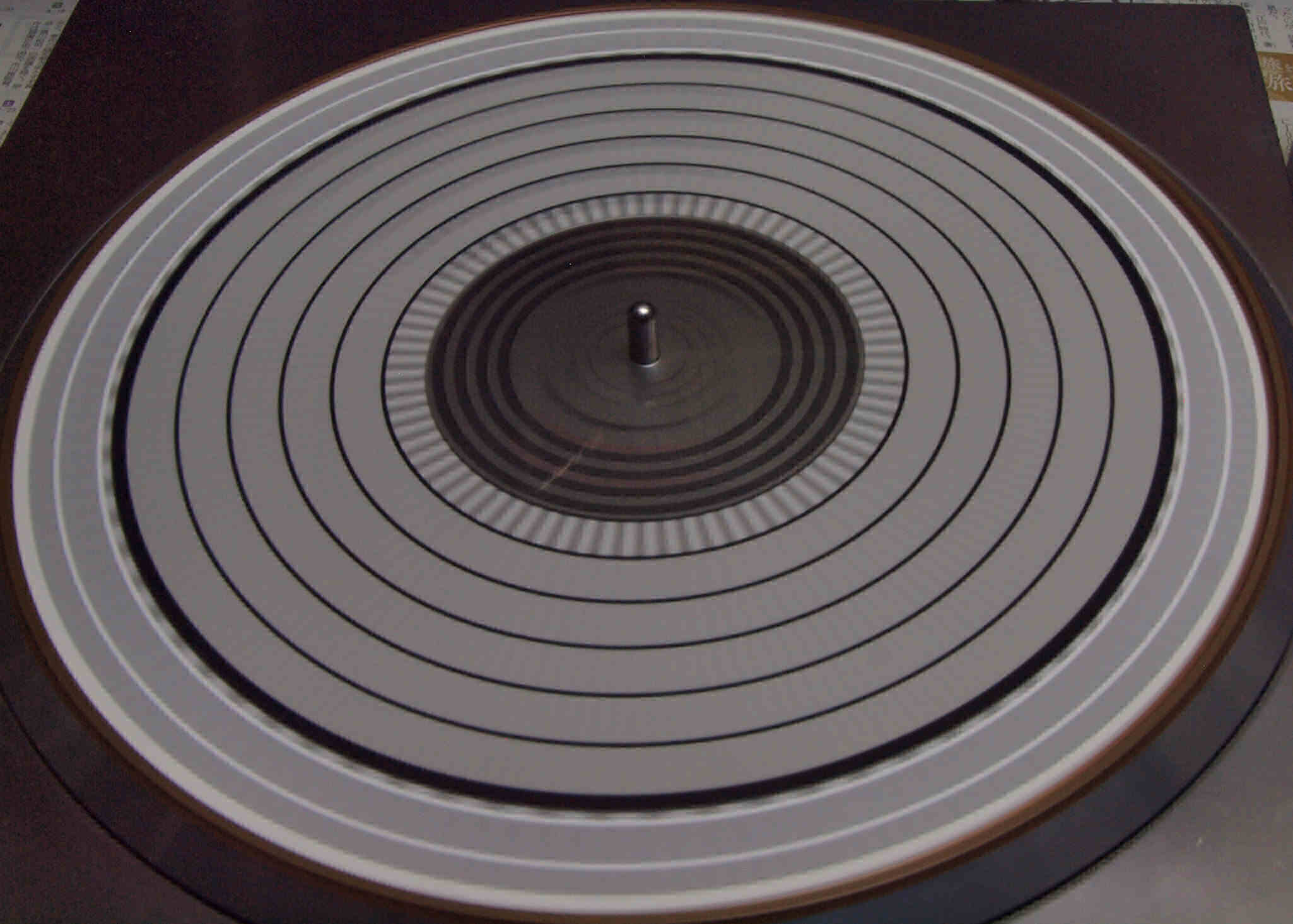 E42. 測定  45回転。 微調整−9.9%回転+LOCK。ストロボに黒い所が見えるのはシャッターとストロボ周波数の干渉の為。