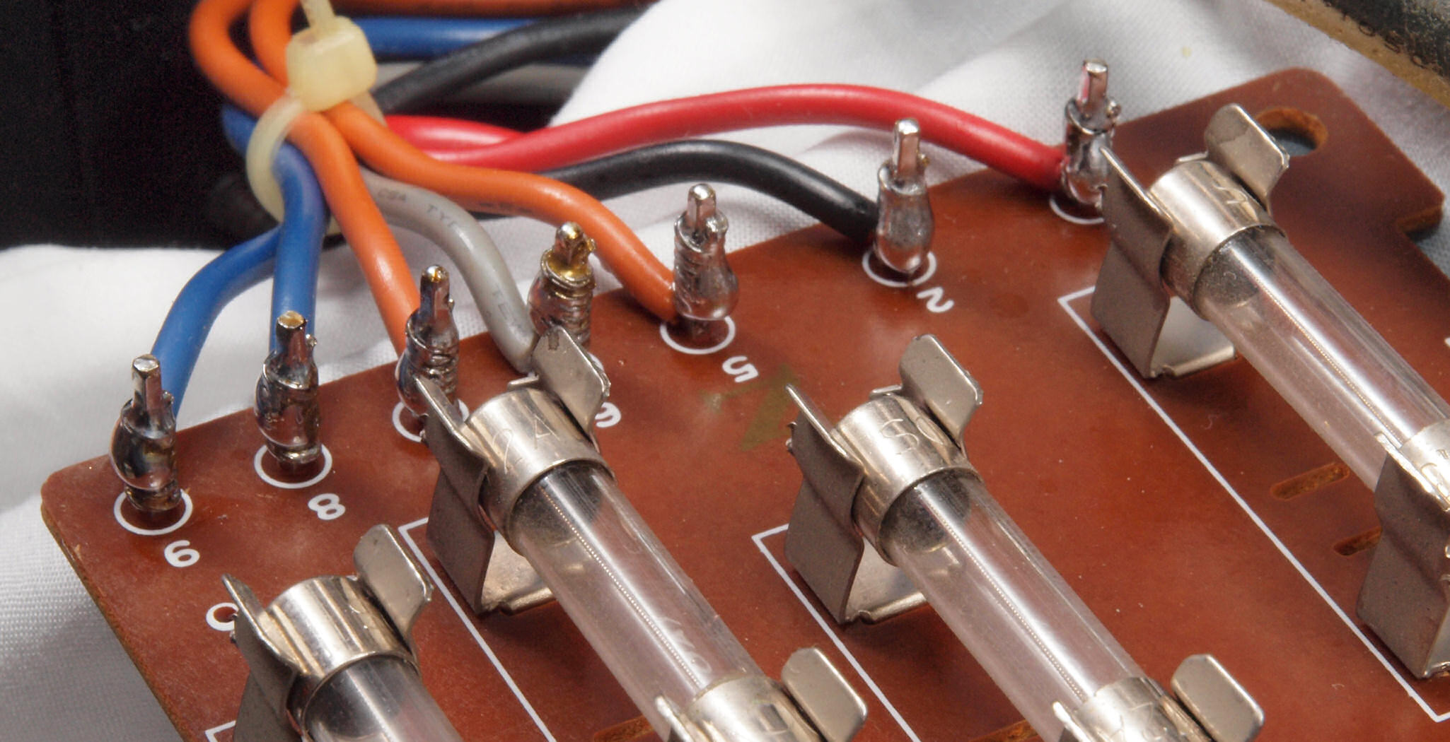 M63. 完成、アマチュア(回転子)基盤裏端子。 余分なフラックスを落として、コート液を塗る。。