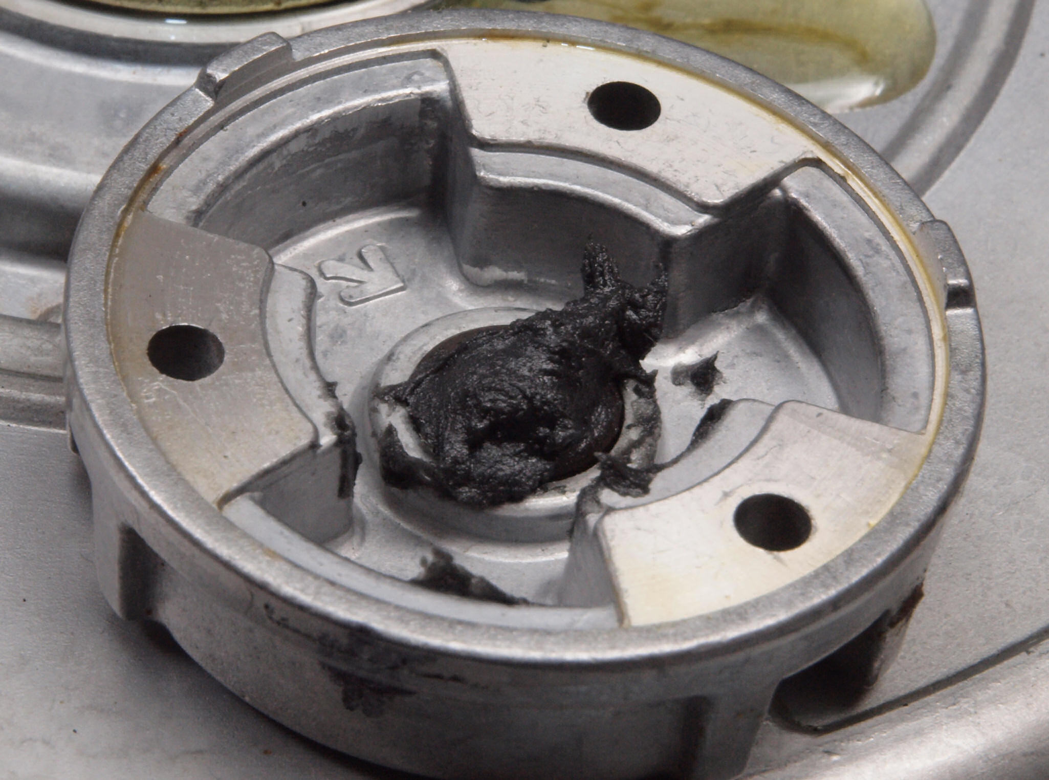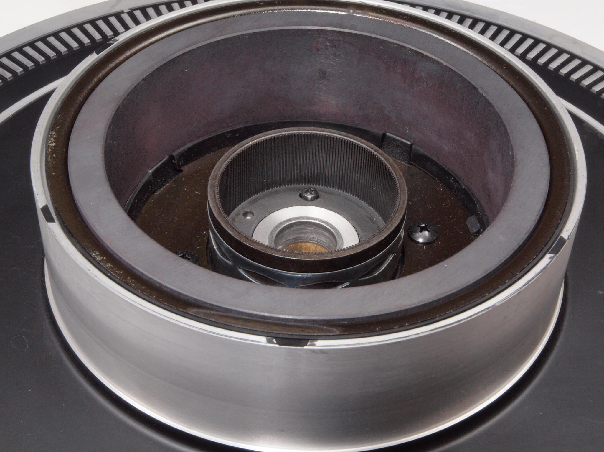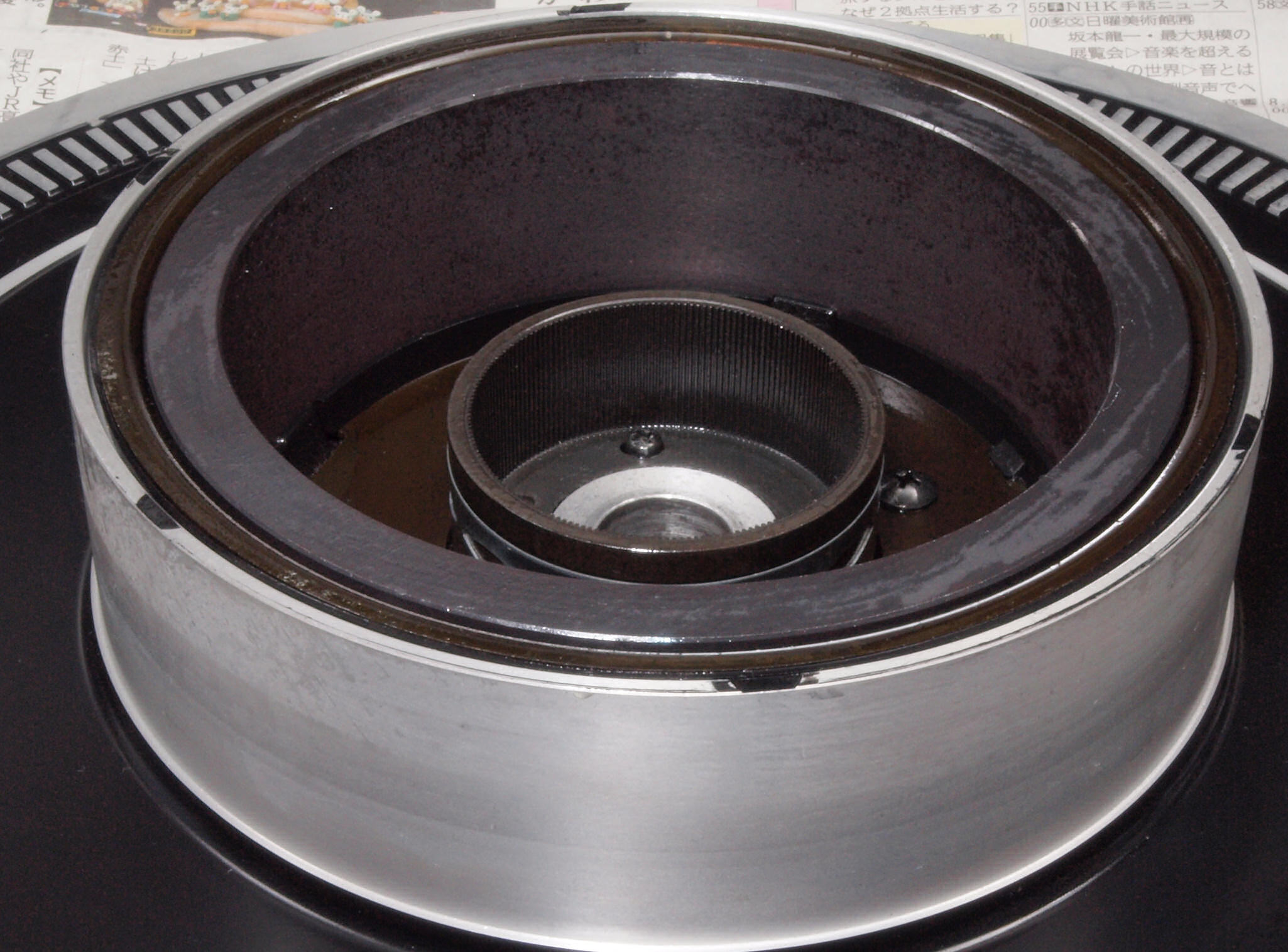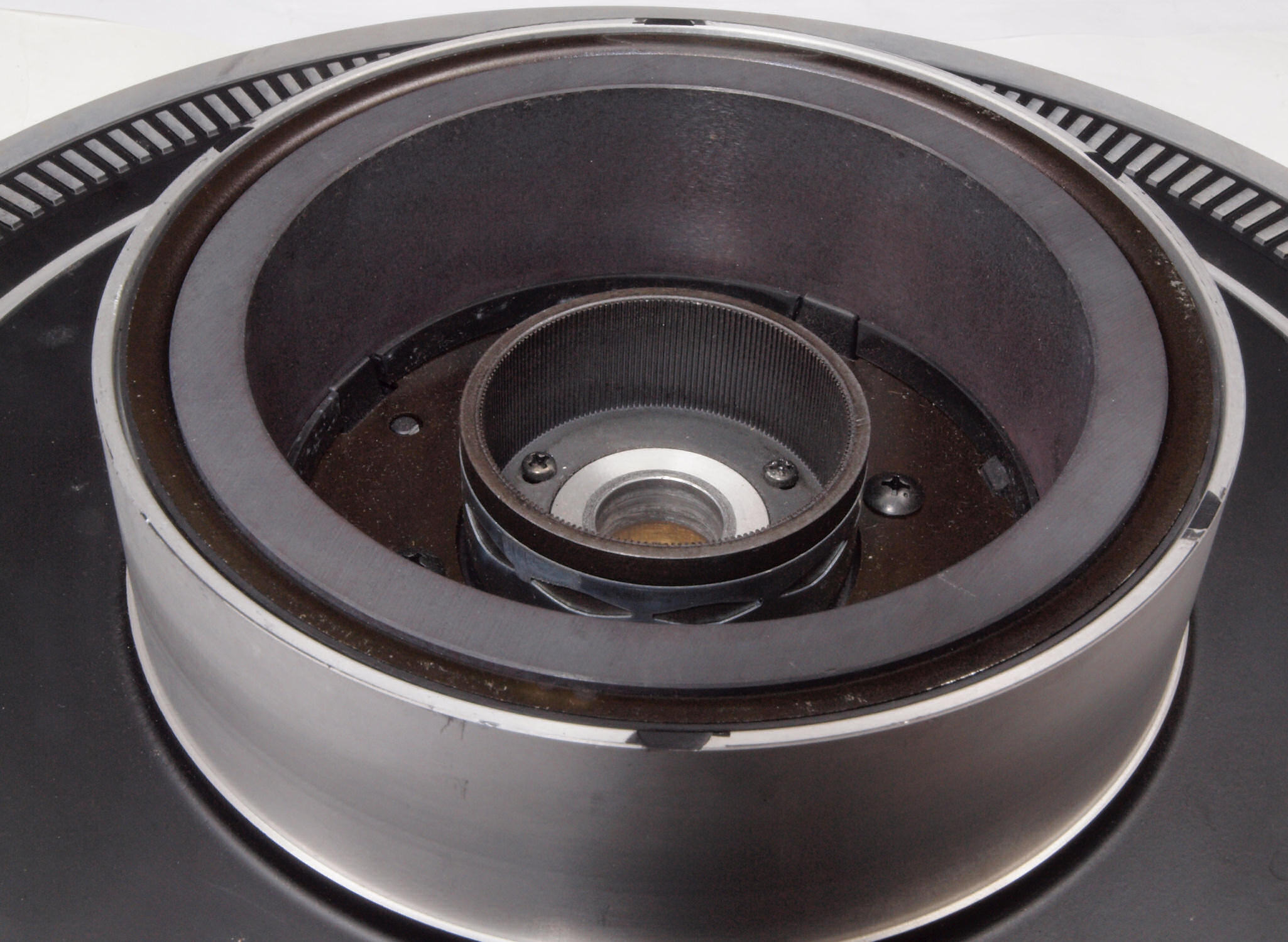 D77. 修理前 ターンテーブル裏 パルス発生磁石山、反対側。