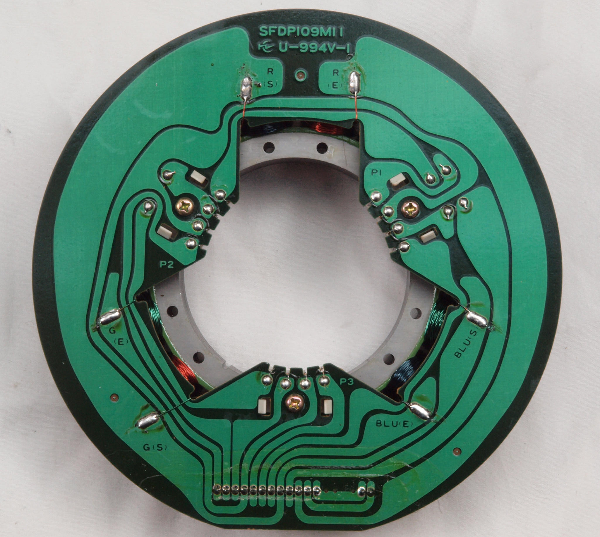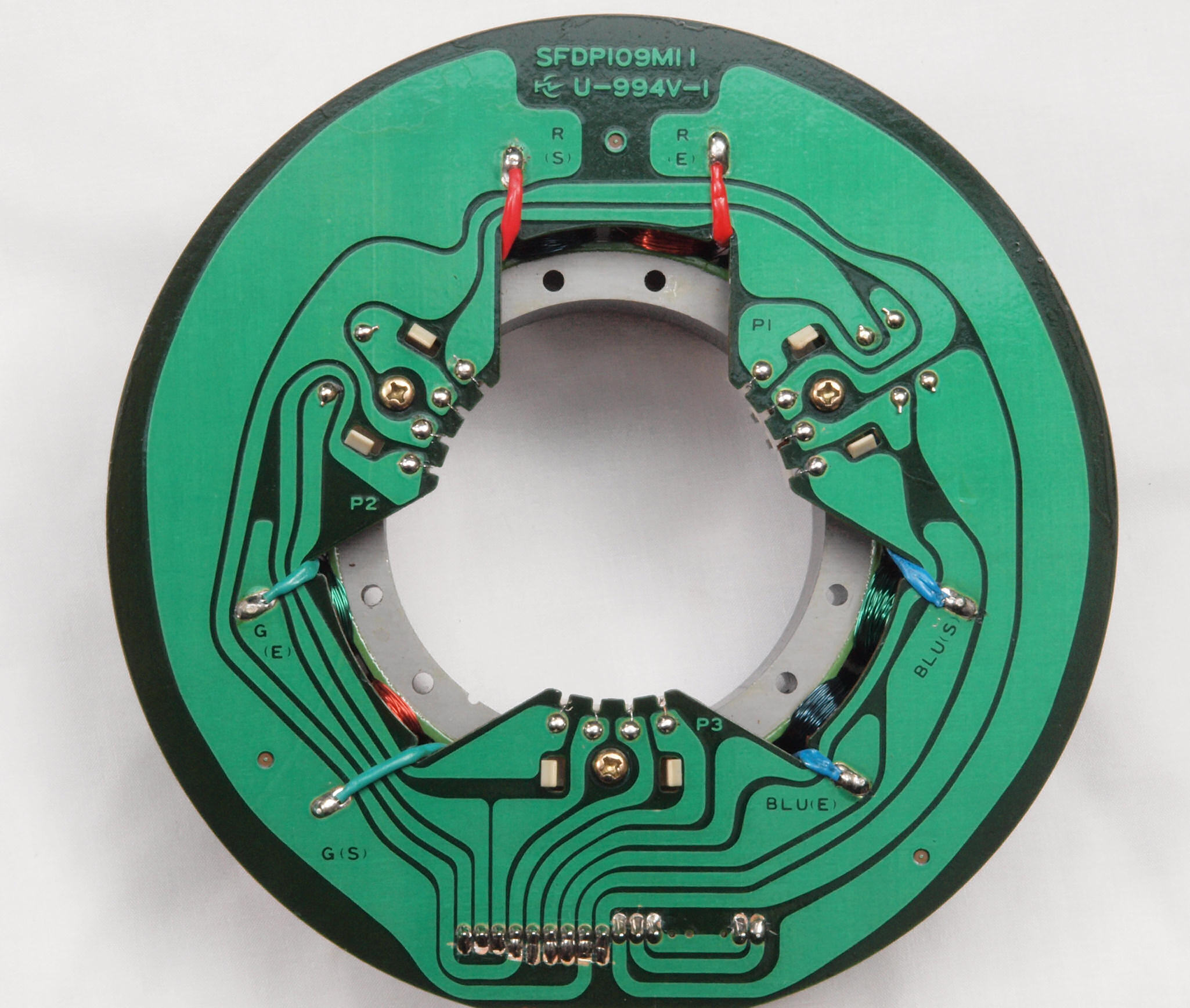 M24. 完成アマチュア(回転子)基盤裏。 余分なフラックスを洗浄後、コート液を塗。