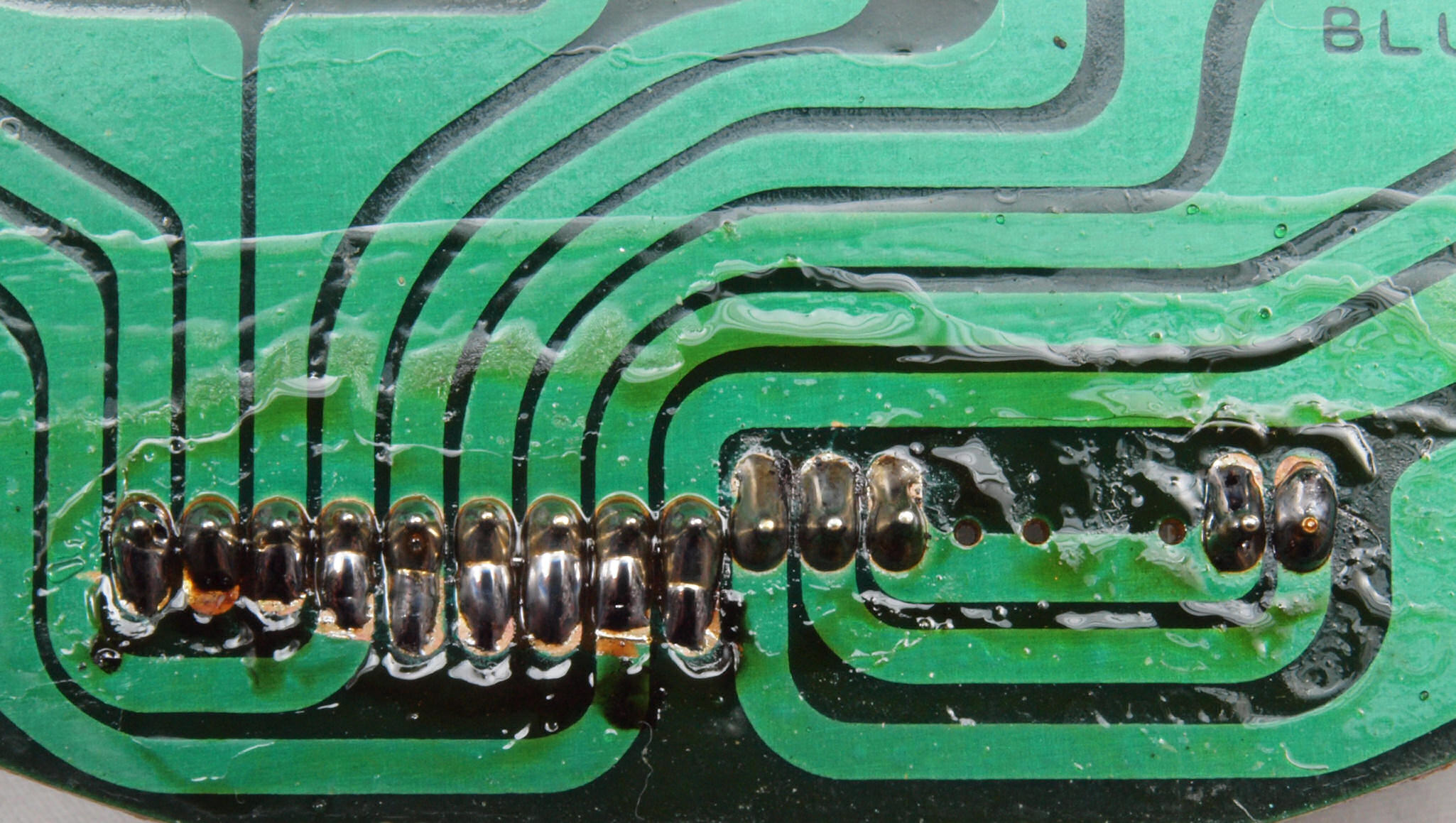 D35. 完成ターンテーブル操作基板基板裏。 余分なフラックスを落として、コート液を塗る。