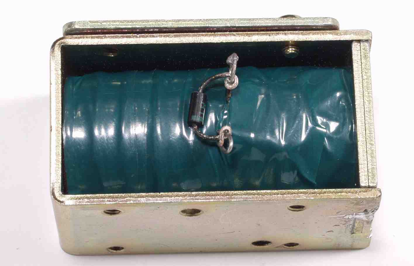 D2E. CUEプランジャーコイル修理 右端の緑色に腐食した所で断線