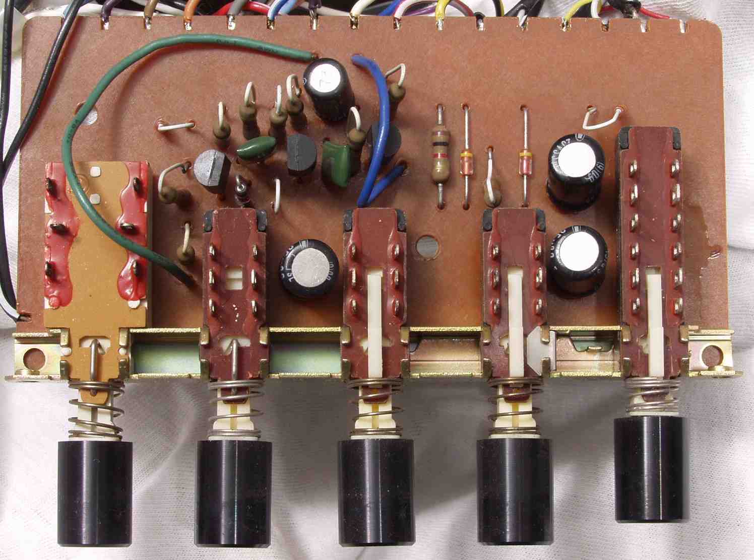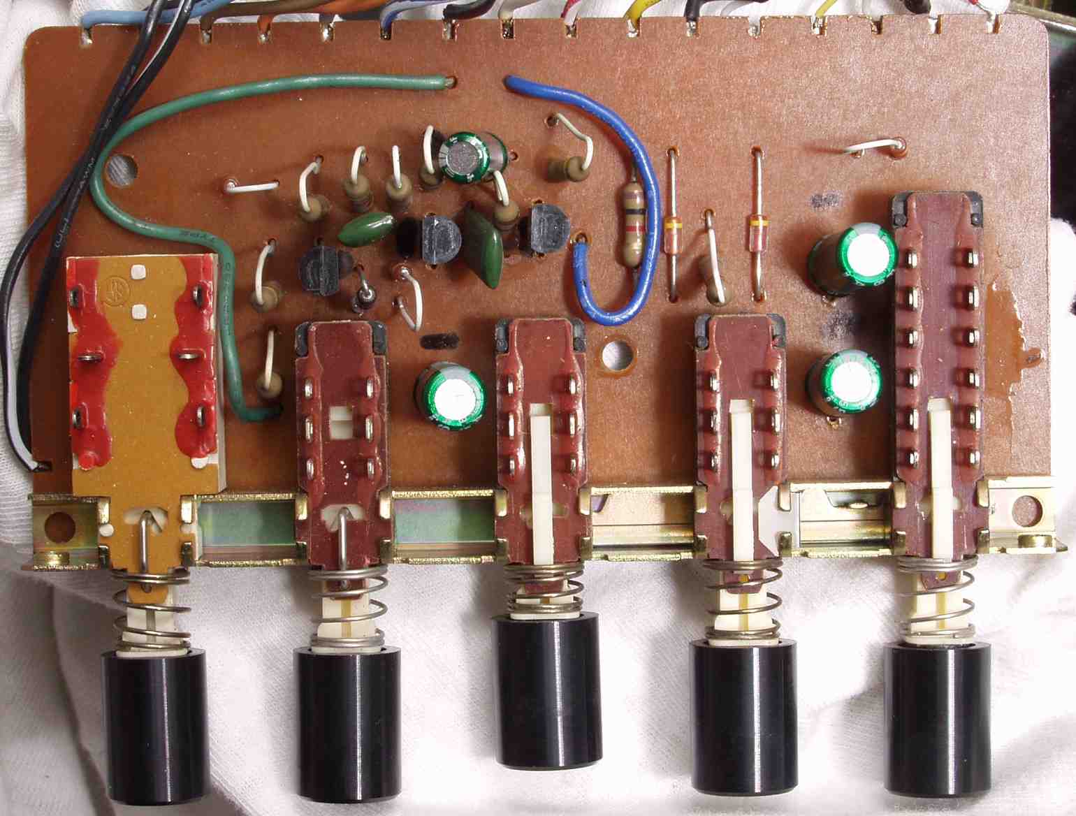 C5B.修理後 RECバイアス基板 半固定VR3個、電解コンデンサー5個、TR(トランジスタ−)5個交換