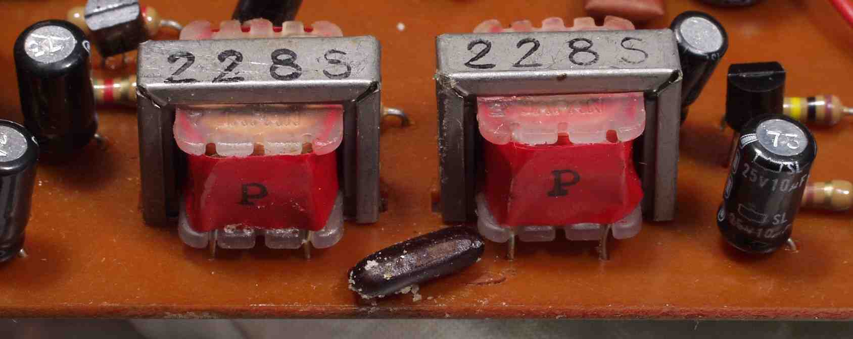 C1B1.修理後 入力AMP基板 交換したTR(トランジスタ−)足が腐食で真っ黒