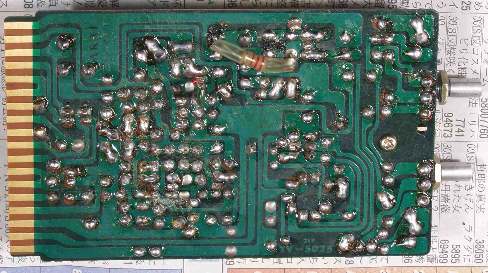 C4D.修理(半田補正)後 REC−AMP基板(レコデング・アンプ)裏 半田を全部やり直す