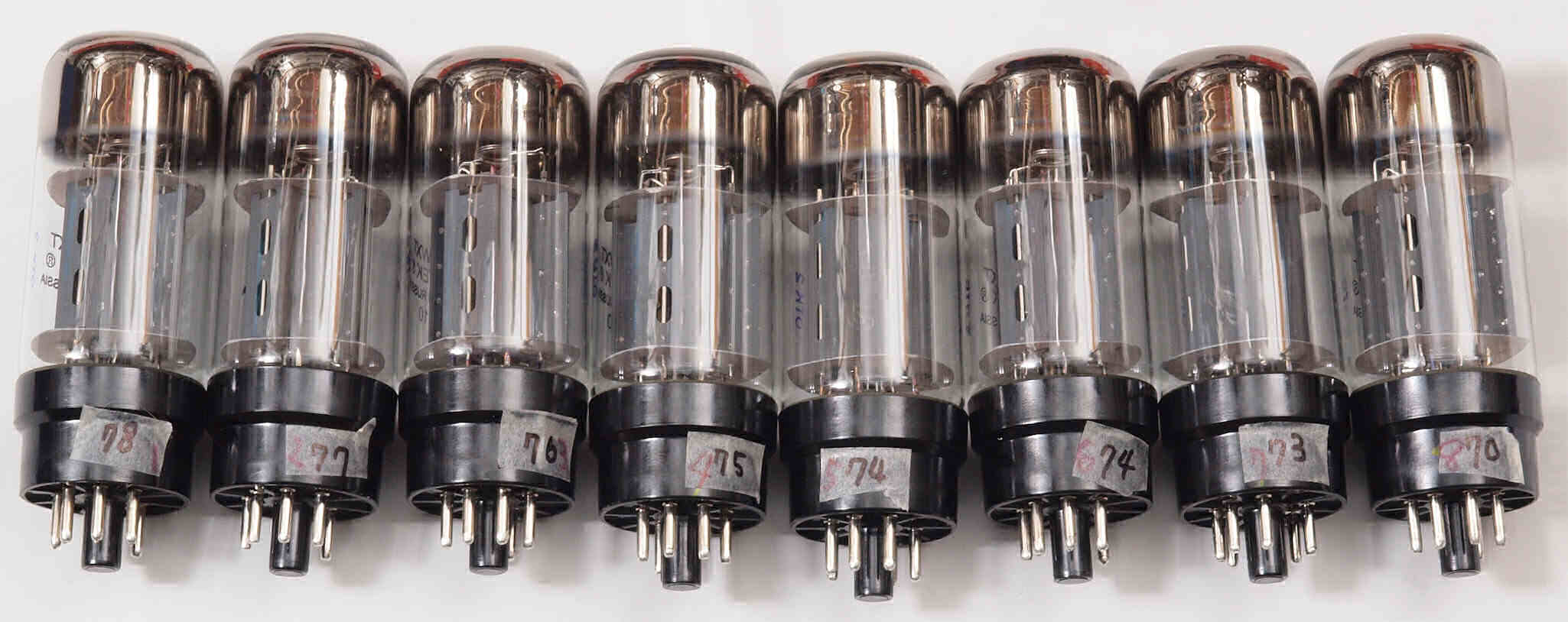 B02. 新品購入出力真空管SOVTEC 「5881=6L6WGC」。 左から7本目....12本目。