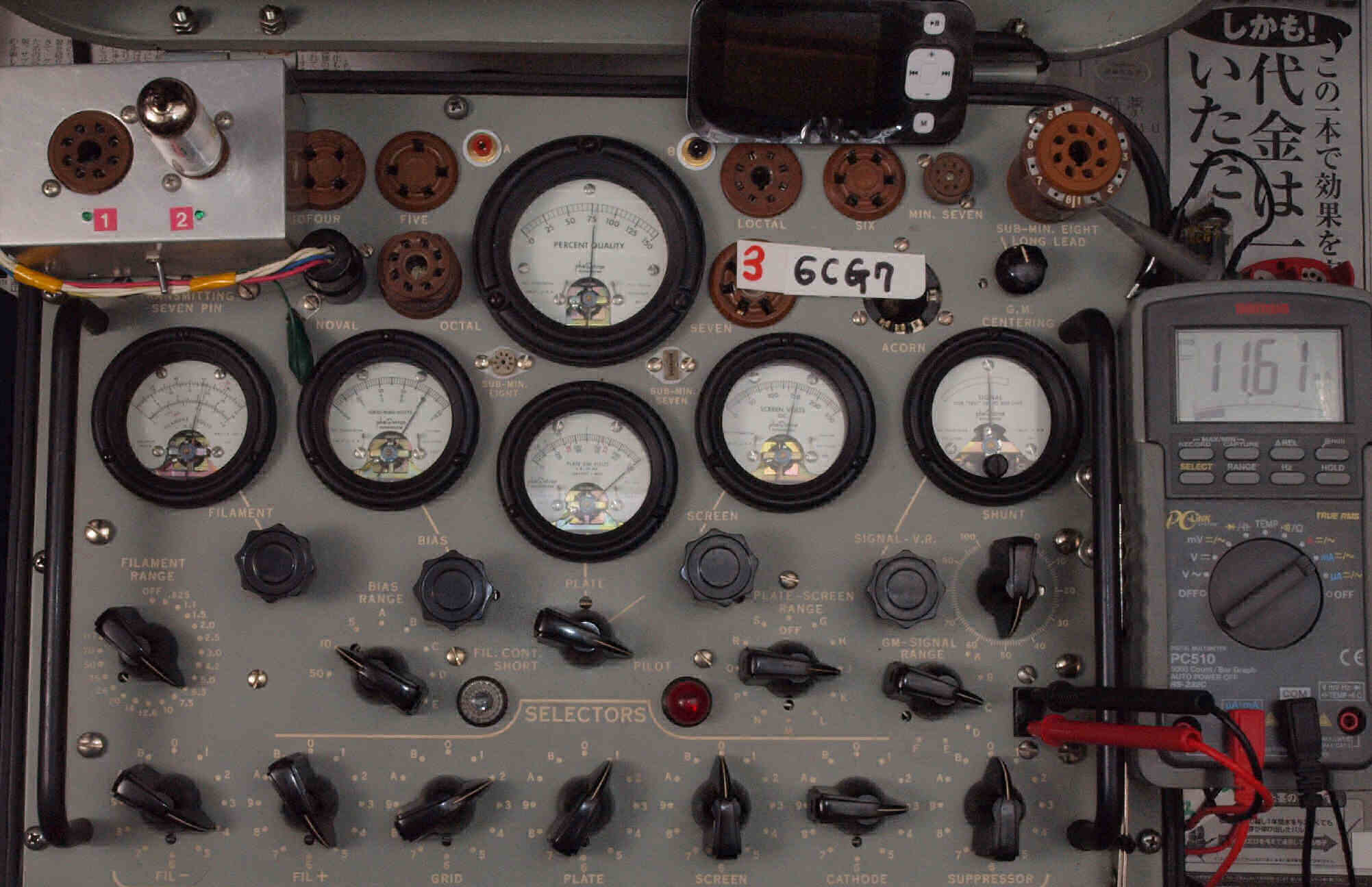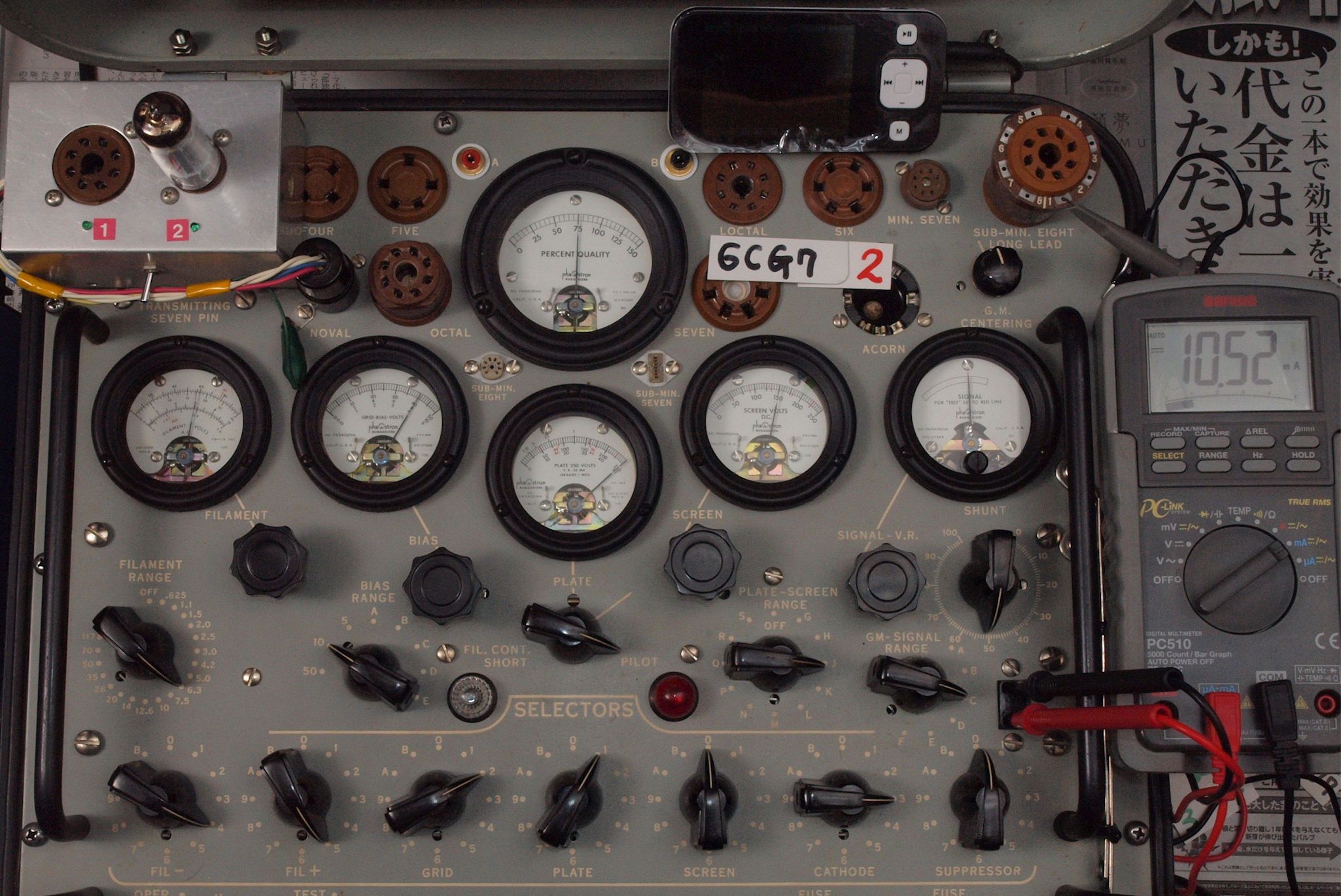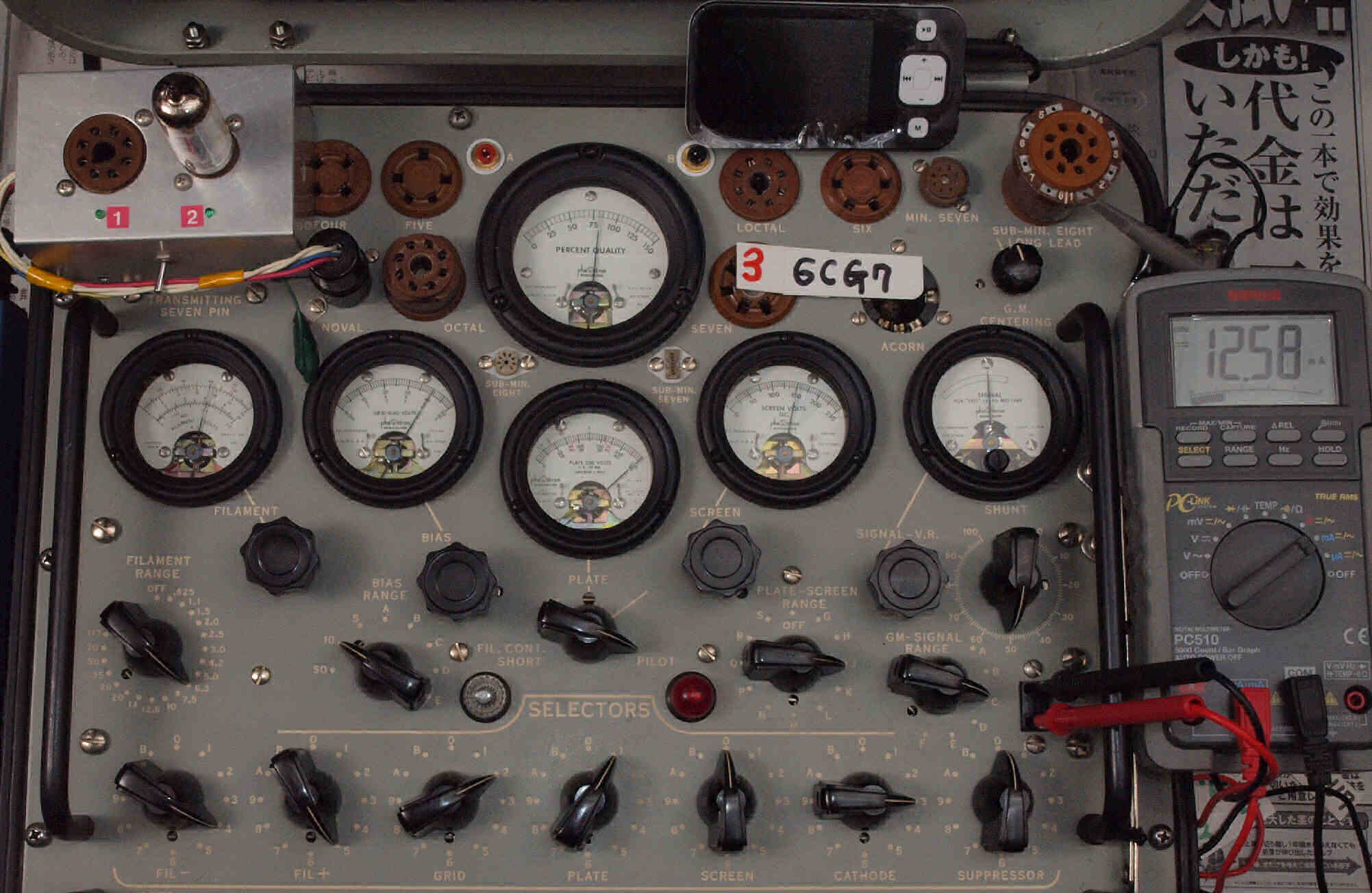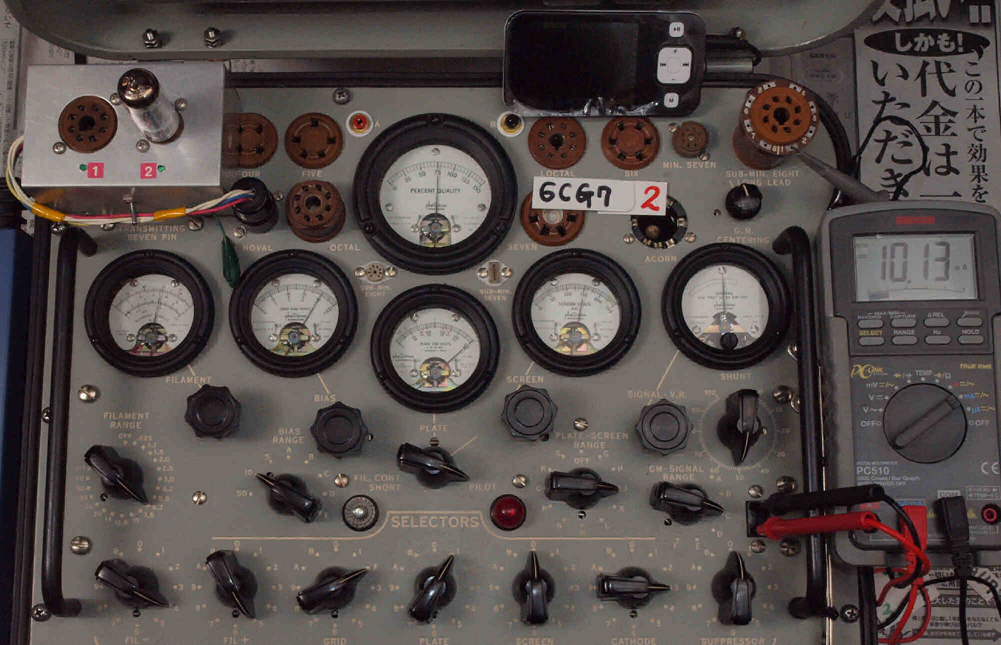 • 1本目 6FQ7 測定。 ユニット1 Gm測定=3000μmho、IP=10.56mA。
