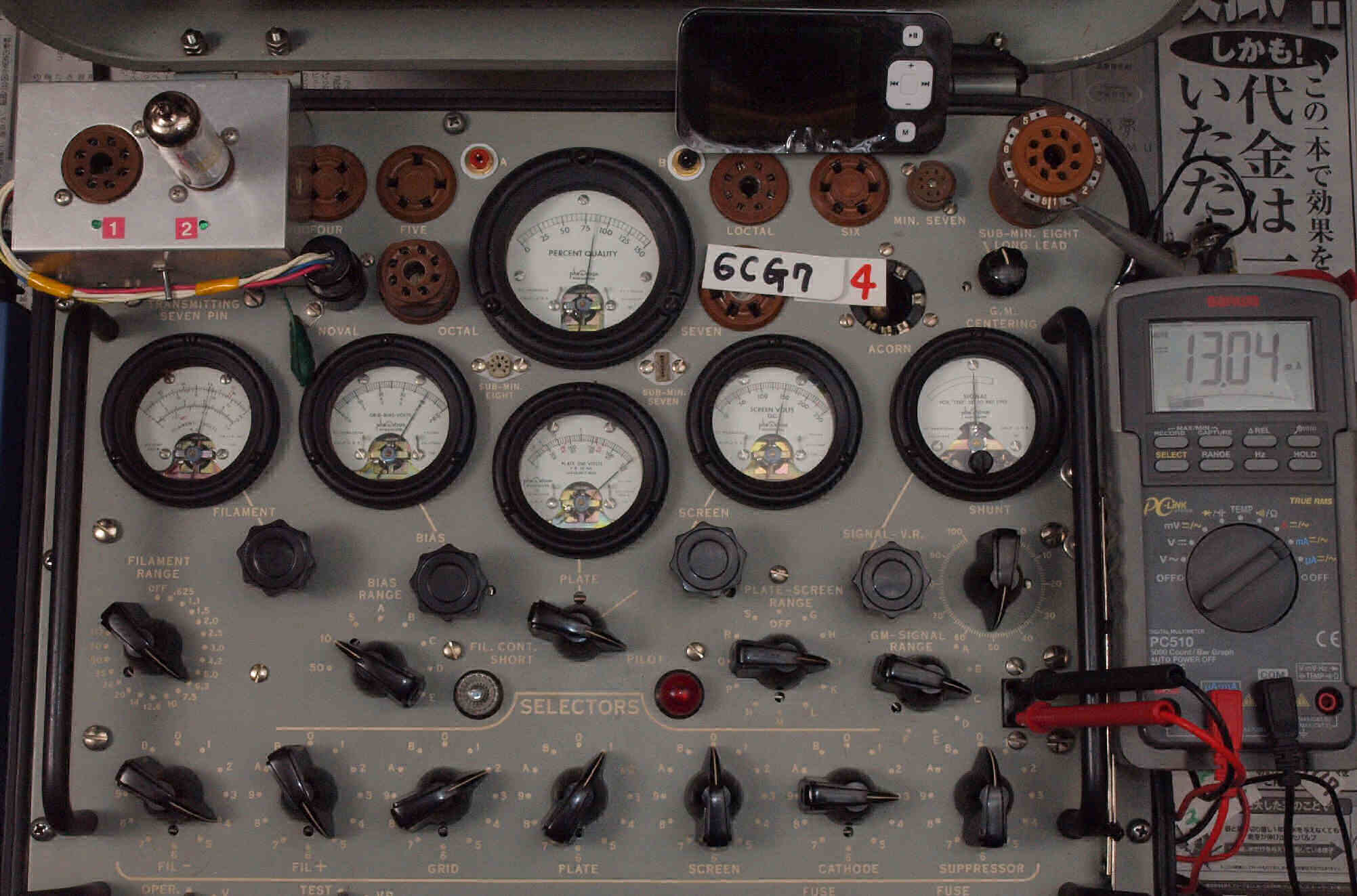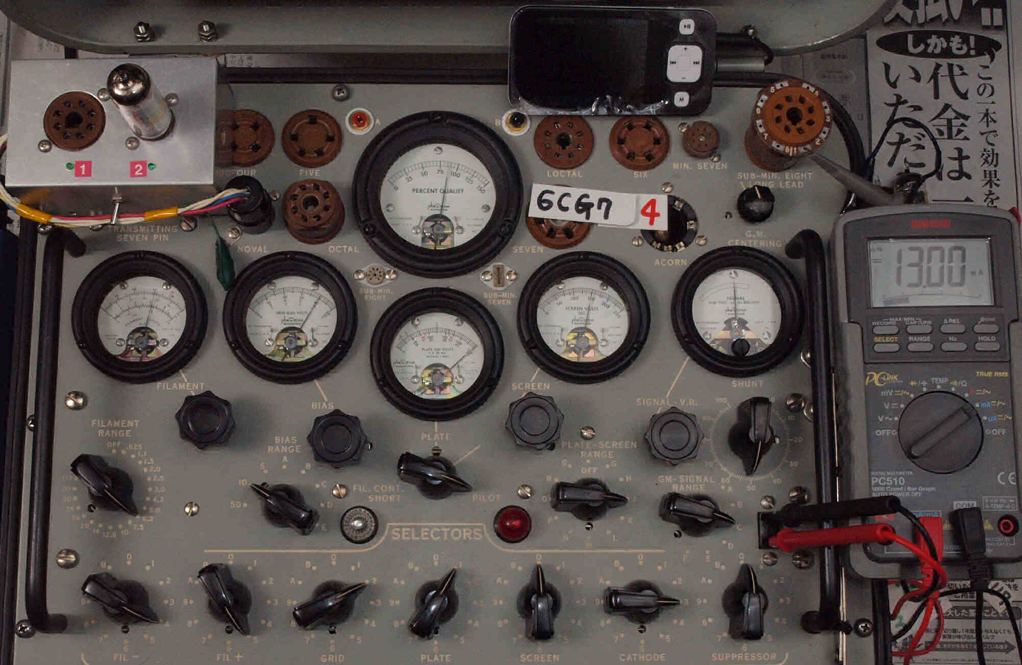 E37. 4本目 「6FQ7」ユニット1。 Gm測定=2600μmho、IP=13.53mA。