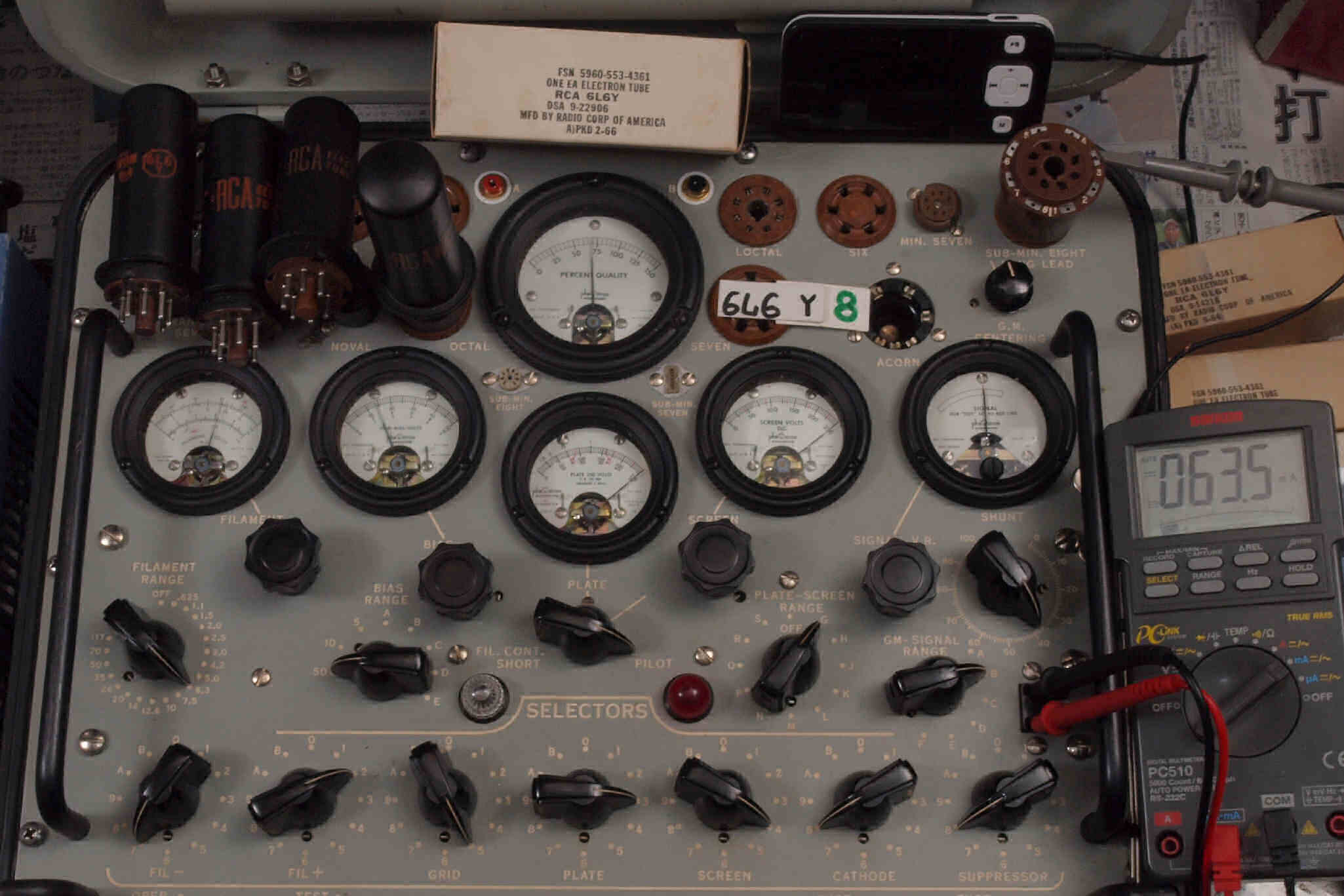 A8. 8本目 6L6Y測定。 Gm=7000μmho、Ip=63.5mA。