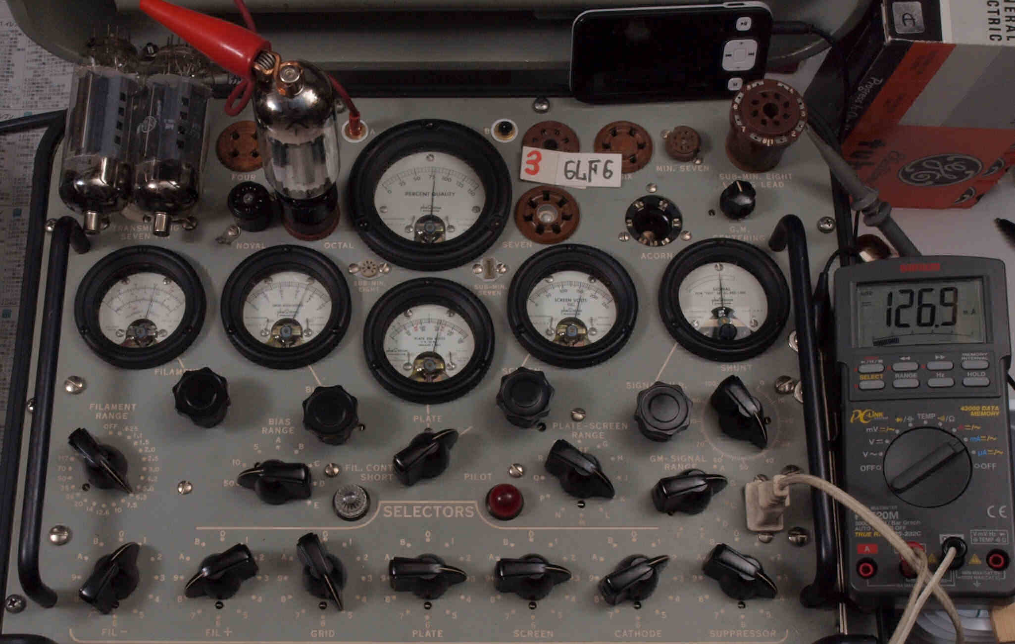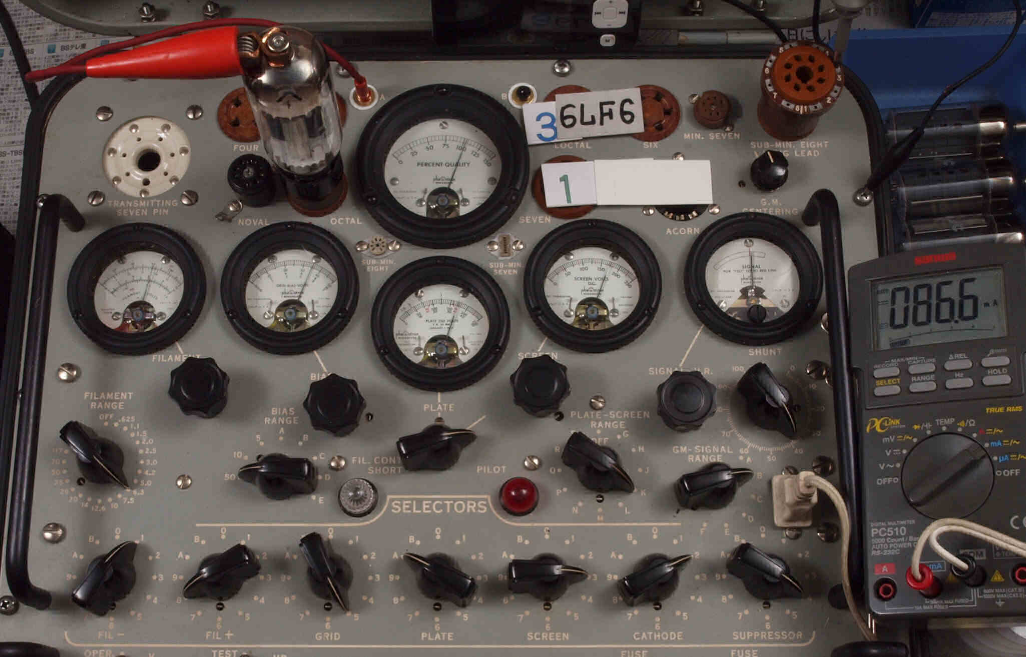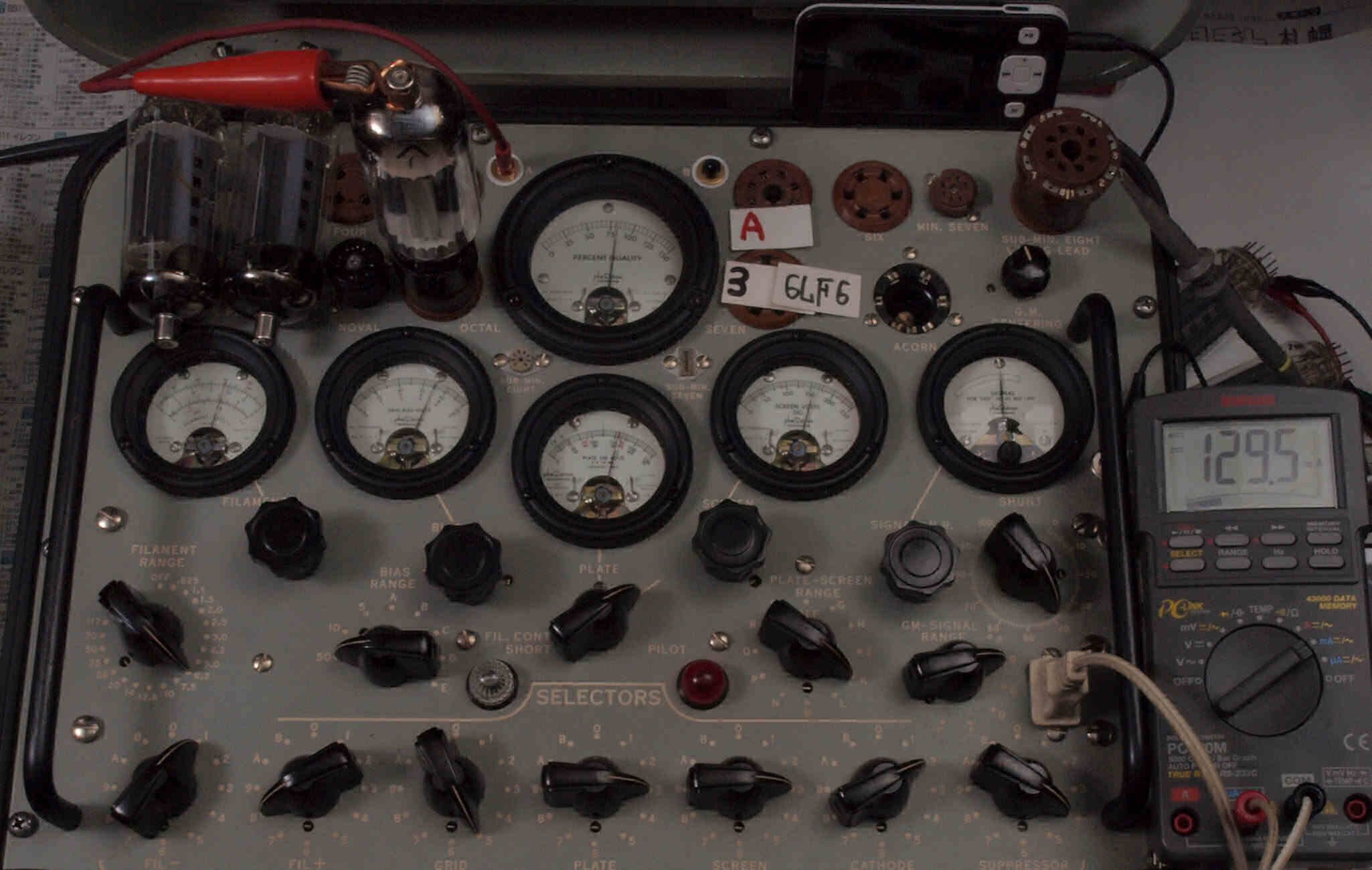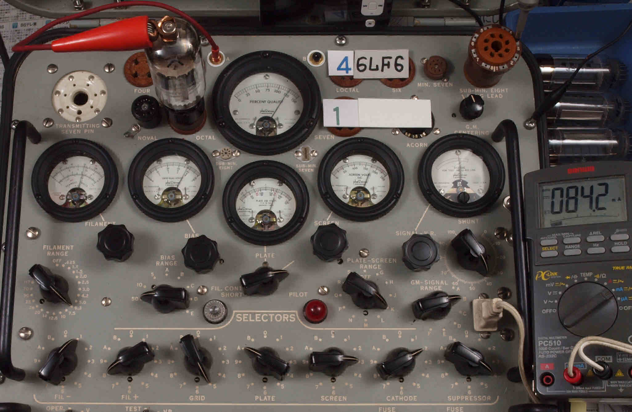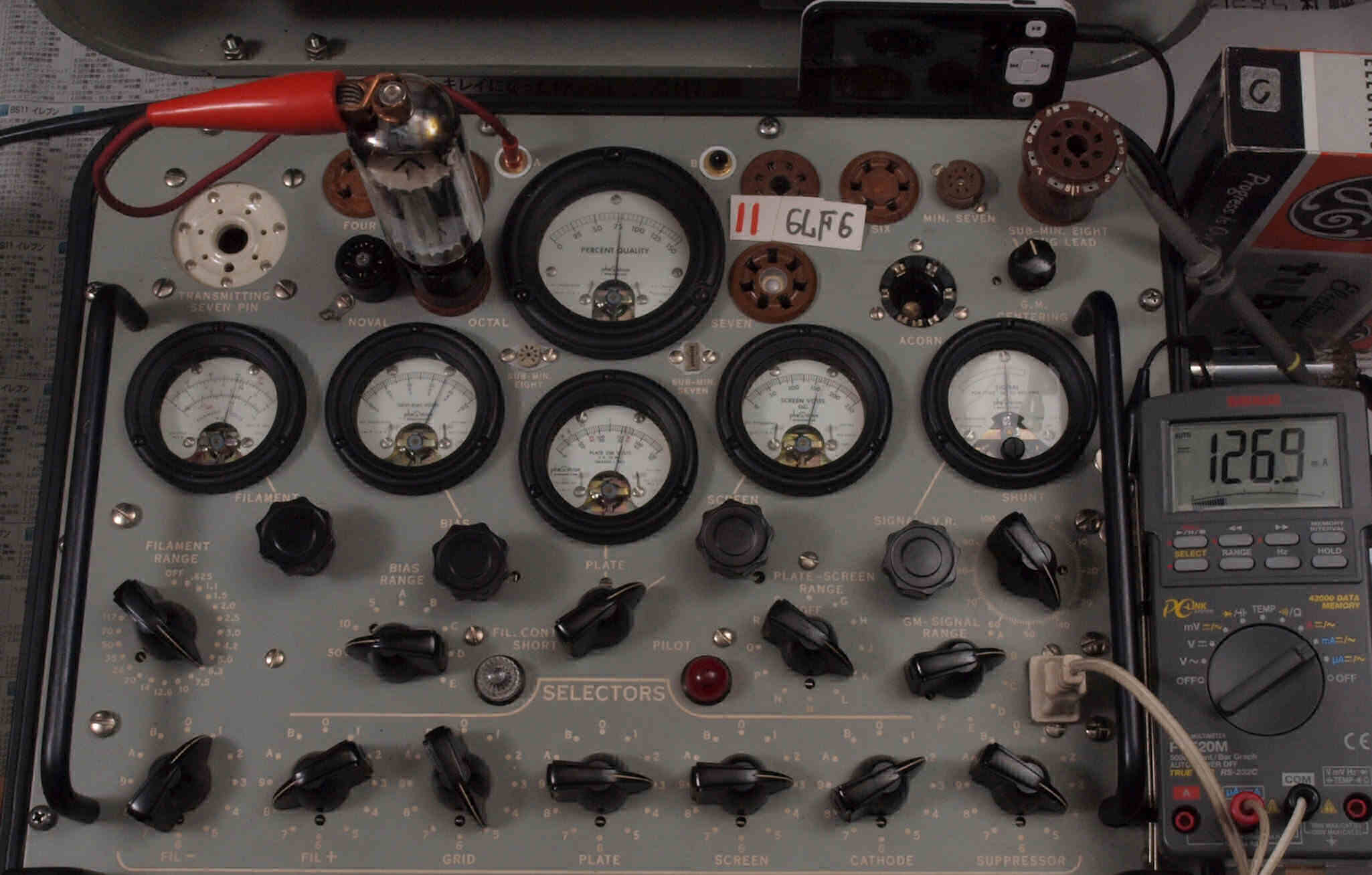 | V12. 2本目 6LF6 。 Gm測定=8000μmho、 Ip=132.2mA。 |