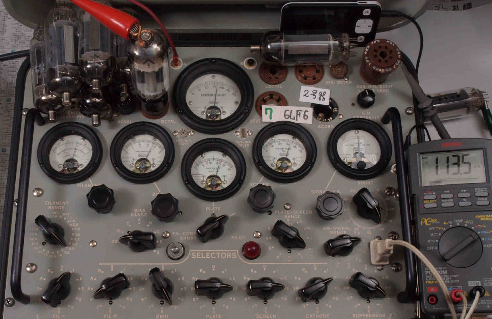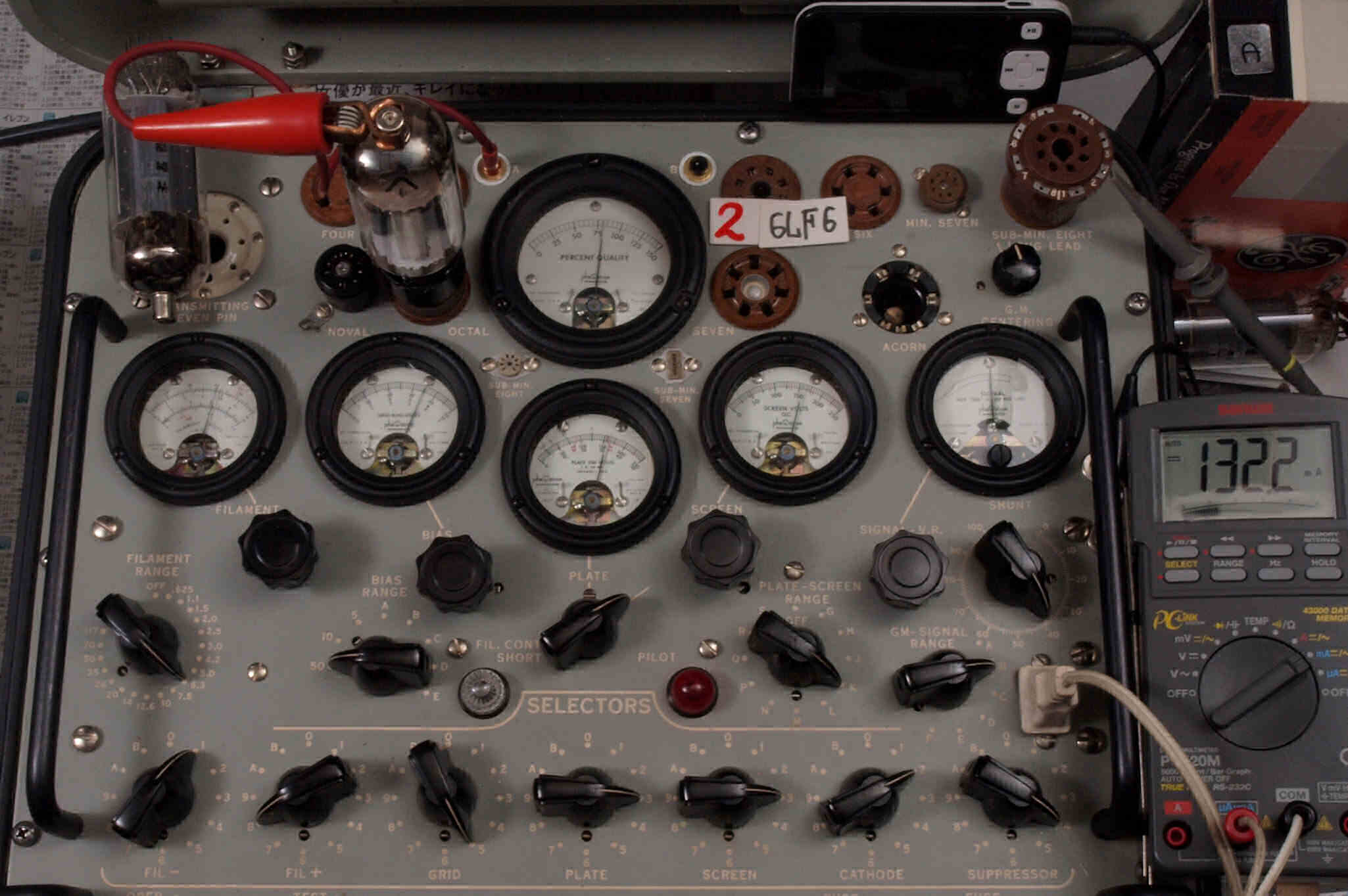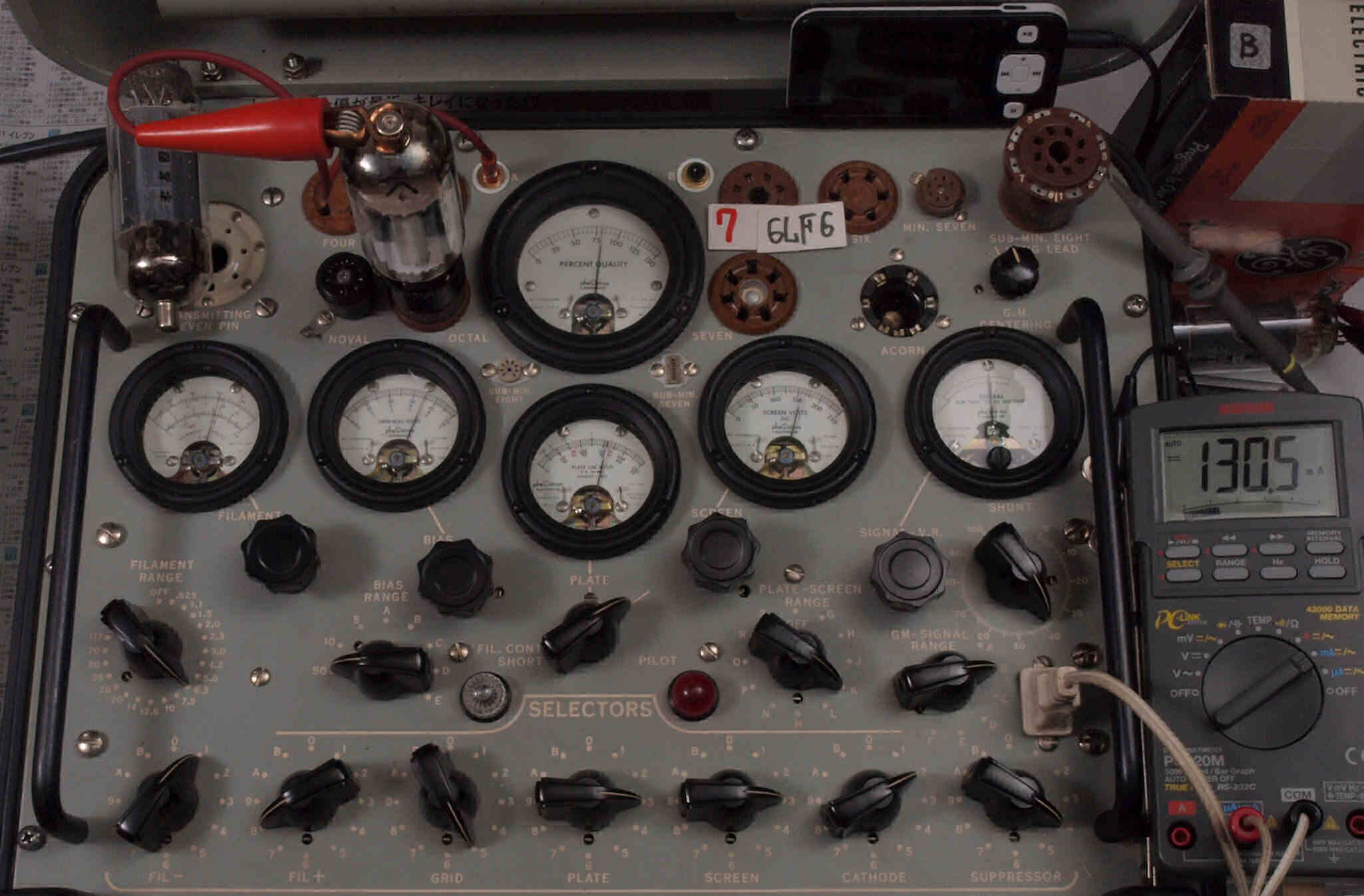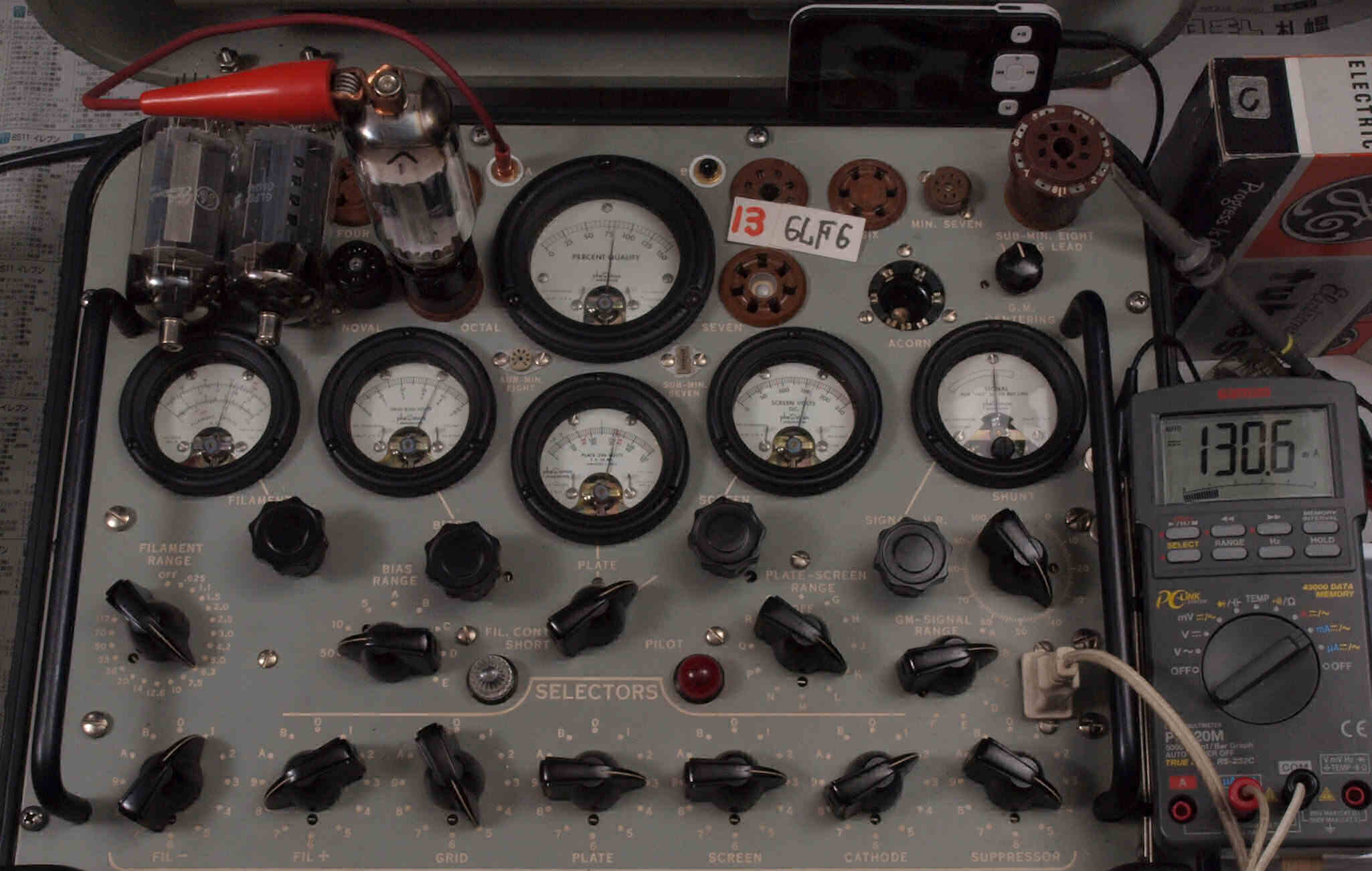 | V12. 2本目 6LF6 。 Gm測定=8000μmho、 Ip=132.2mA。 |