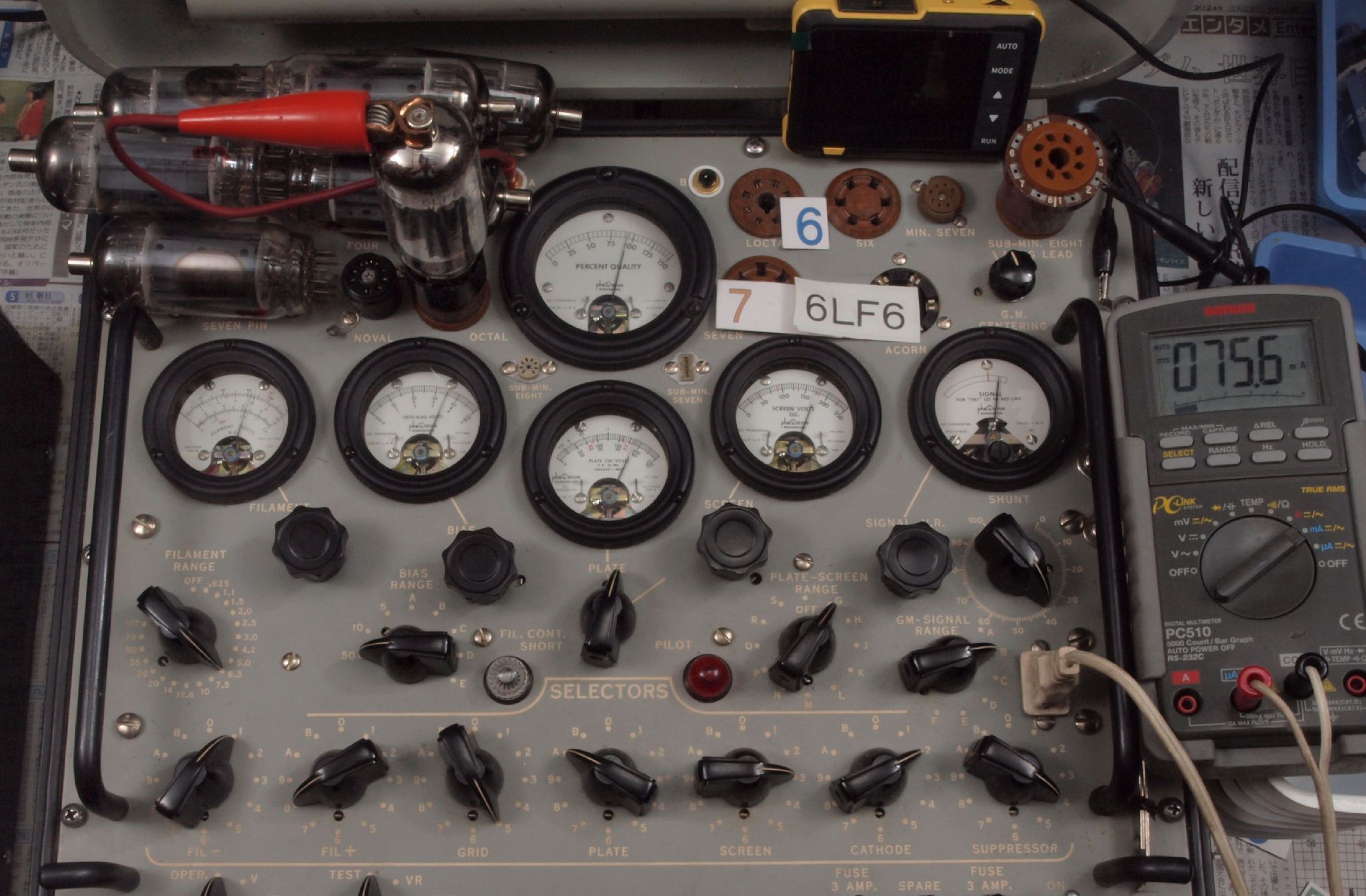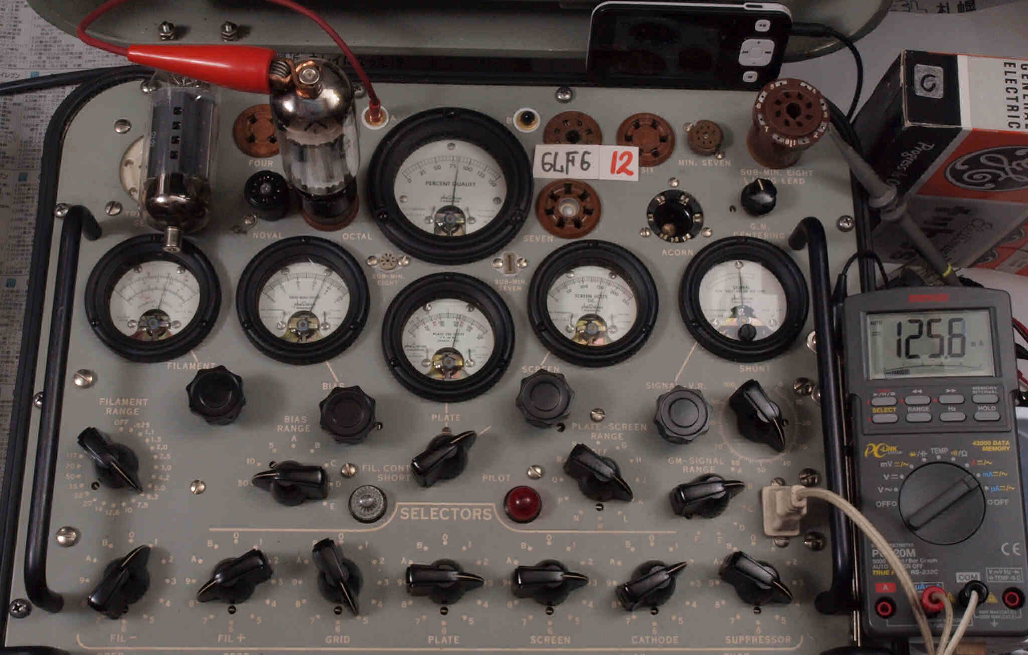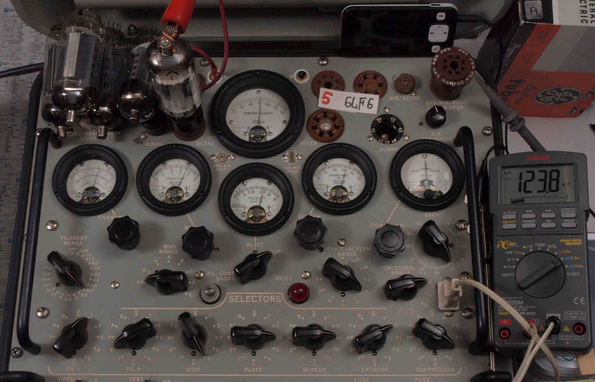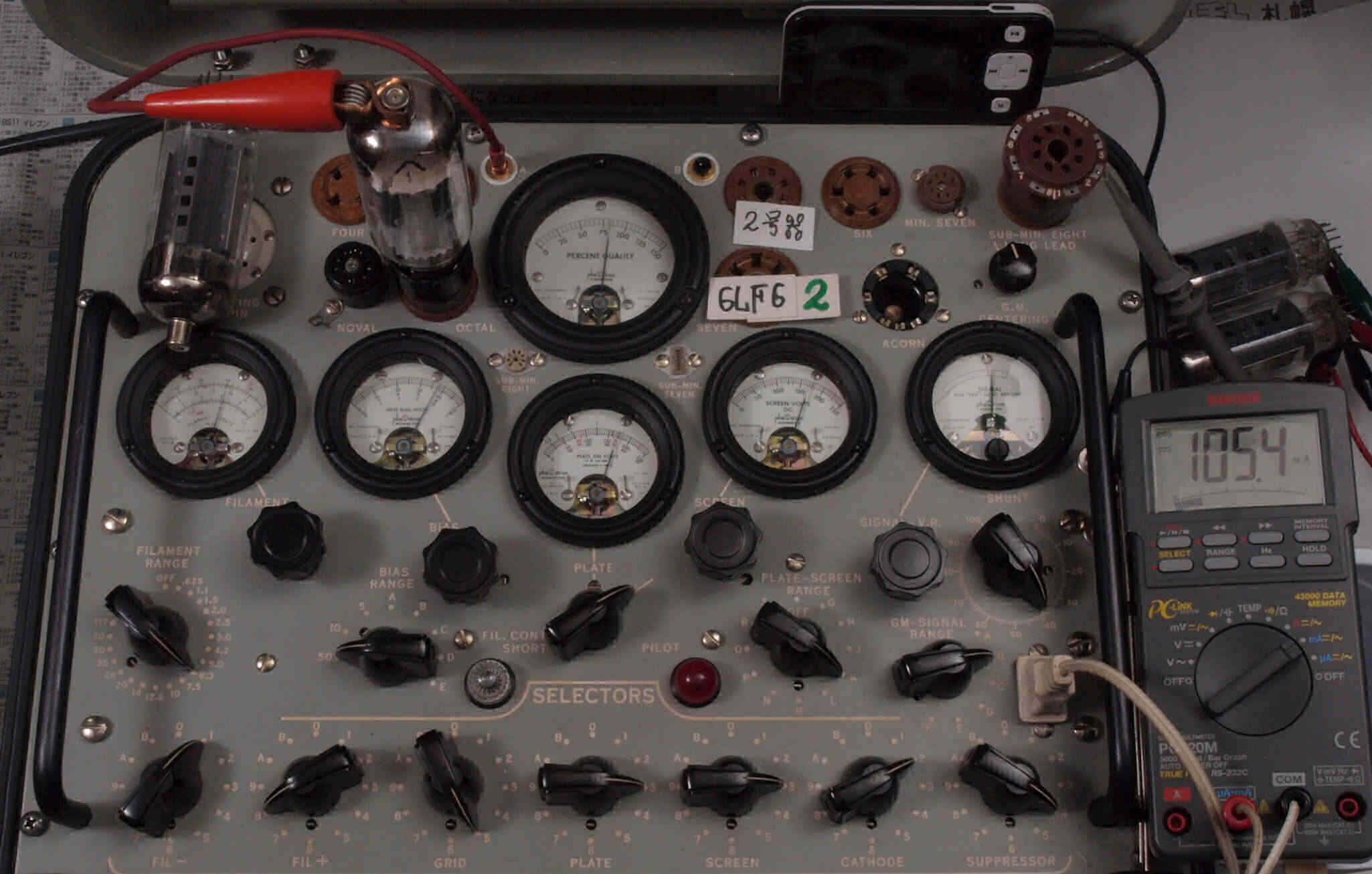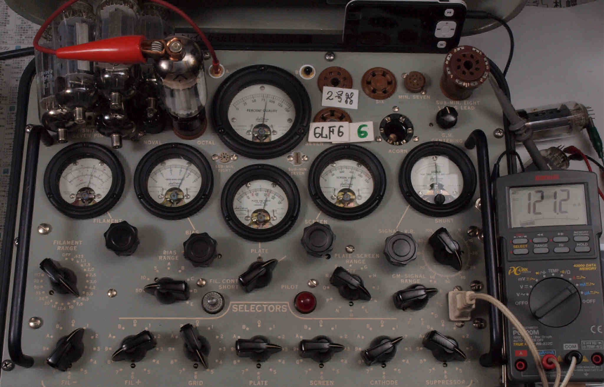 | V12. 2本目 6LF6 。 Gm測定=8000μmho、 Ip=132.2mA。 |