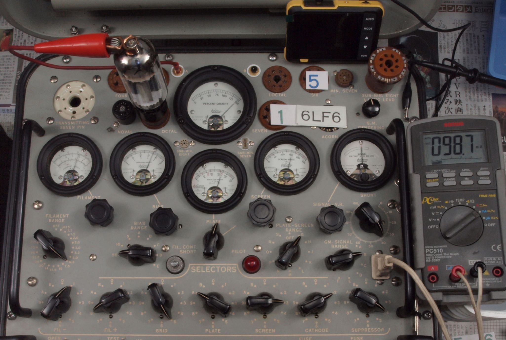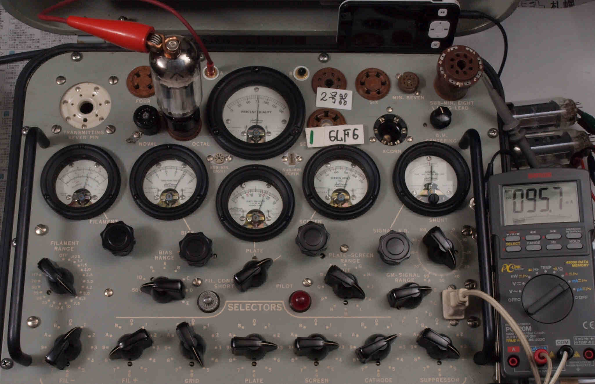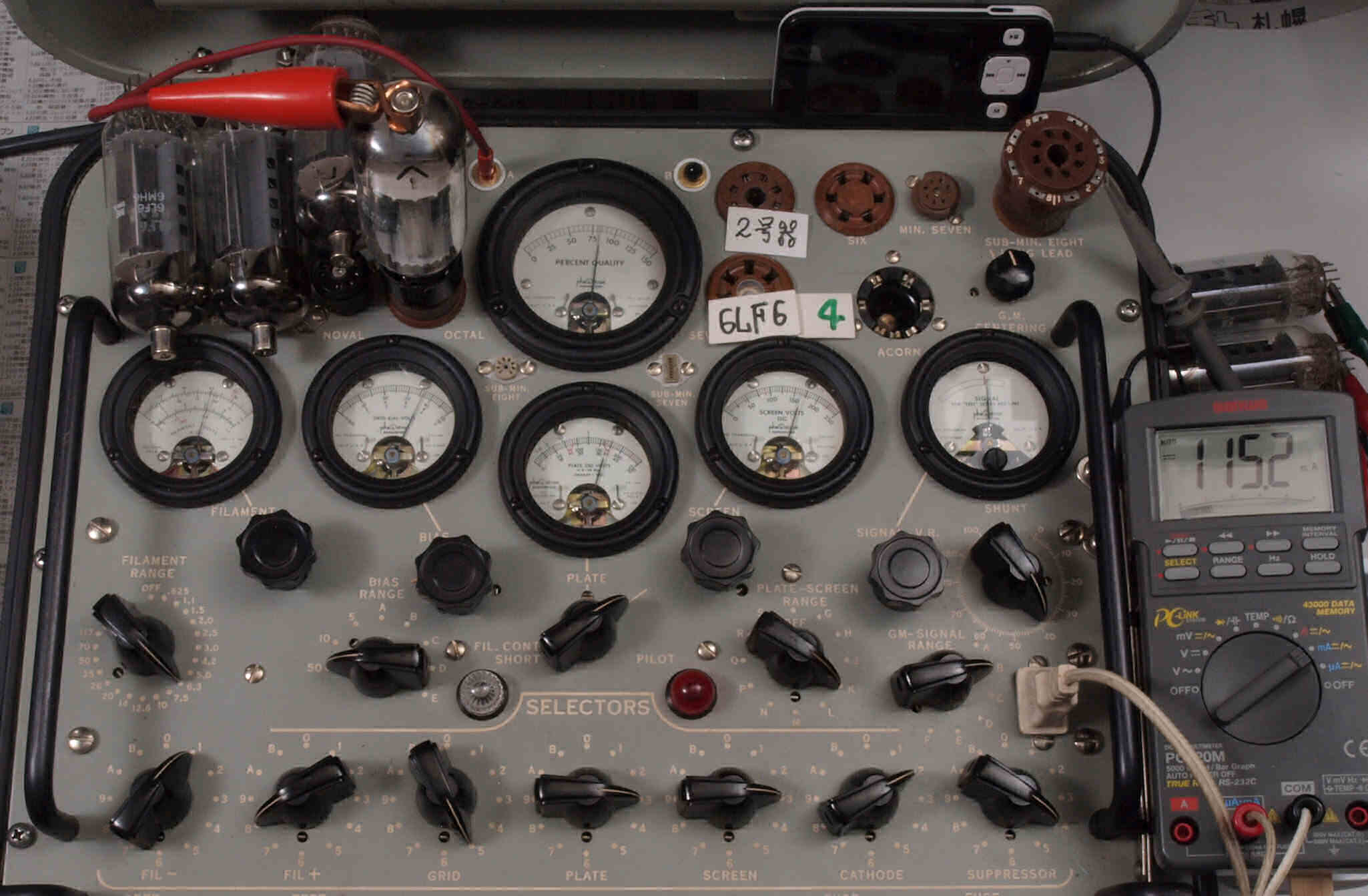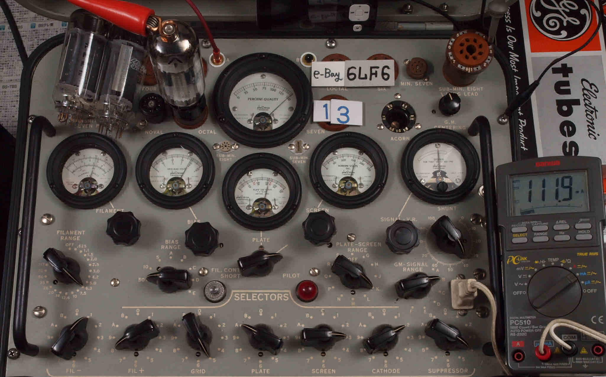 | V12. 2本目 6LF6 。 Gm測定=8000μmho、 Ip=132.2mA。 |