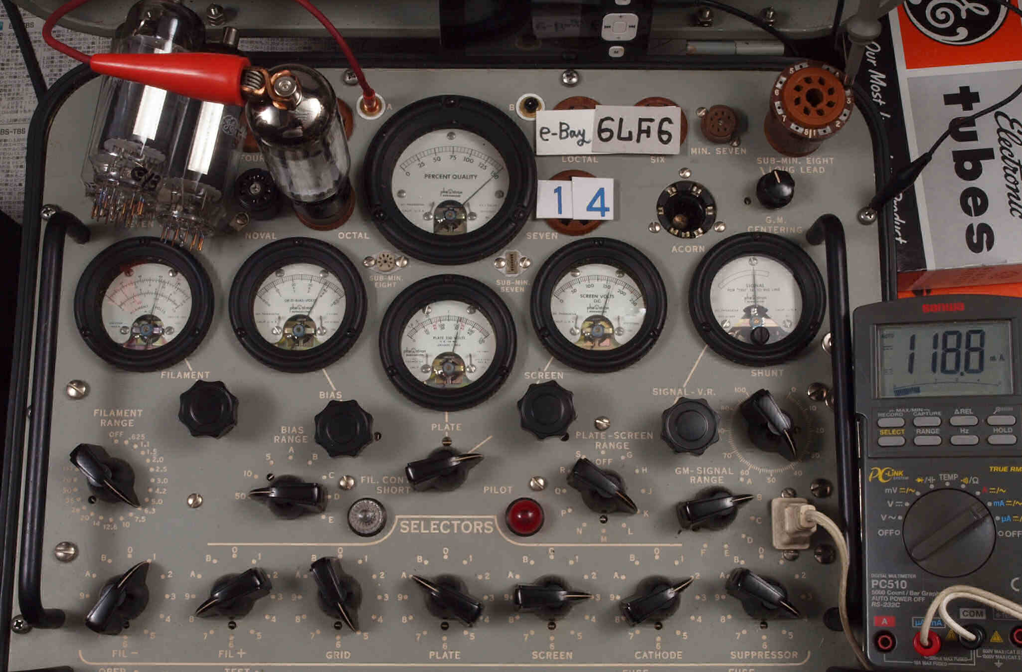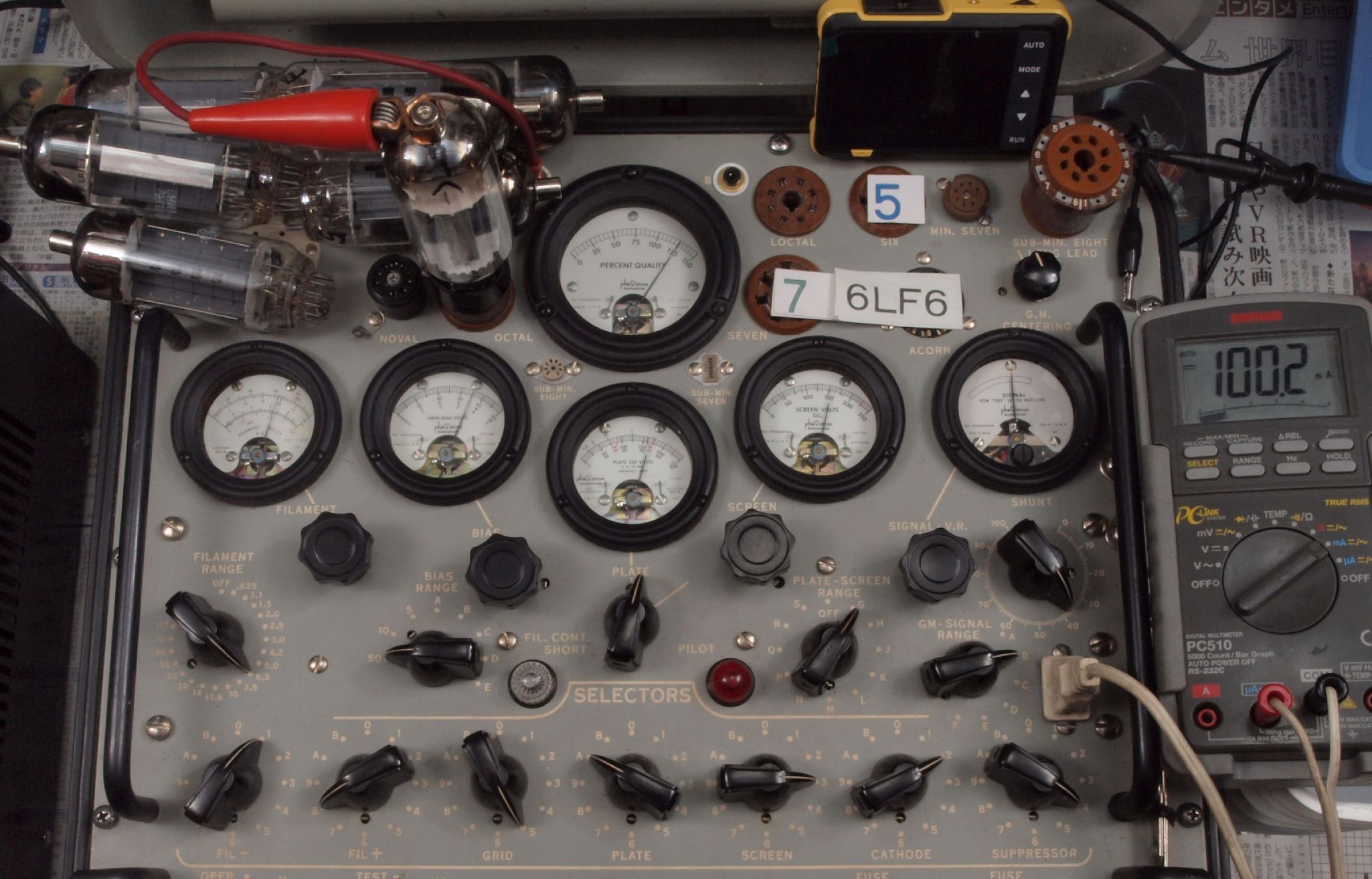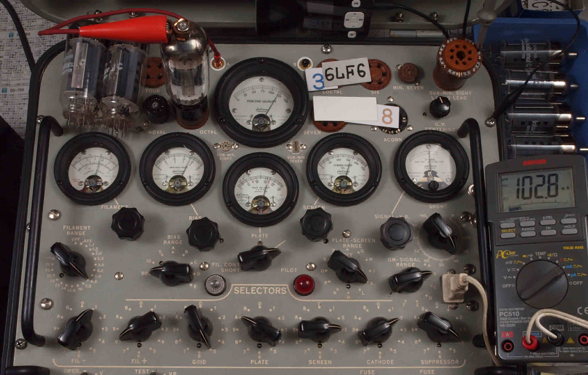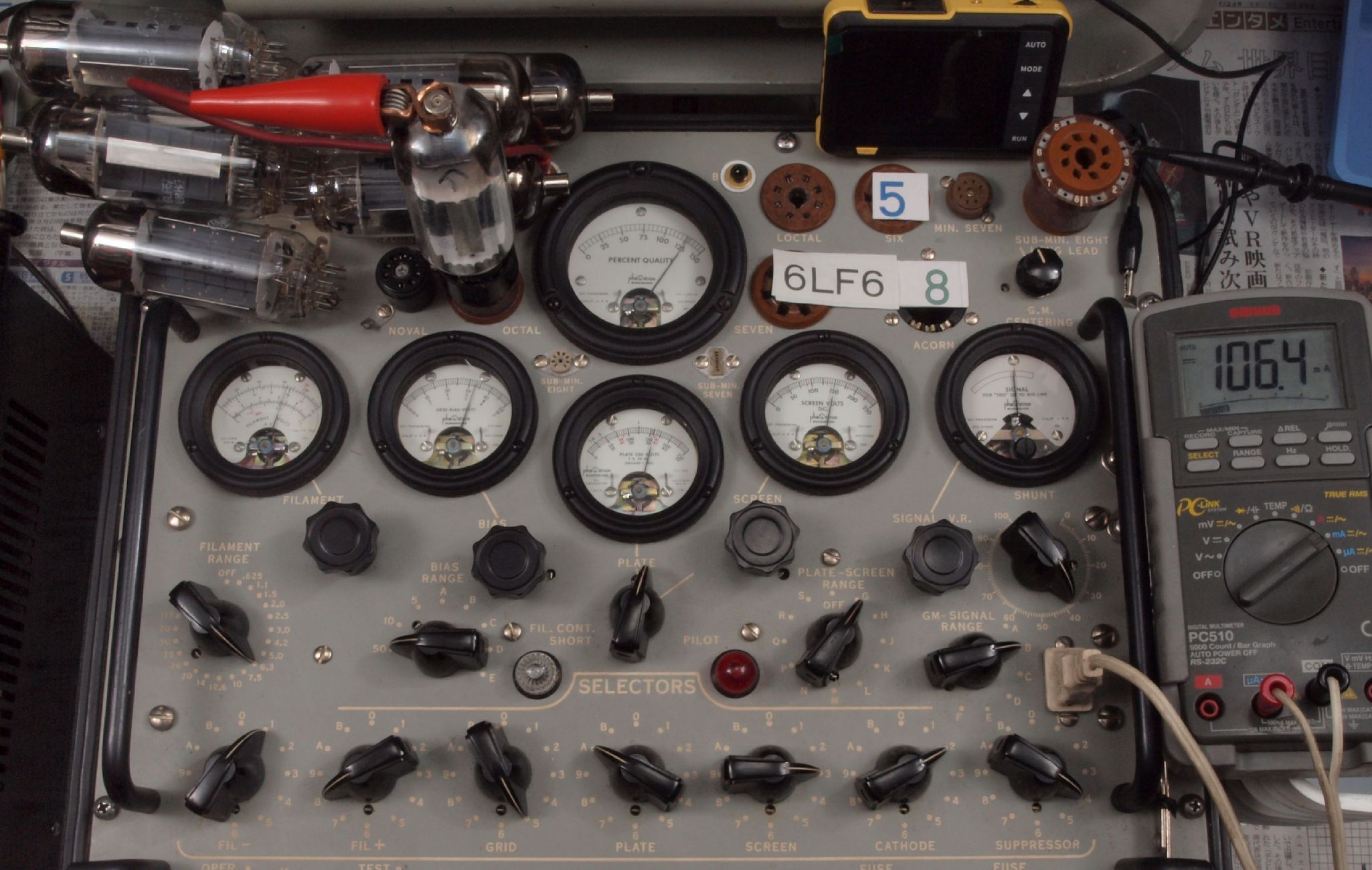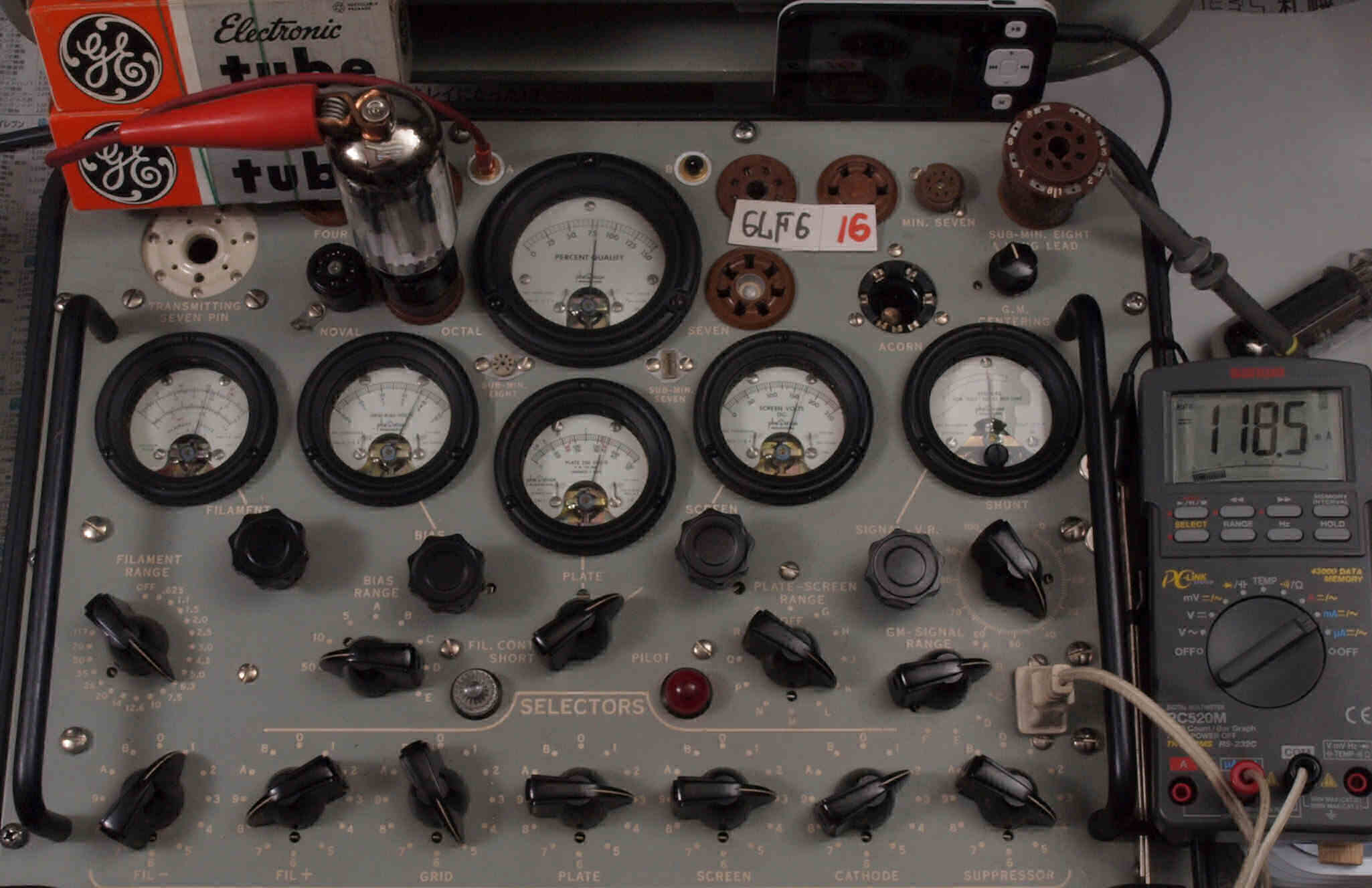 | V12. 2本目 6LF6 。 Gm測定=8000μmho、 Ip=132.2mA。 |