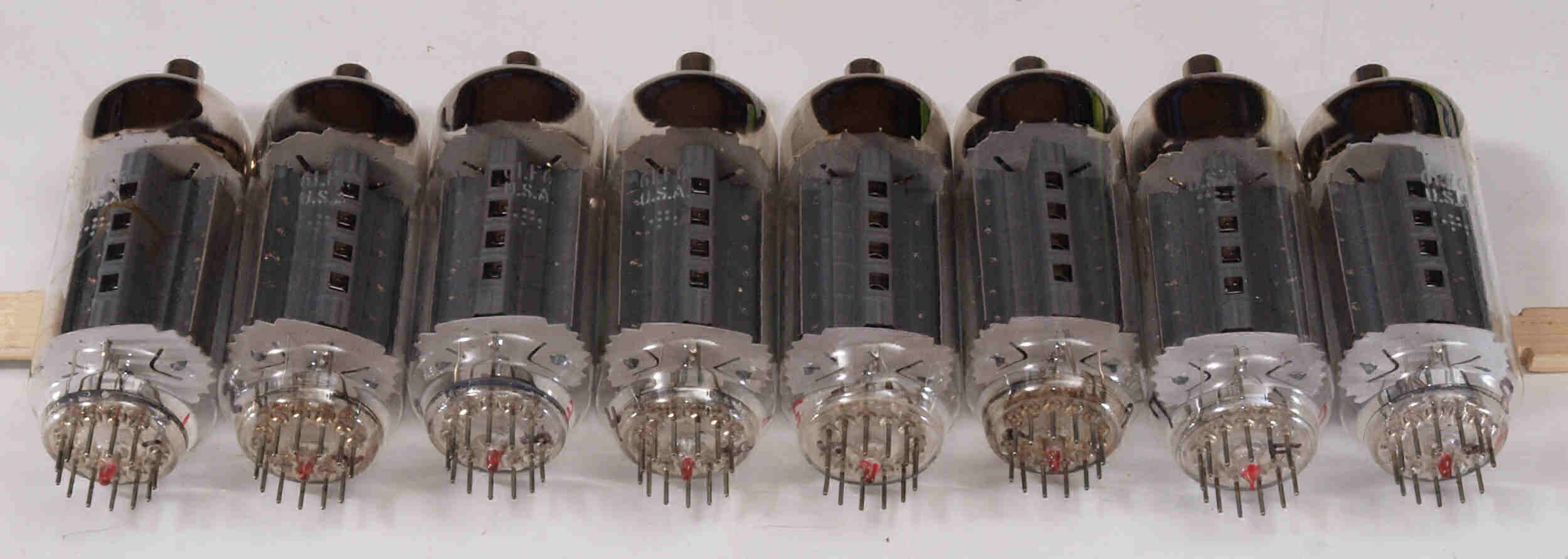 | 1台目付属真空管 6LF6 右から1番目、2番目、、、、8番目。 |