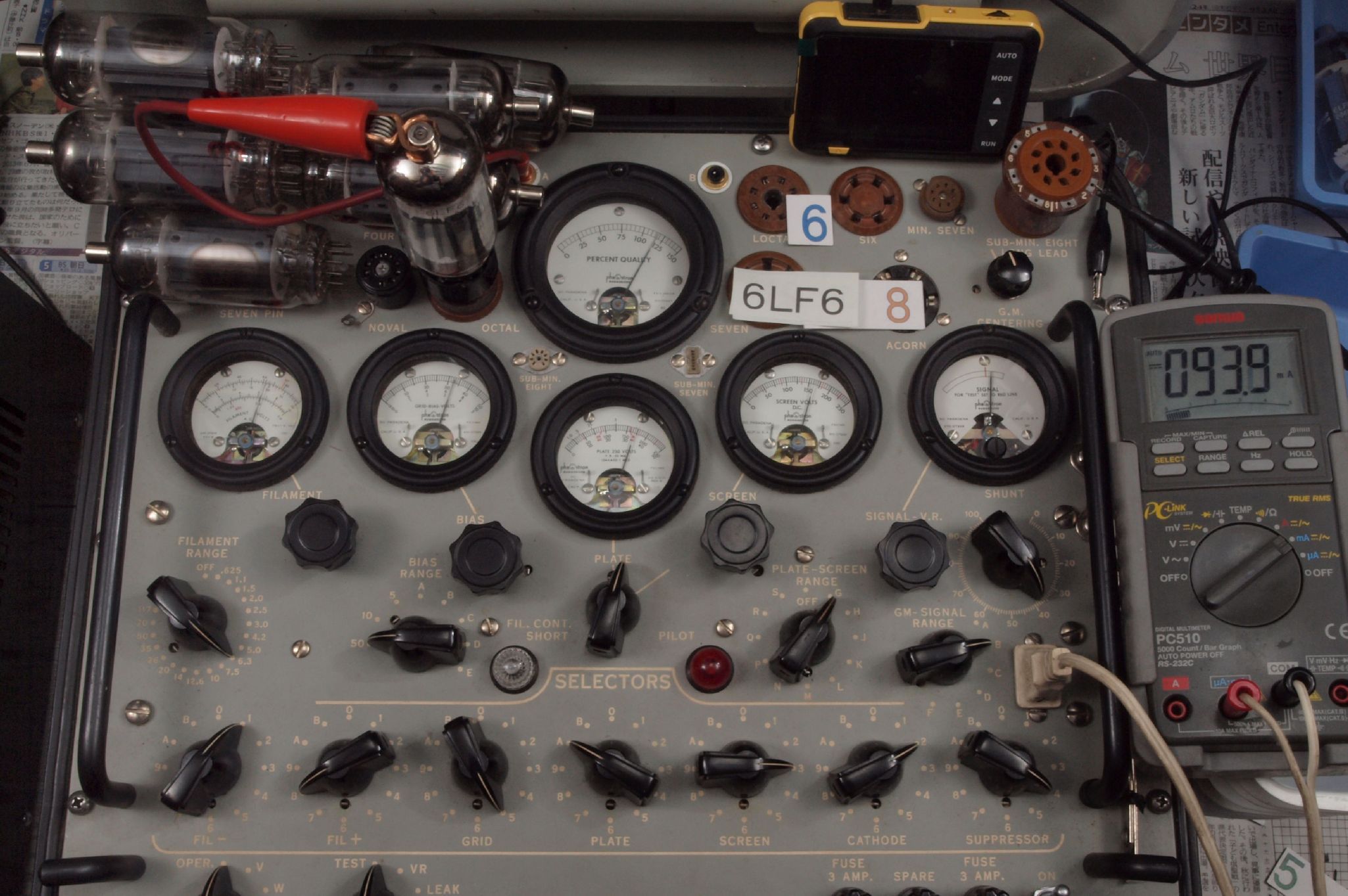 | 予備真空管の測定。 6LF6 右から6番目、7番目、、、、10番目。 |