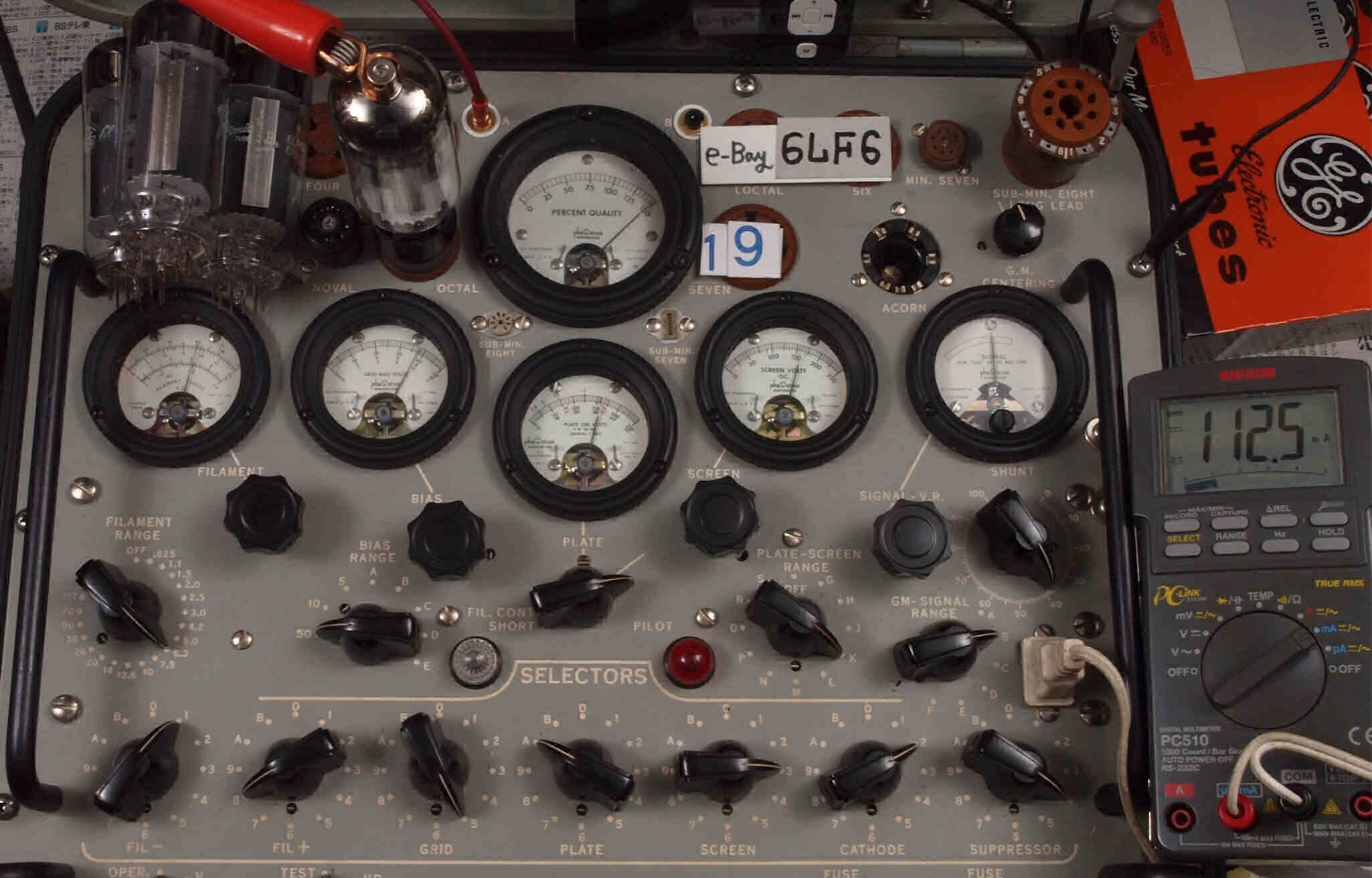 | V419. 19本目「6LF6」。 Gm測定=15000μmho、 Ip=112.5mA。 |