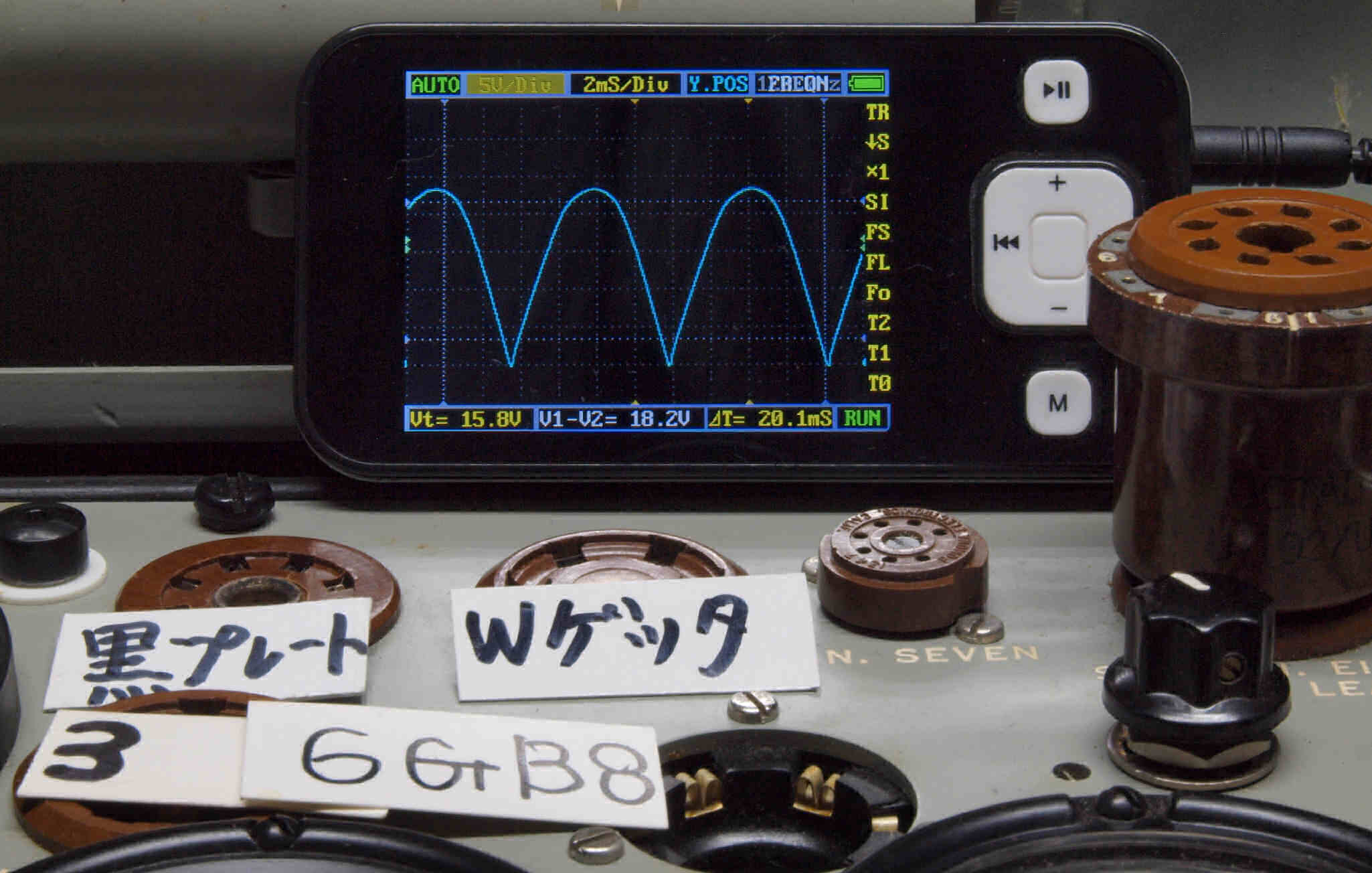 | M4. 4本目 6G-B8 測定。 Gm=20000μmho、Ip=120.4mA。 |