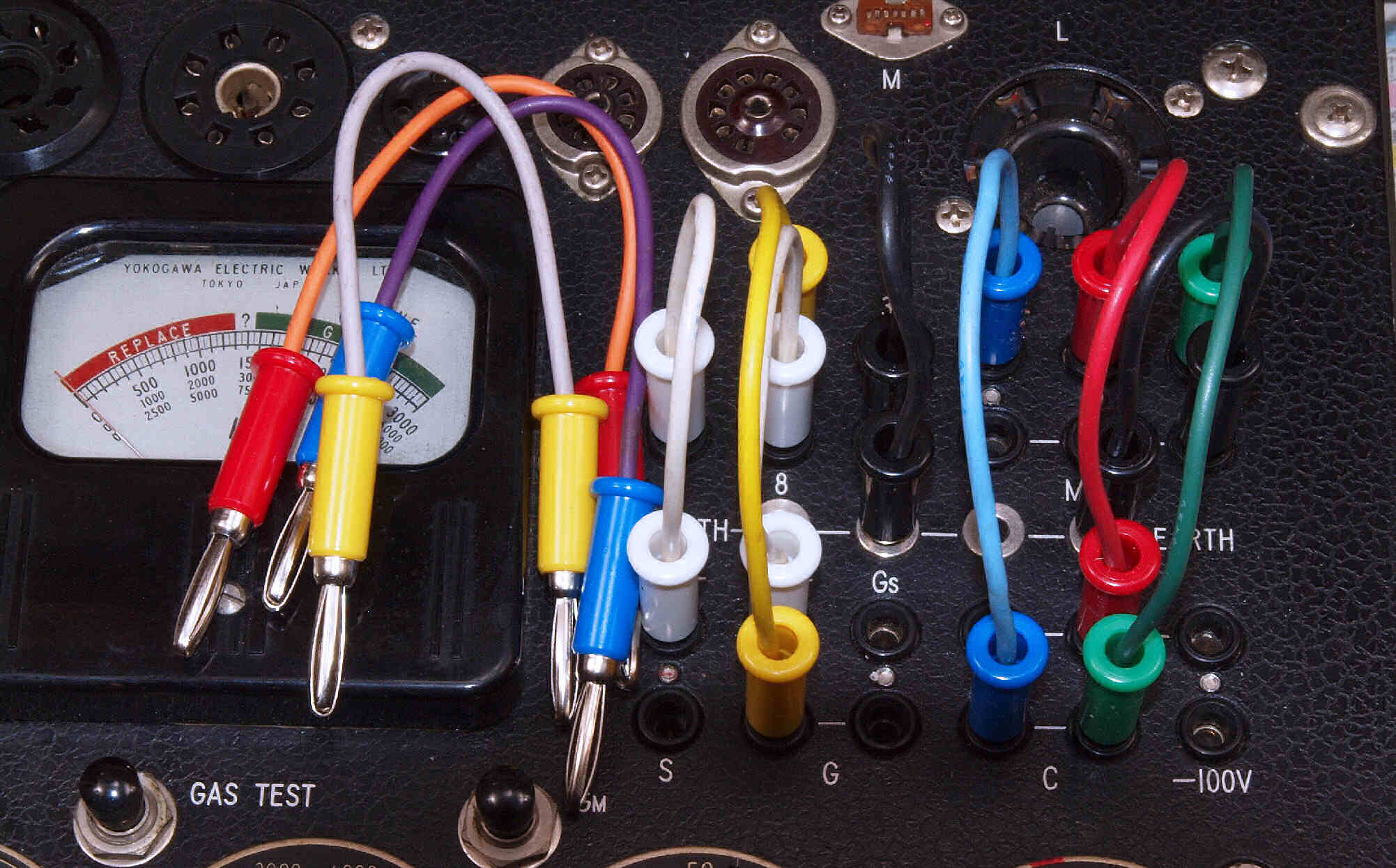 | C03. 修理中 誤操作を防ぐ為、ジャンパー線を色別にする。赤=プレート、黄色=第1グリッド、白色=ヒータ、等。 | |||||||||||||||||||||||||||||||||||