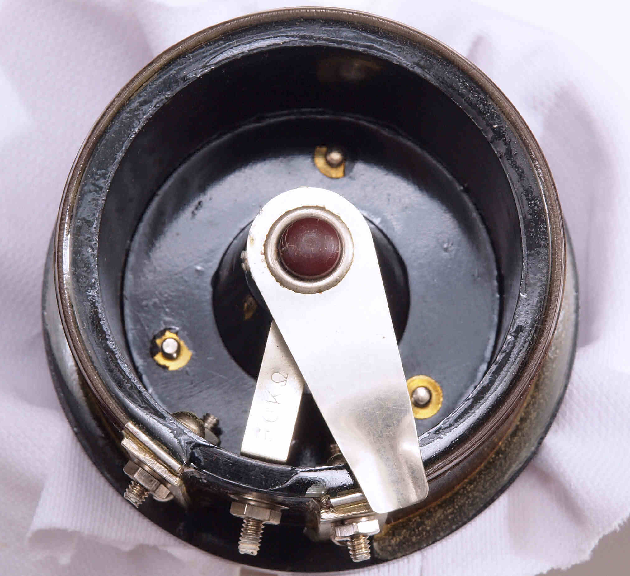 | C14. 修理中 取り出した、E1GのVR、密閉型なのですが、逆に湿気が隠り、腐食した可能性が大きい。 緑青が出ている所が断線ケ所、8ヶ所断線! |
