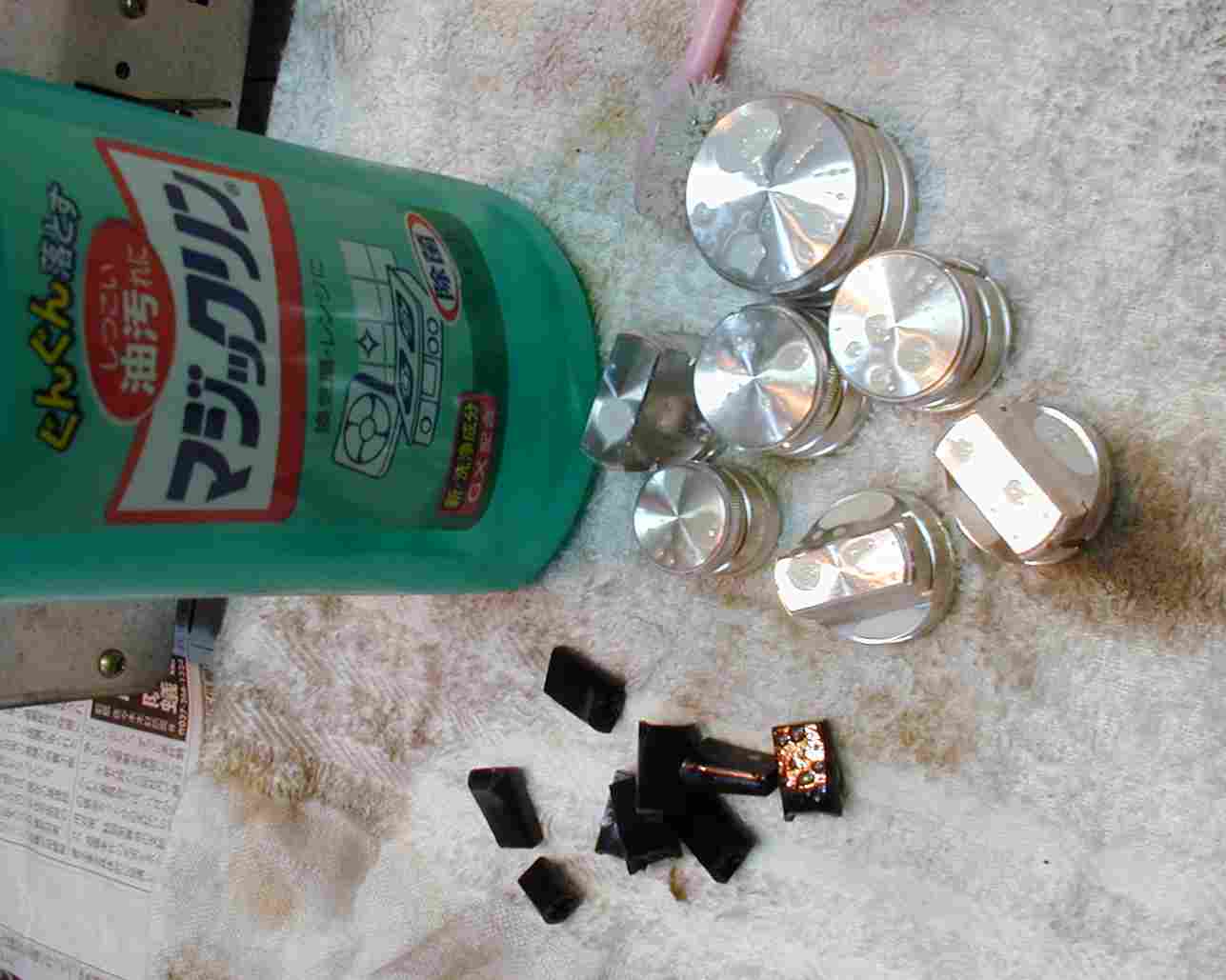 上は、ツマミにこびりついた、タバコのヤニが浮いて来ている様子です、この後ブラシで良くこする。