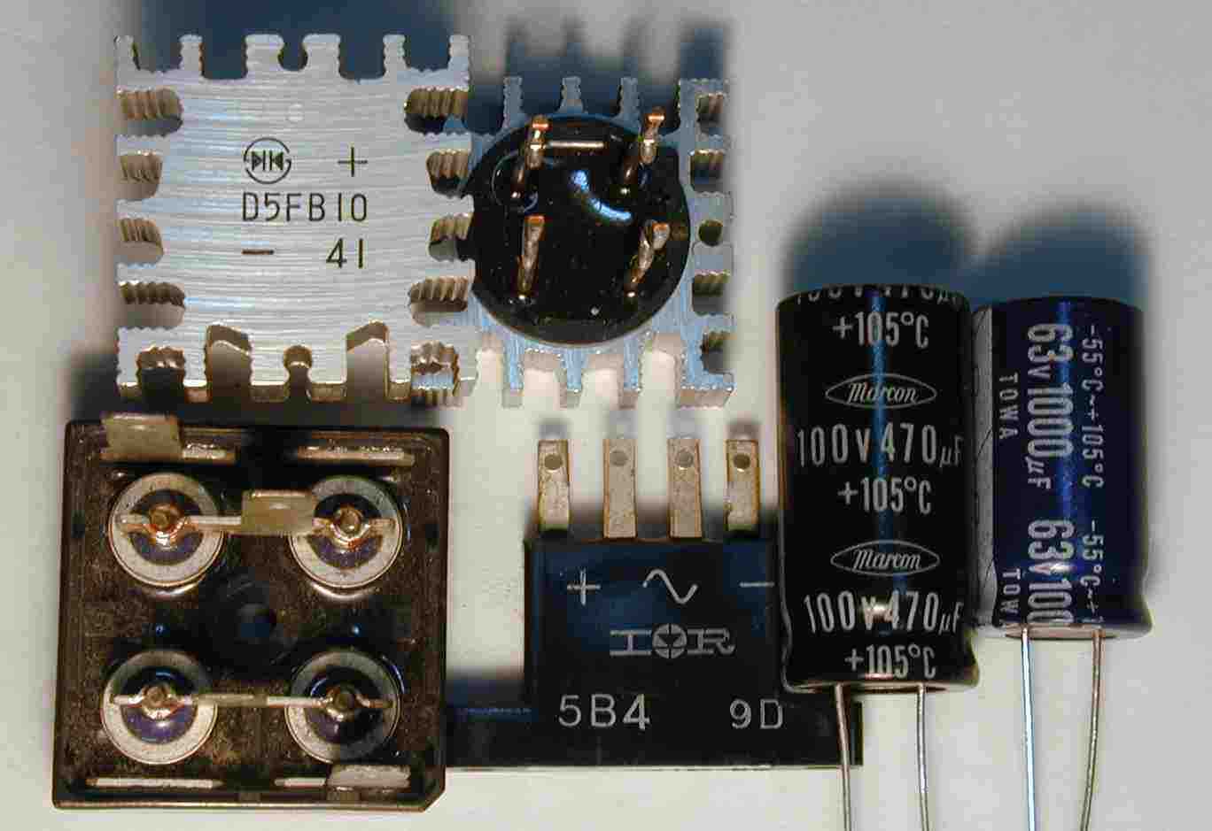 | 3. 修理の時、ついでのに交換した方が良いもの。 整流器(ダイオード)を大電流の物に交換する。 整流用電解コンデンサーを高温度、高電圧、大容量のものと交換する。 |