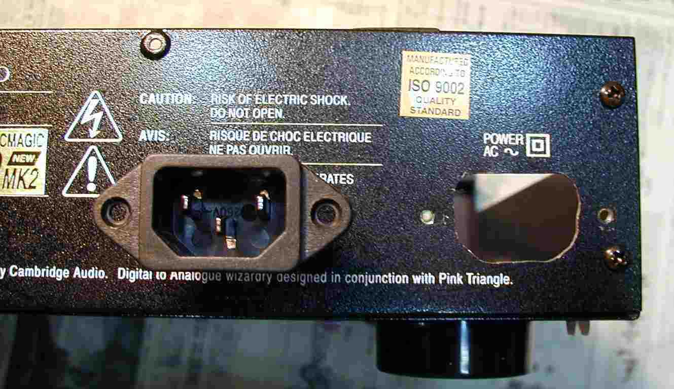 | 32. 簡単に効能を知るには、「3Pインレット」に交換しコードを交換してみる。 下は、「3Pインレット」に交換した物。 詳細はこちら参照 但し、交換すると、インレットの接触抵抗が増すので注意 |