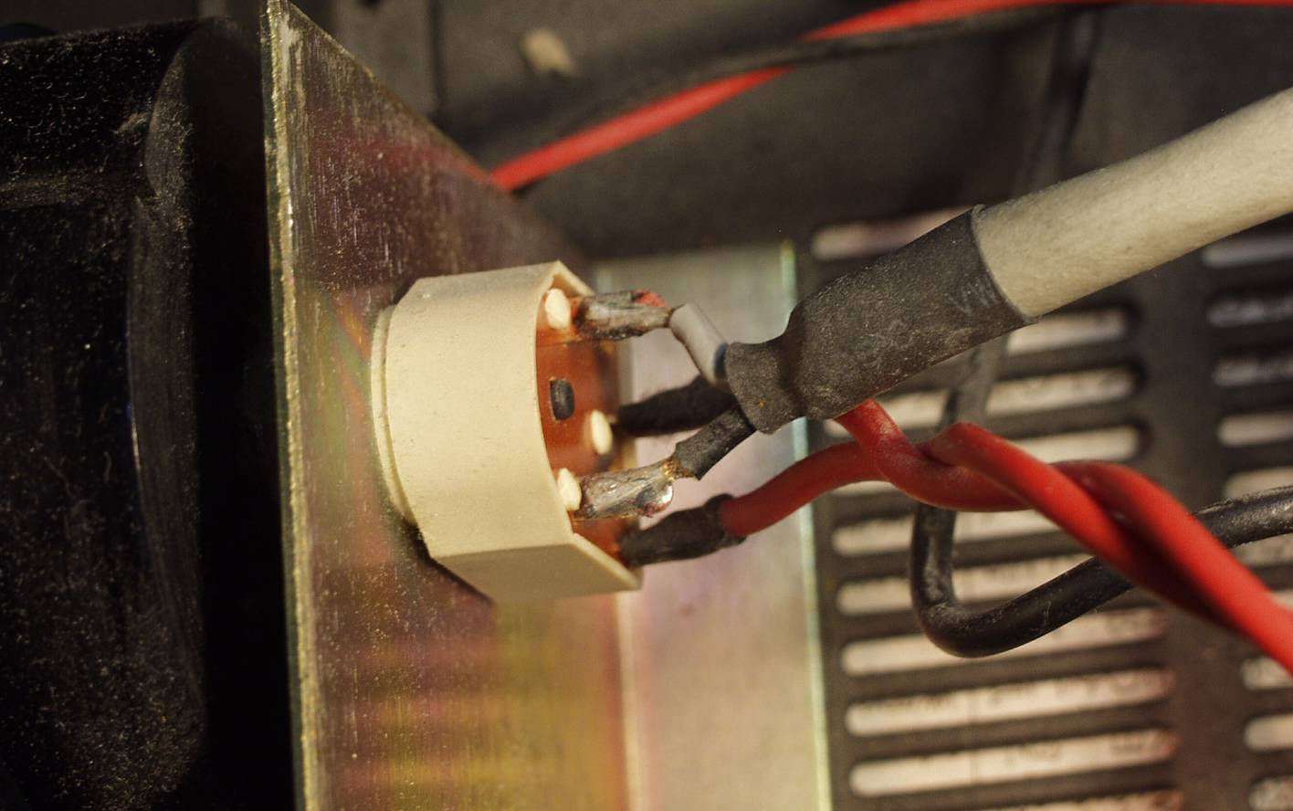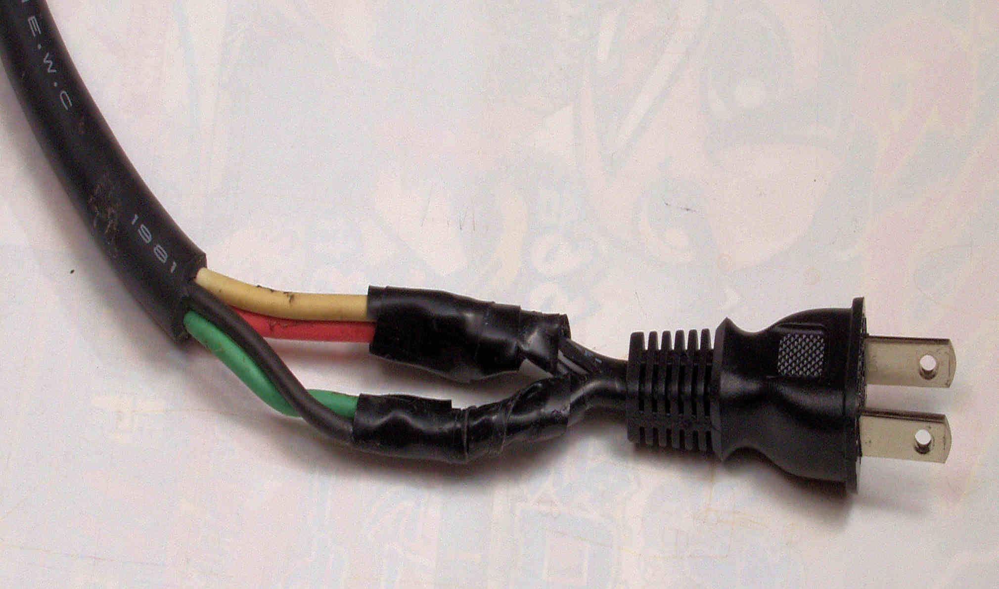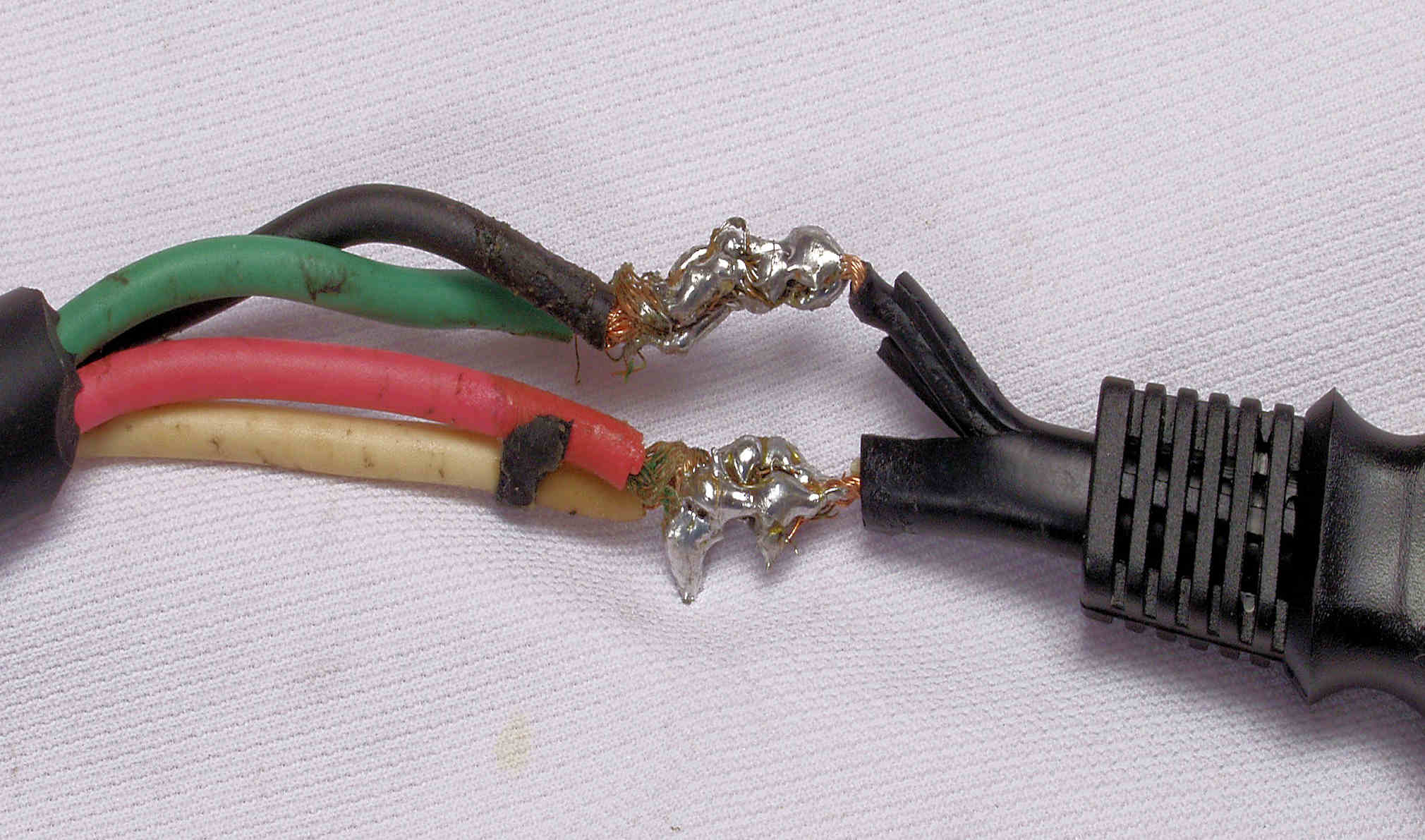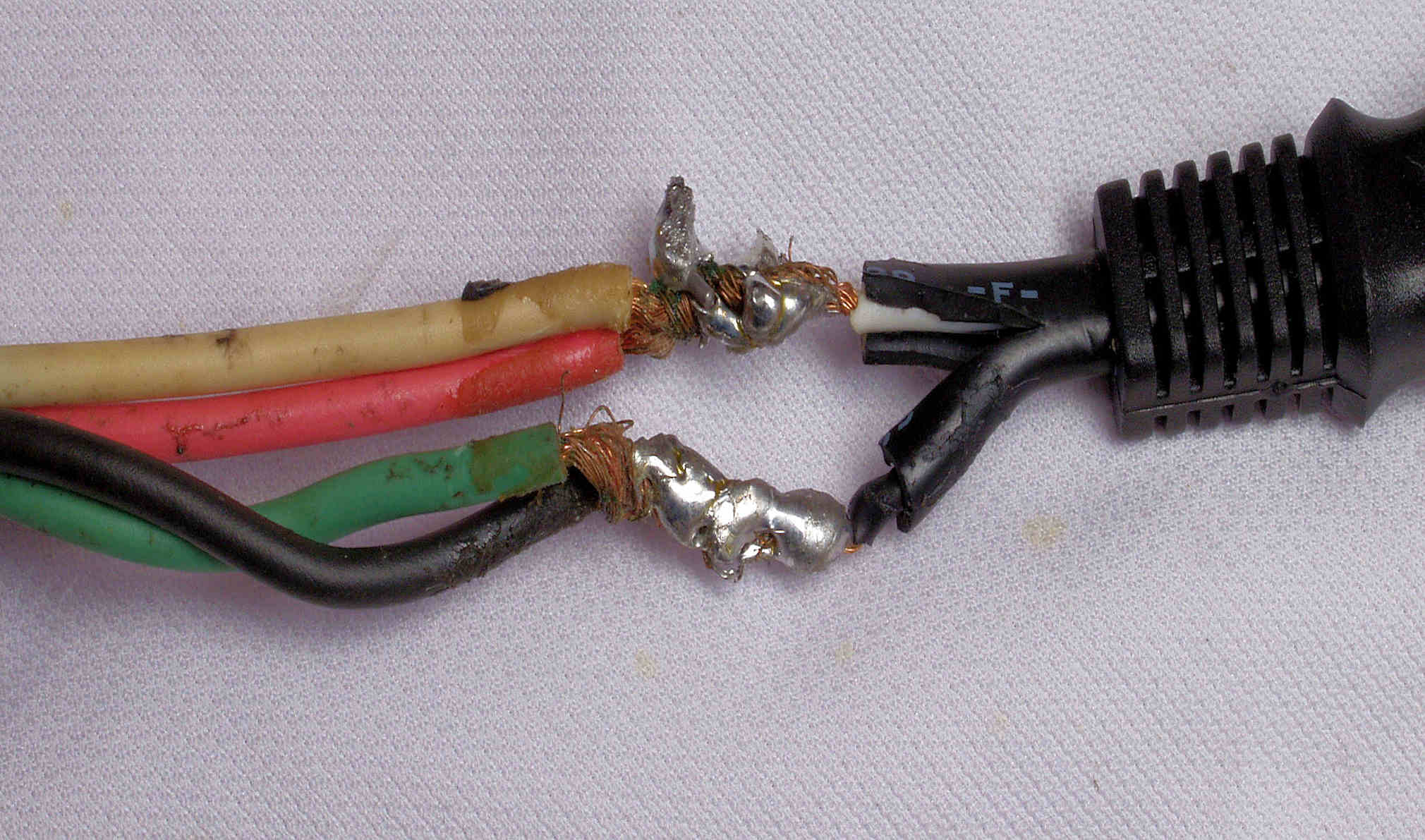 | 45. 電源コードとコンセント接続部。 拡大する。 これが正真正銘の「いも半田」。 |