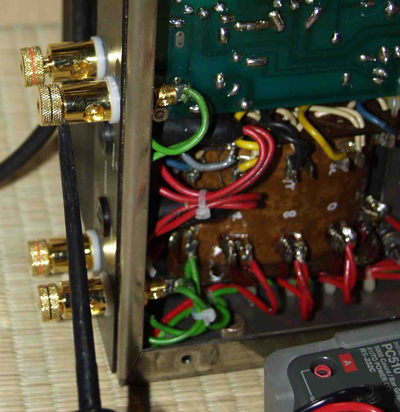L側バイアス電流調整 赤が+、黒が−です、白いプラスチックドライバーが回すVR