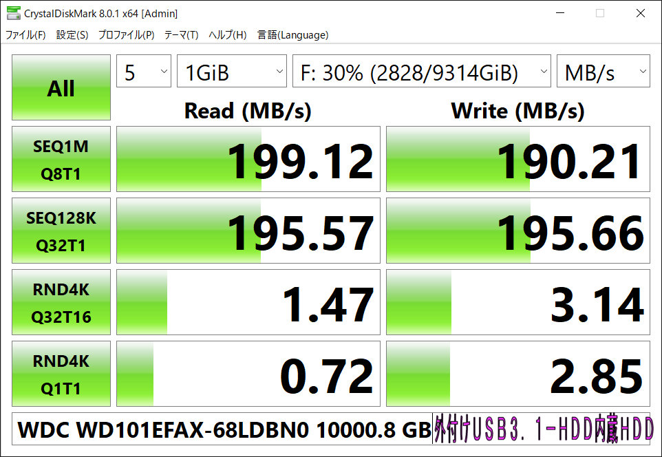C54.  SUSB3.1外付けHDD WD Red Plus 10TB 測定。