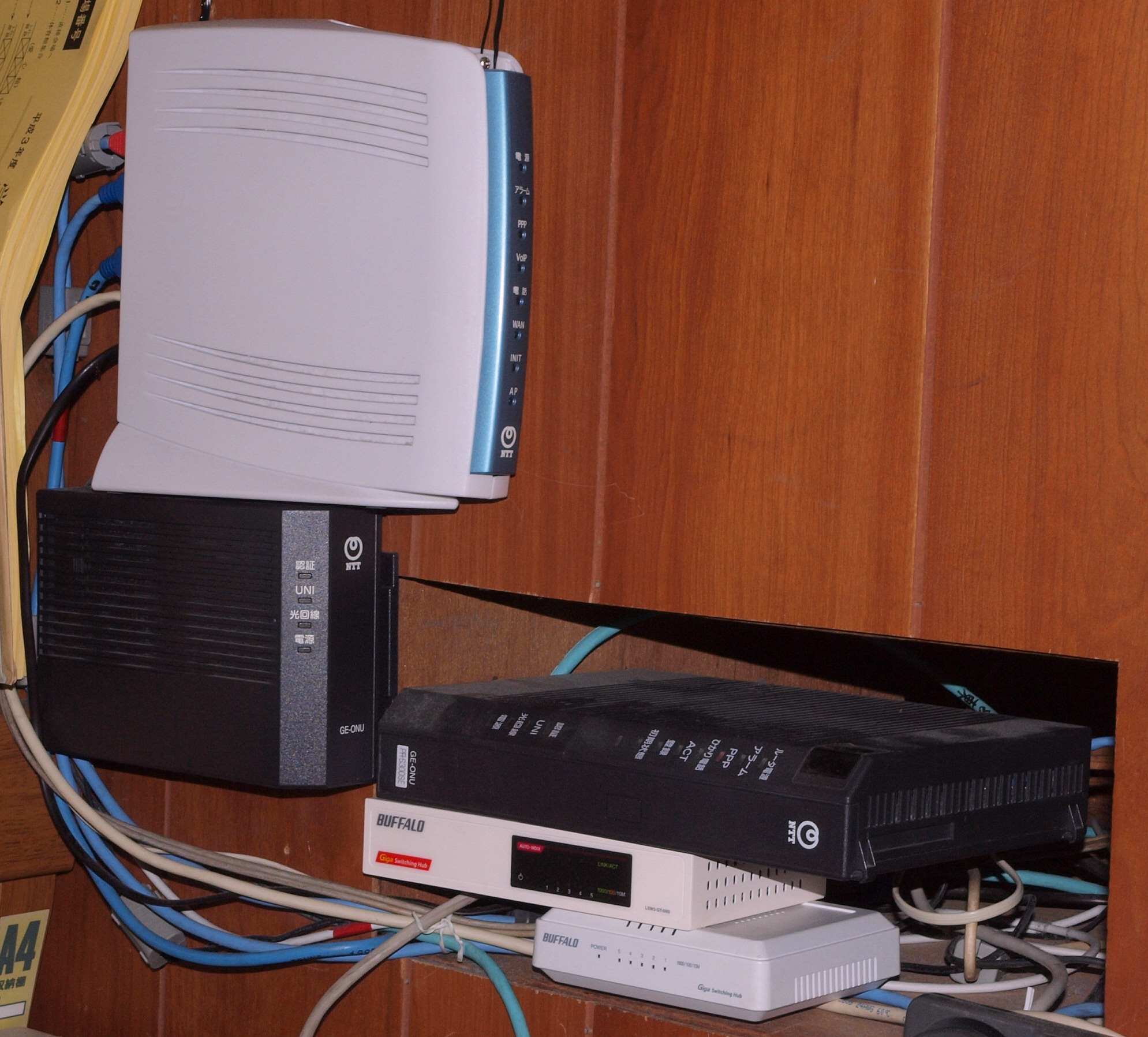 91. GE-ONU 2台、 V110 PRS300S ルータ。           自宅サーバー構築図は此方