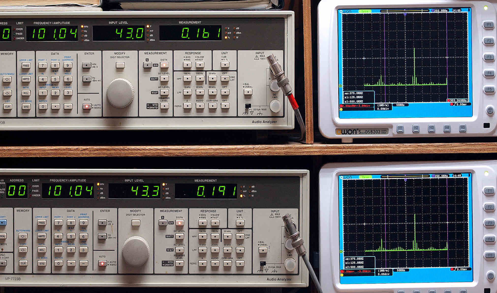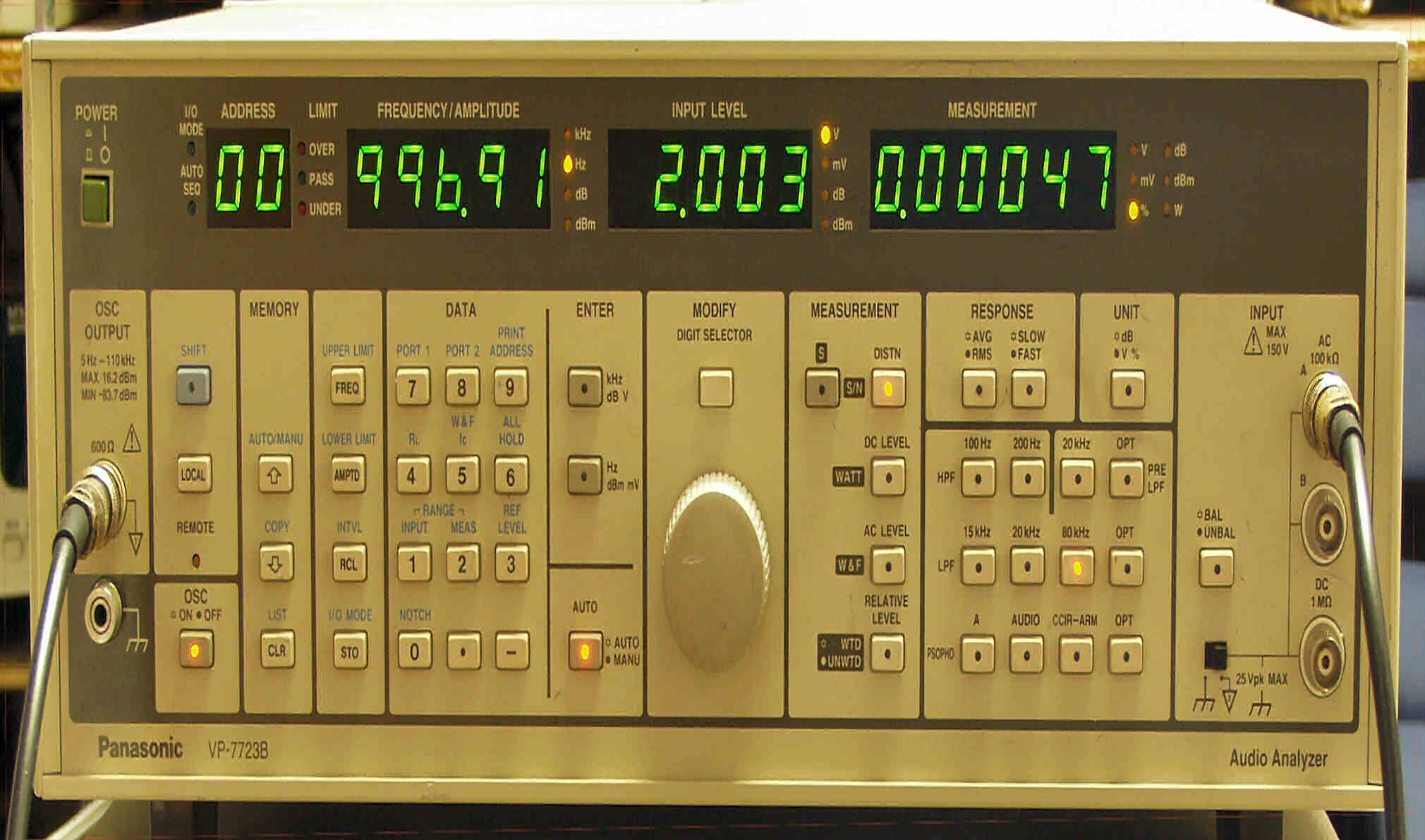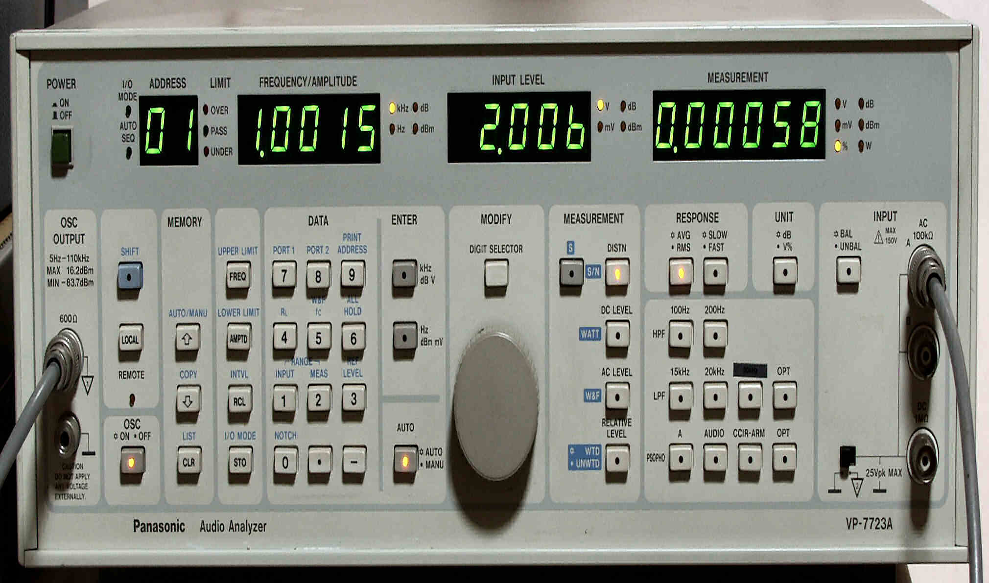 1. Audio Analyzer Panasonic VP−7723A。2台あり。 反応が早いので測定が楽