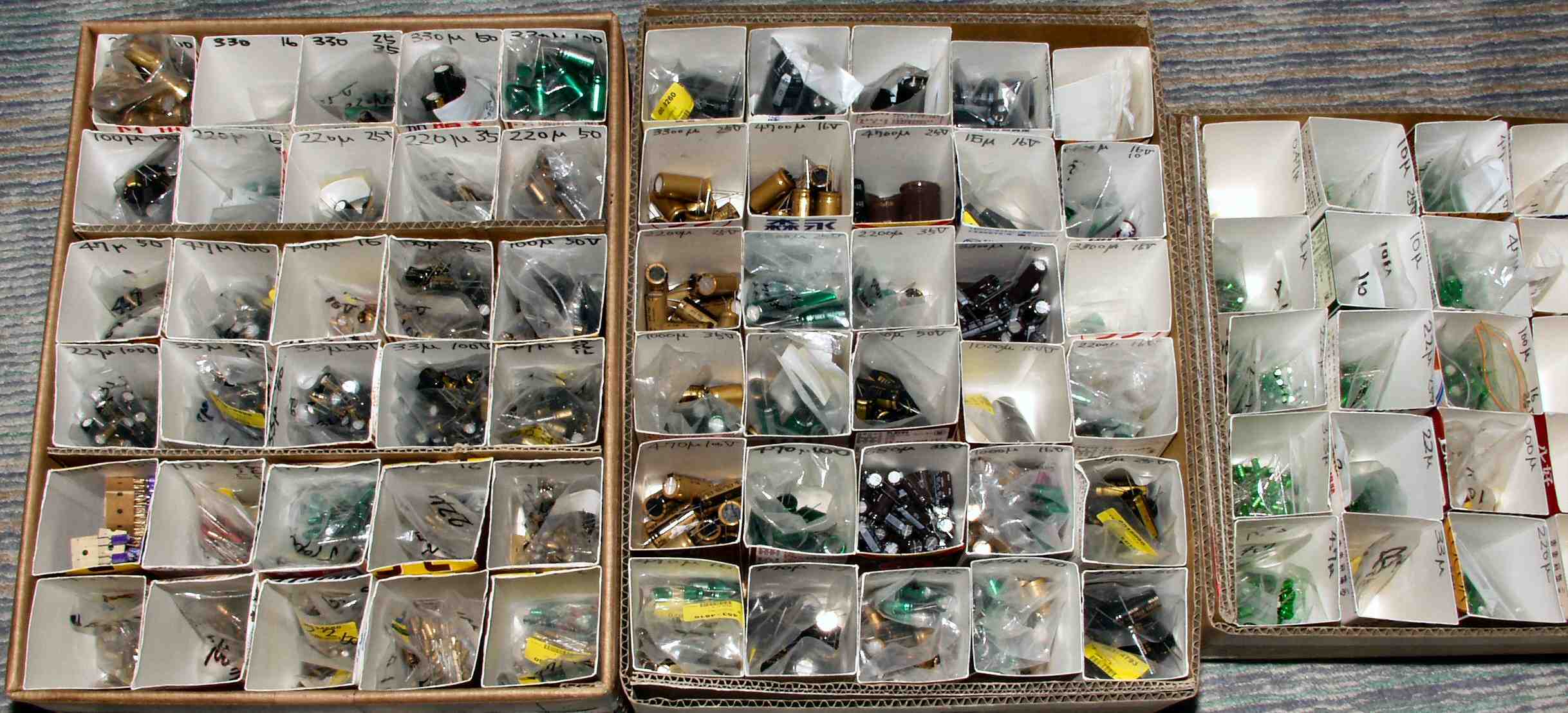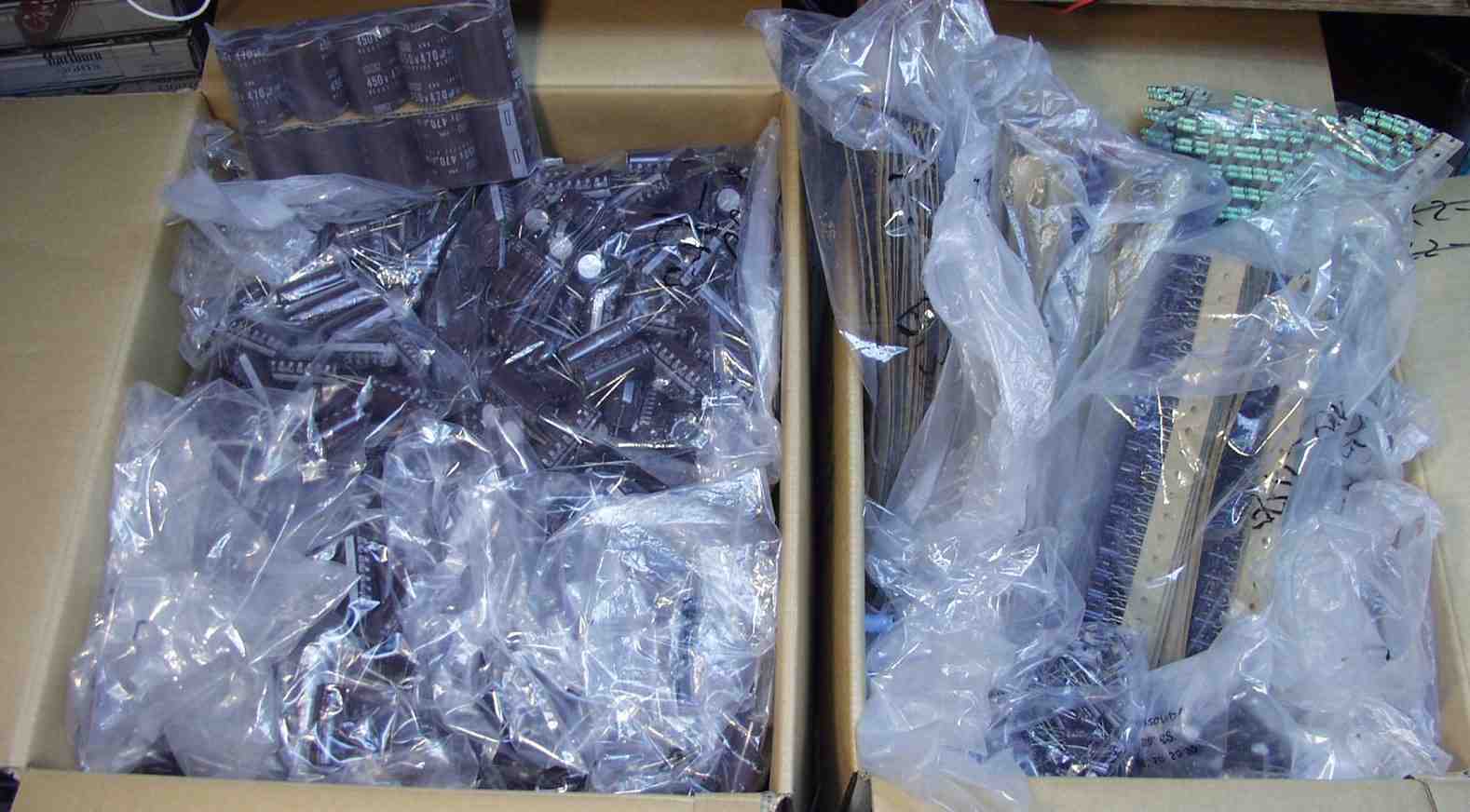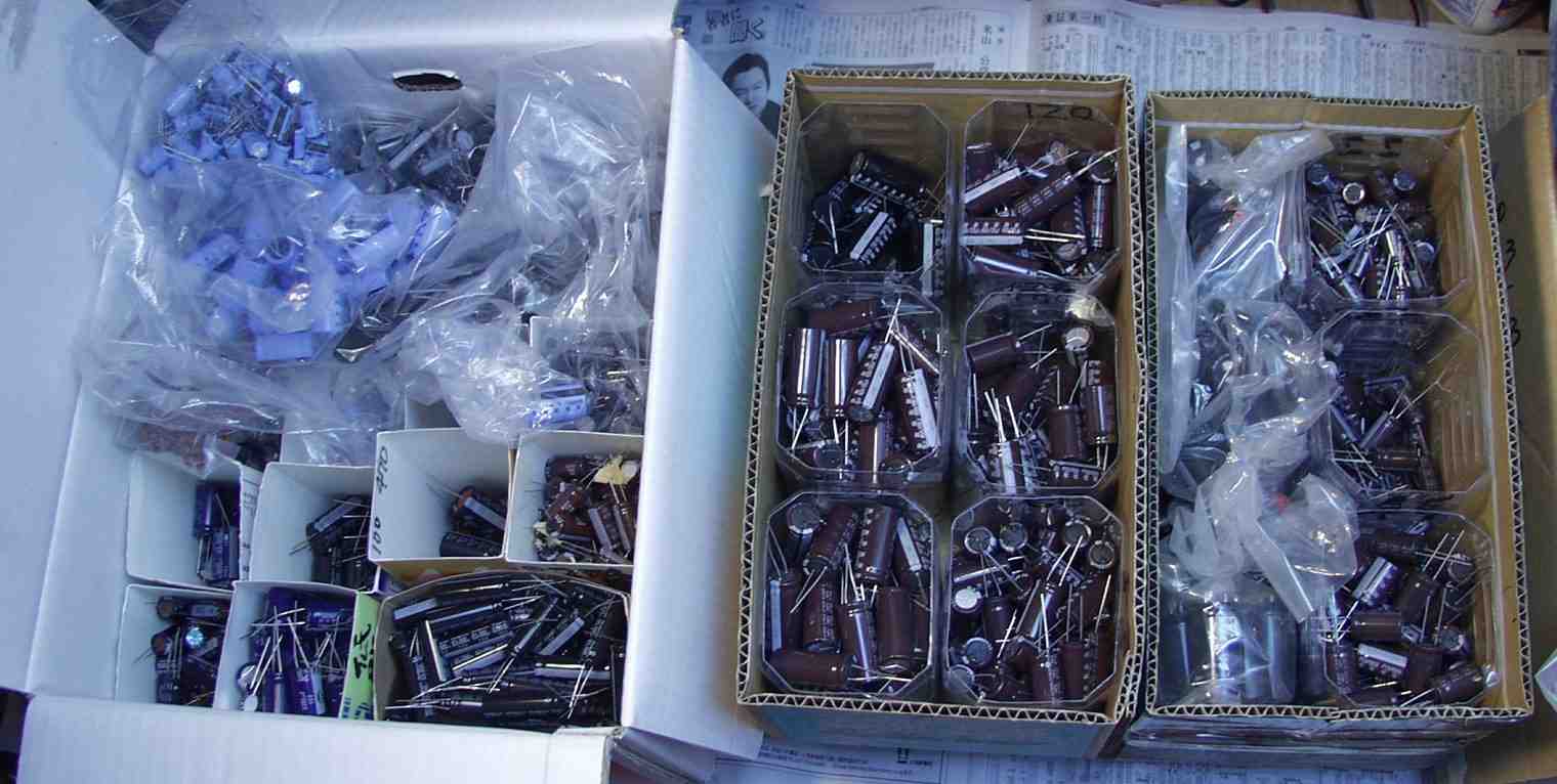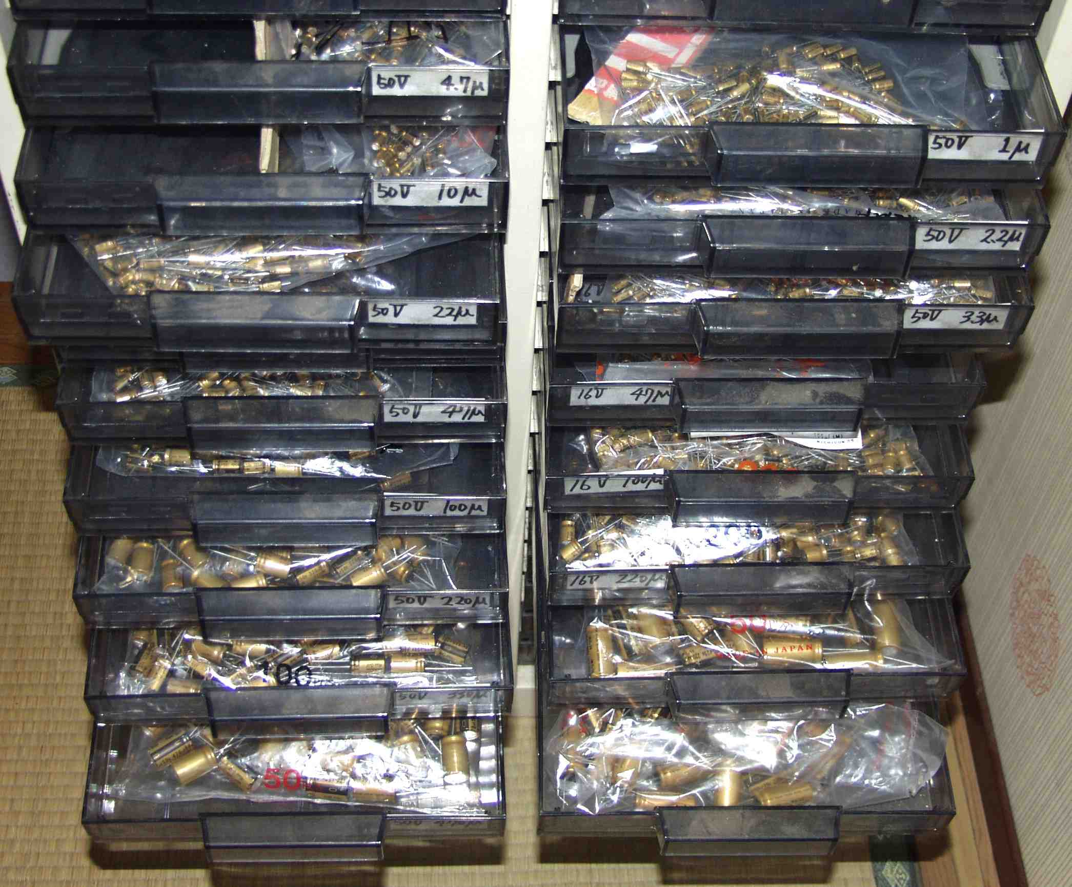 12. コンデンサー保存庫。 しかし、入りきらず、大型は殆どダンボール箱で保管。