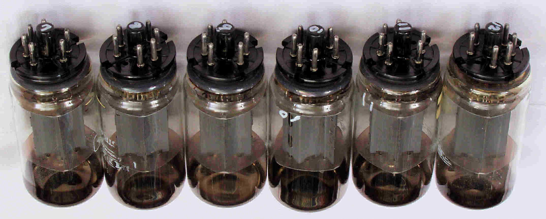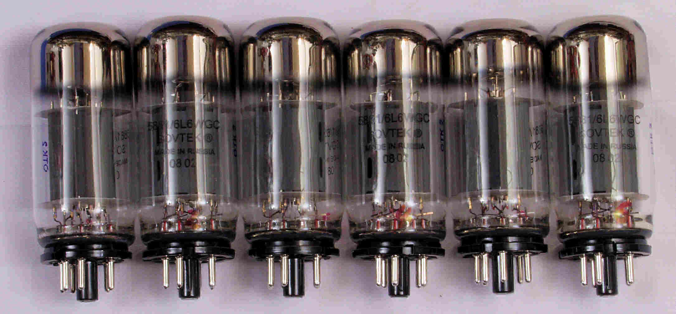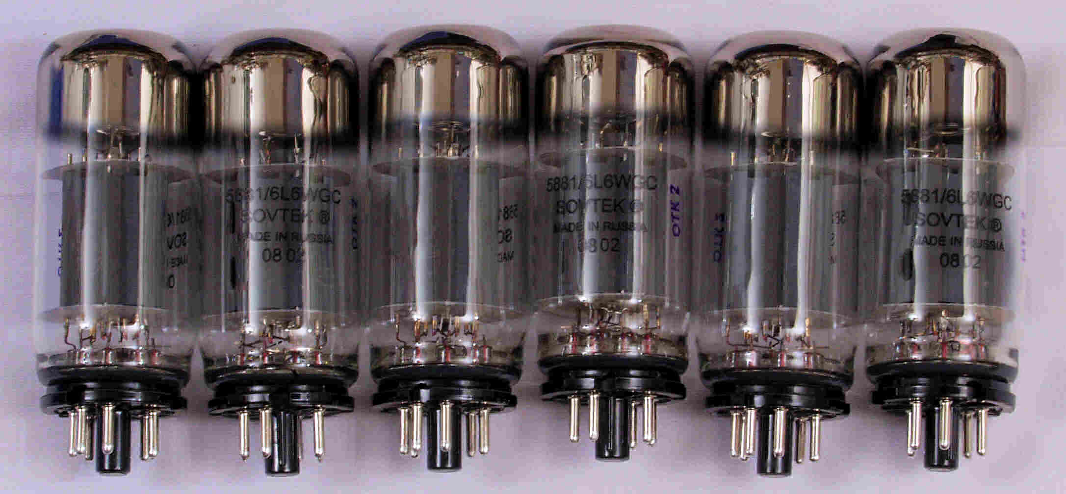 | CB3. 新品購入出力真空管SOVTEC 「5881=6L6WGC」。 左上から1本目....6本目。 |