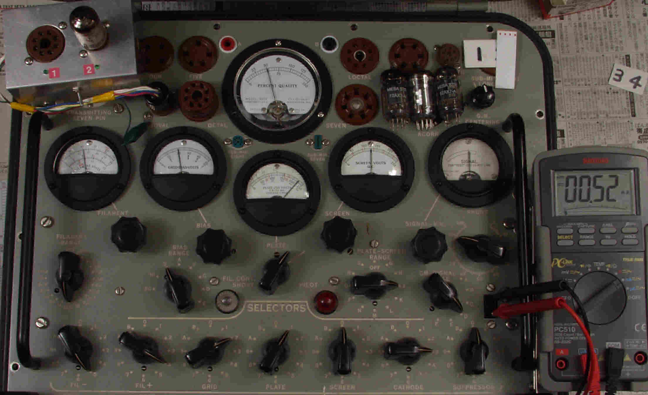 | CB31. SOVTEC 12AX7LP、3本目ユニット1測定。 Gm=2100μmho、IP=1.4mA。 Cレンジ=3000μmhoレンジ、「Ep=225V、Eg1=−2V」。 |