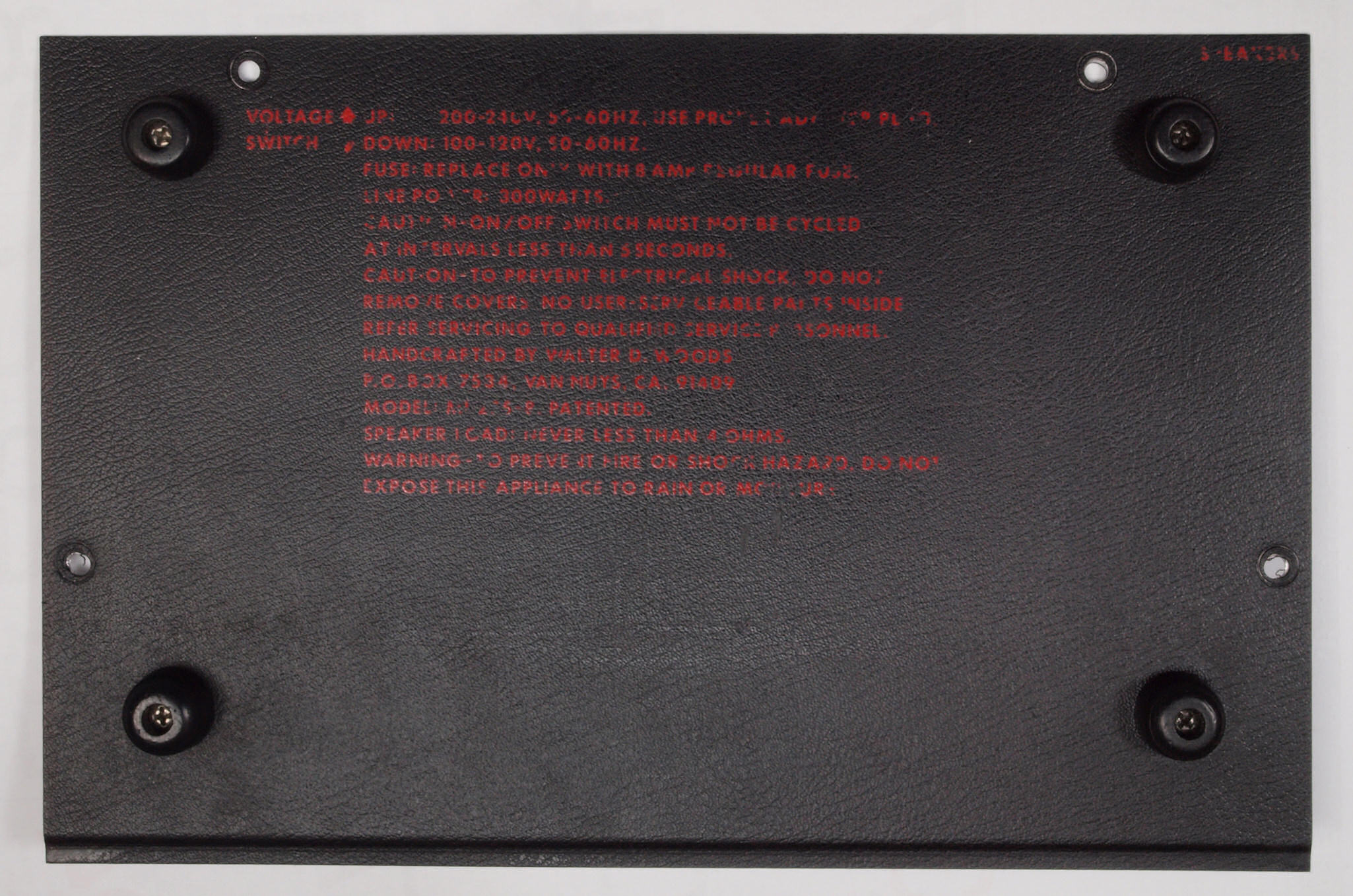 E. 調整・測定 F. 修理費 80,000円 通常修理ですが特別にHP製作。 Y. ユーザー宅の設置状況 S. WALTER WOODS M−300 仕様 |