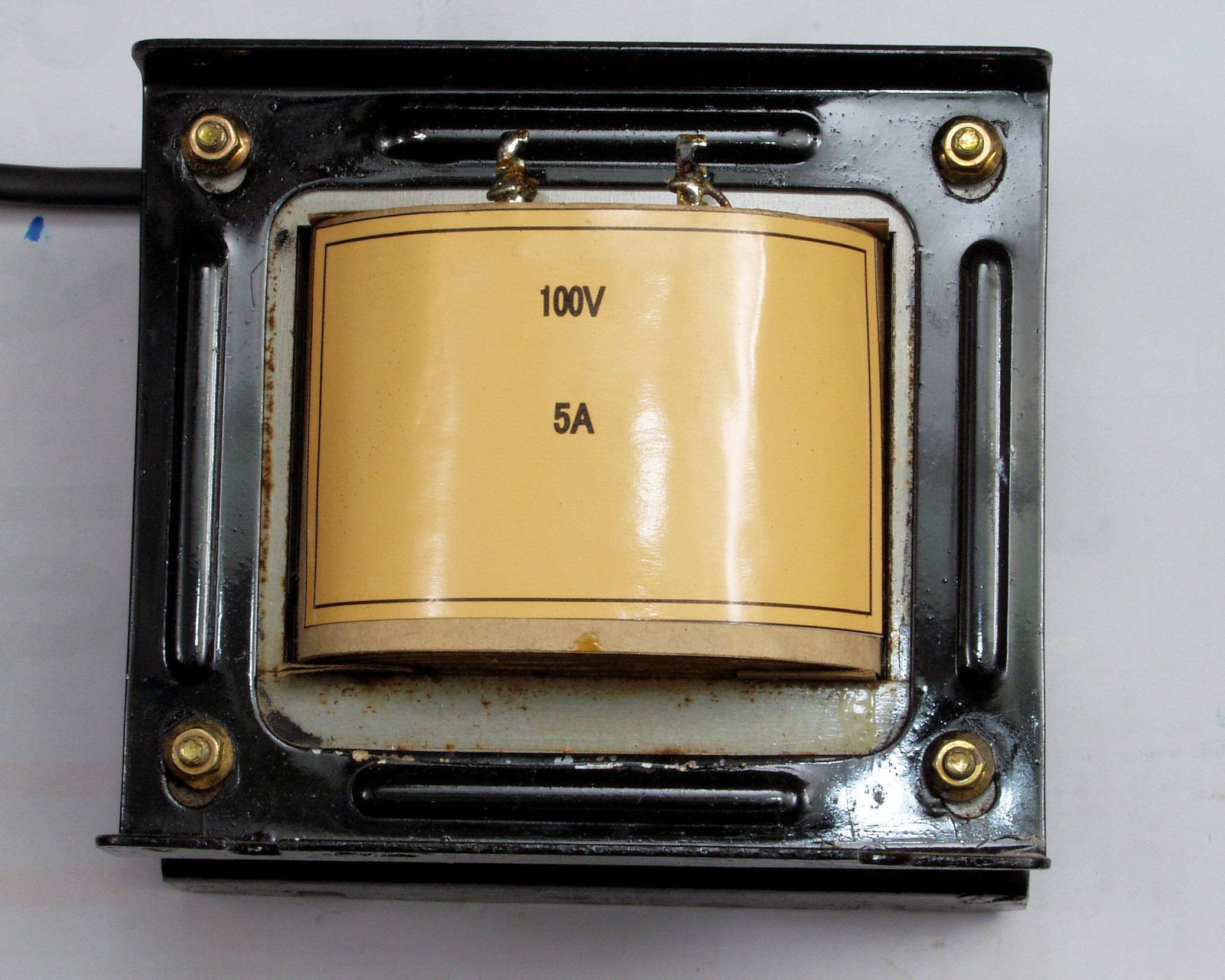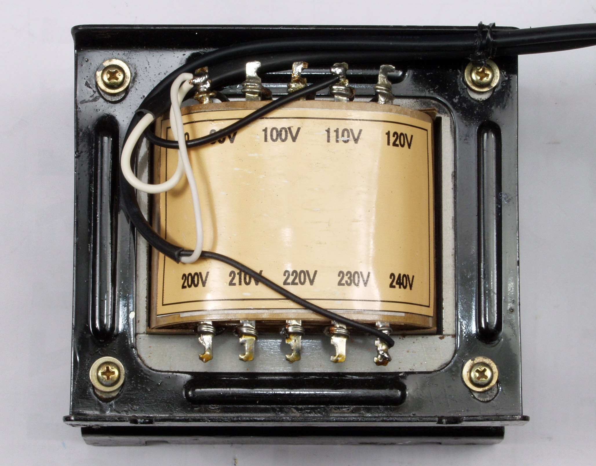 | 4. 使用したトランス。元々は絶縁トランス、110V端子に「100V」を入力し240V端子で「218V」を取り出し |