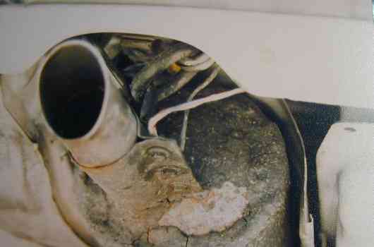 | 7.各種ア−ス線の様子。 左=マフラー出口に取り付ける |