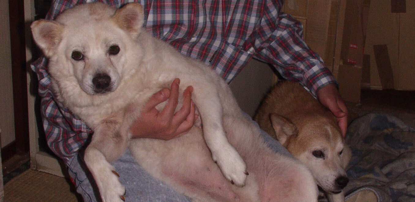 | 23. 2代目 「コロ」、と3匹目「シロ」。平成2年。 |