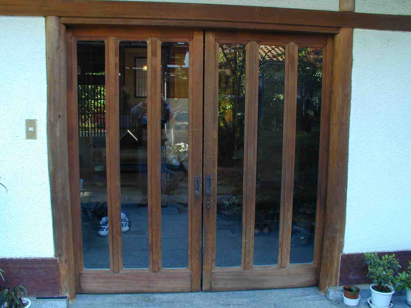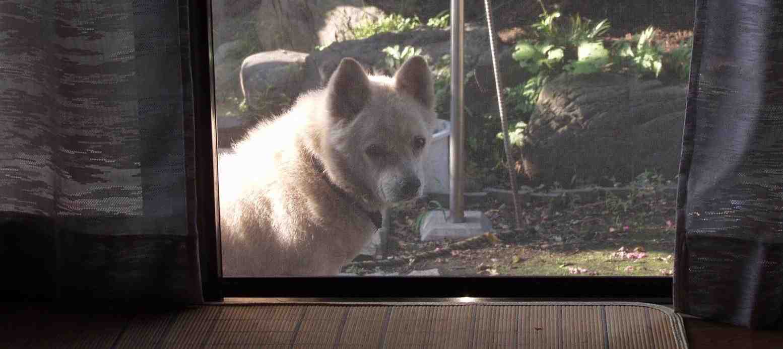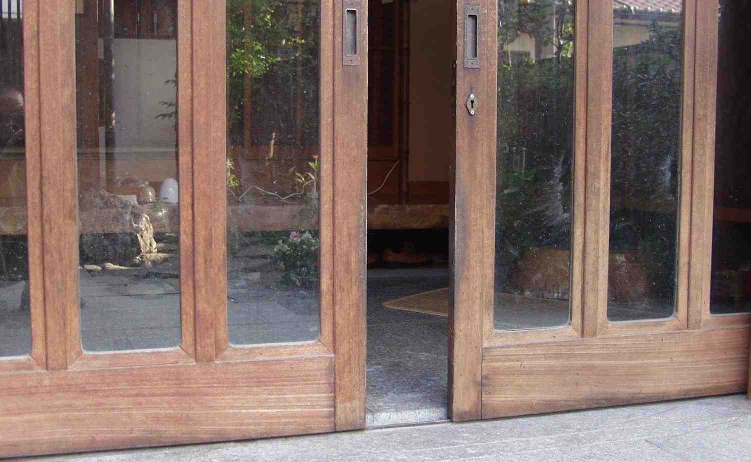 1.この重い木の玄関ガラス引き戸を、鼻で開ける。