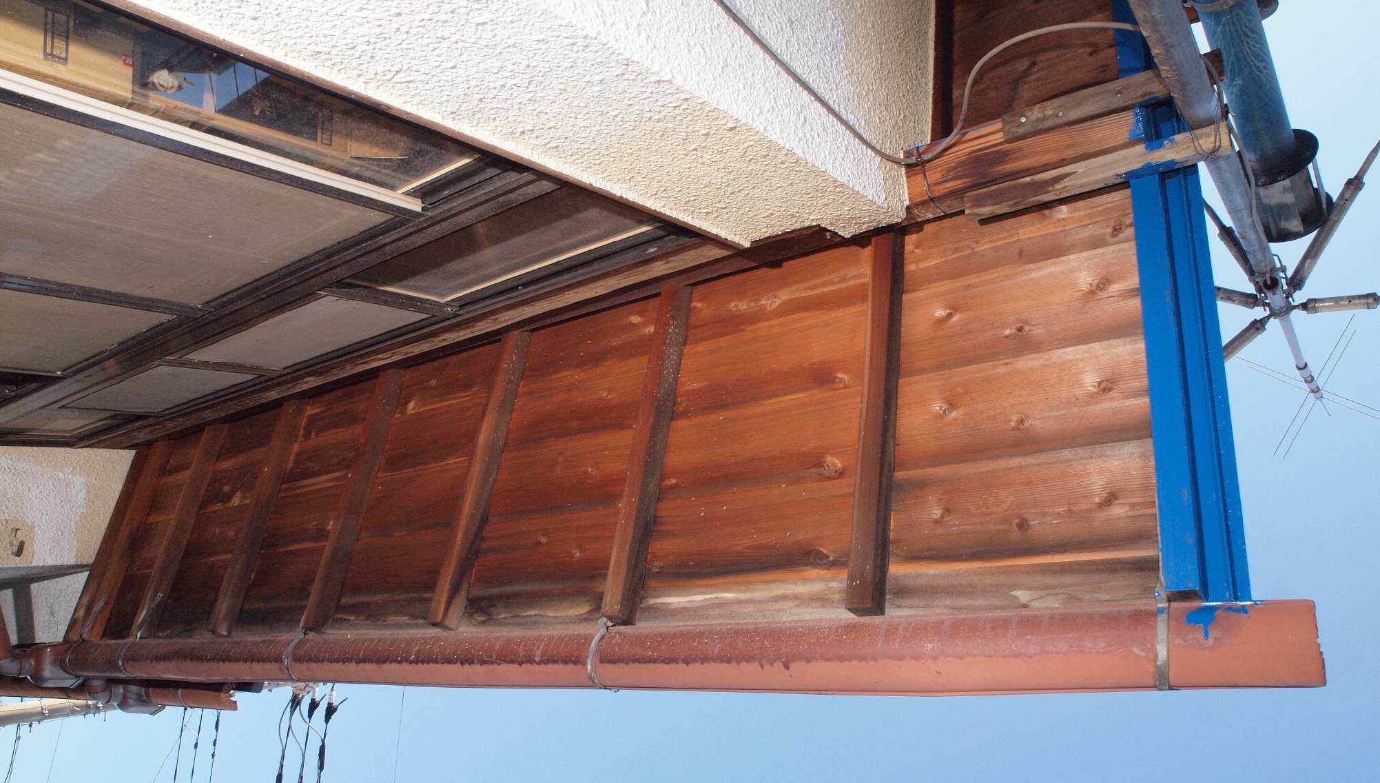 | 41. 修理前 1F台所 北側軒天・鼻隠板、東側から。 |