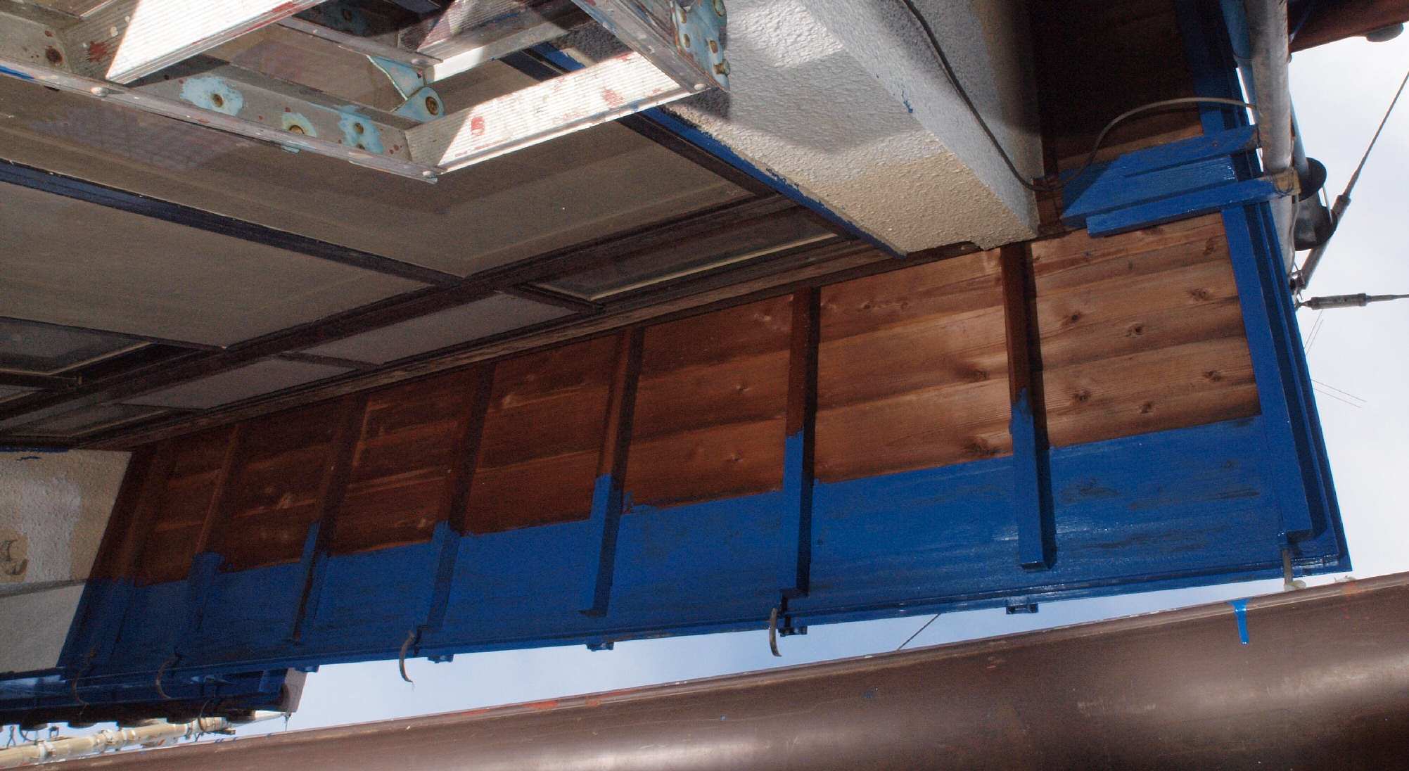 | 42. 修理中 1F台所 北側軒天・鼻隠板、東側から。 1回目の塗装終了。 |
