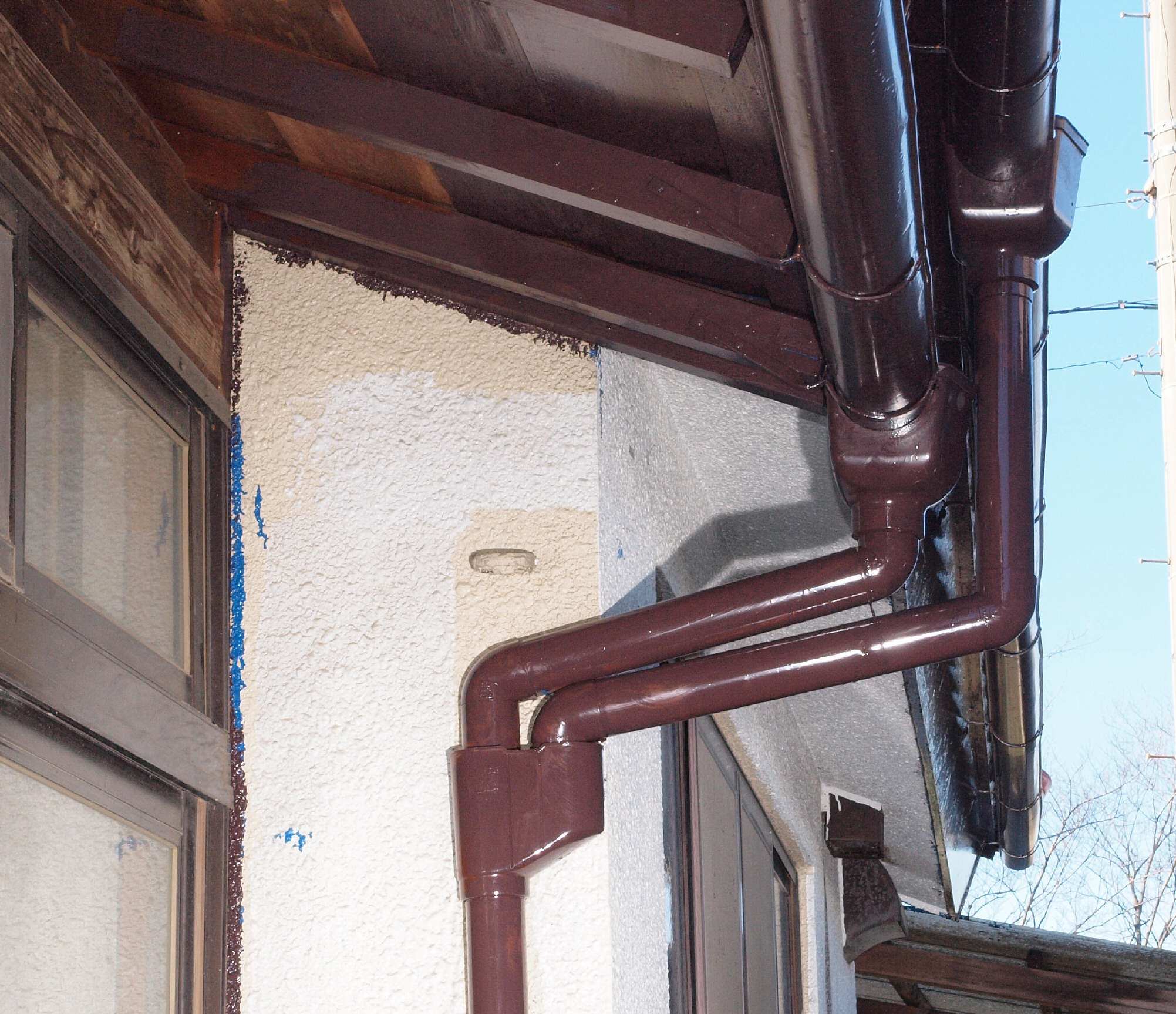 | 44. 修理後 1F台所 北側軒天、縦樋の様子。 |