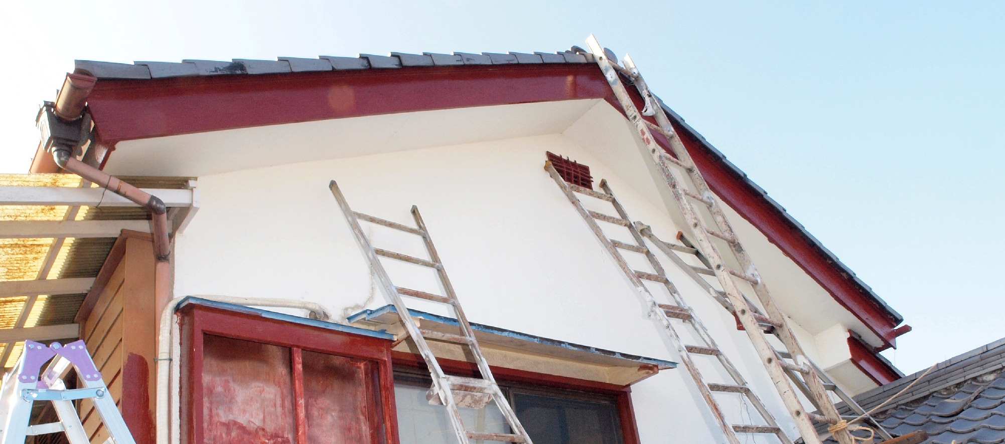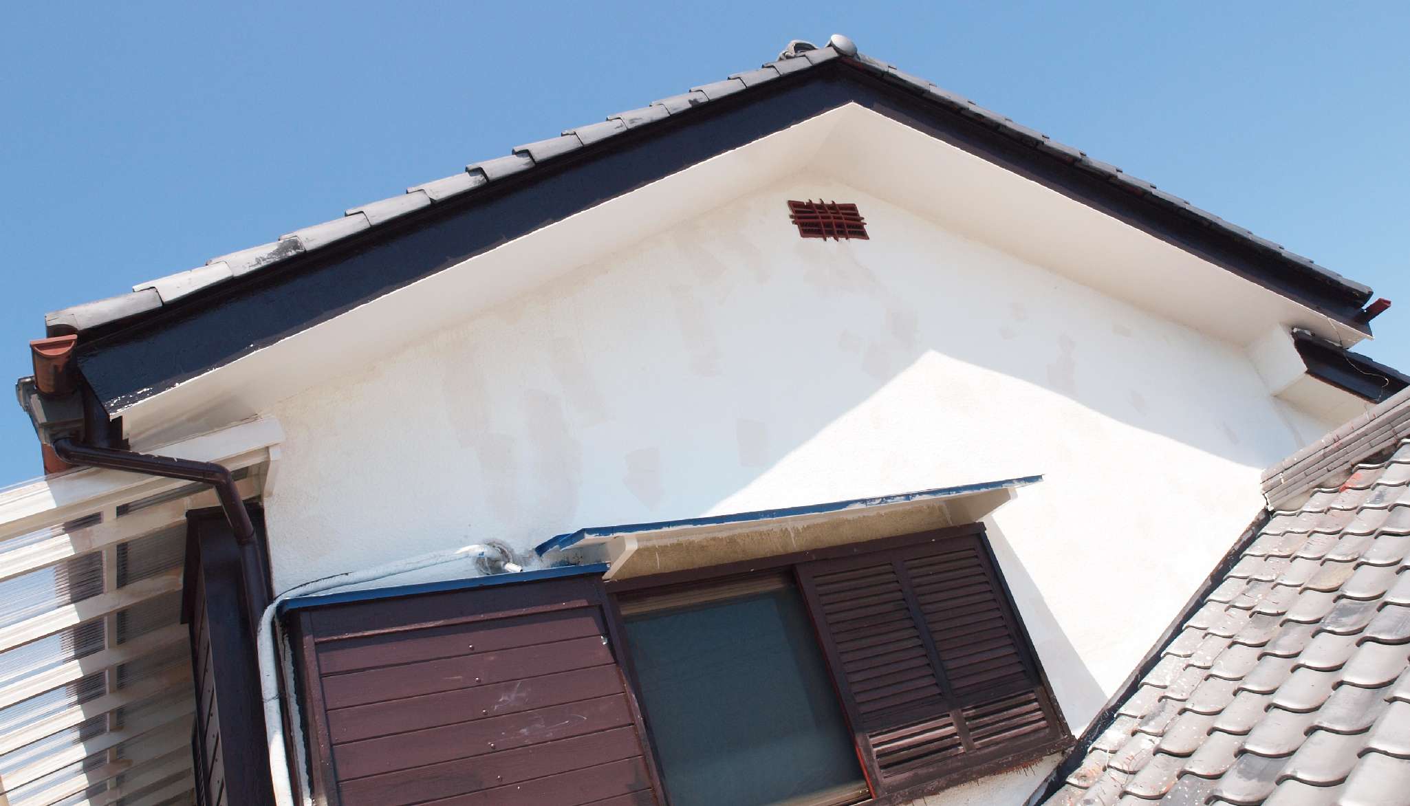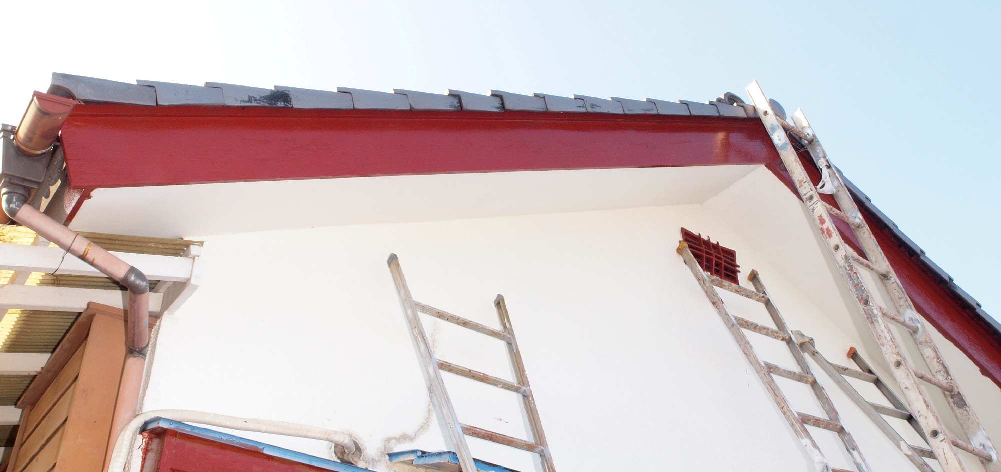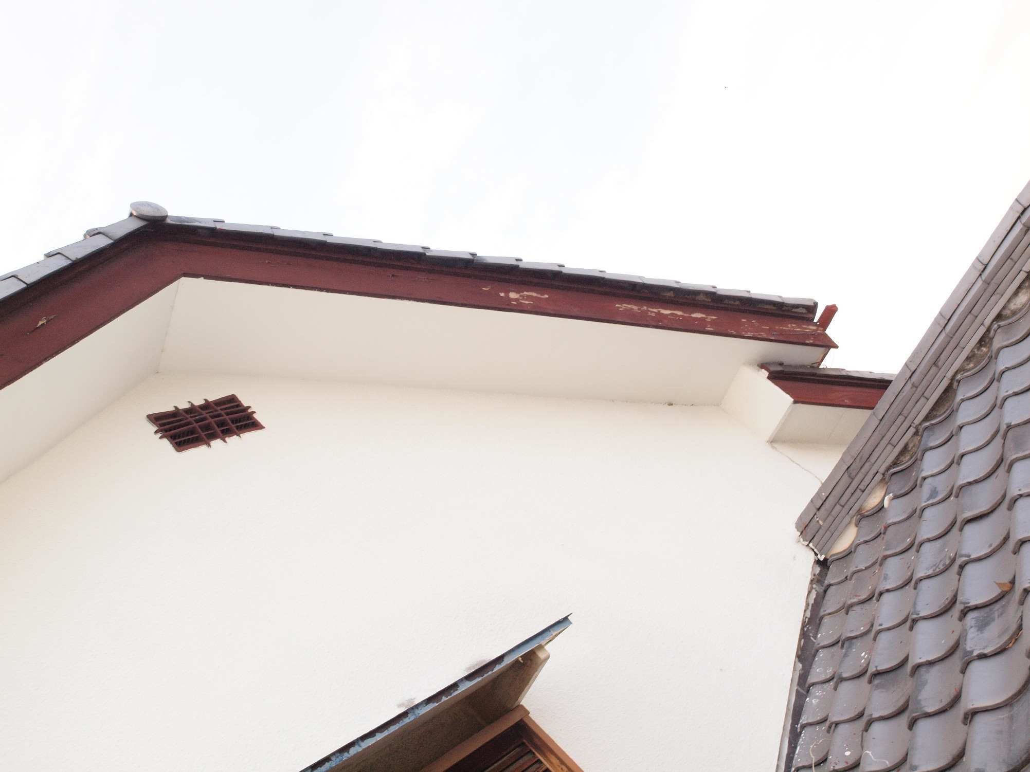 4. 平成29年修理中 軒天塗装。 破風下端も塗装する。