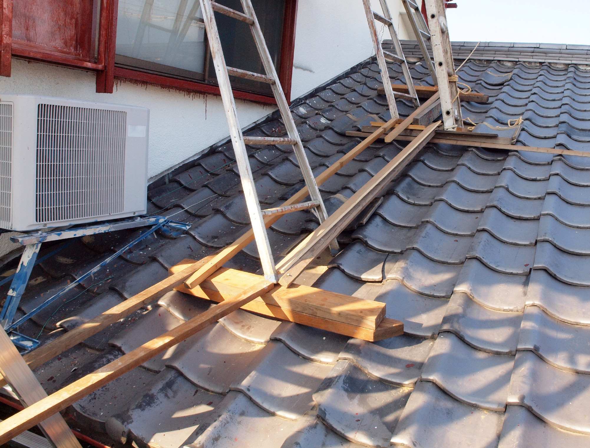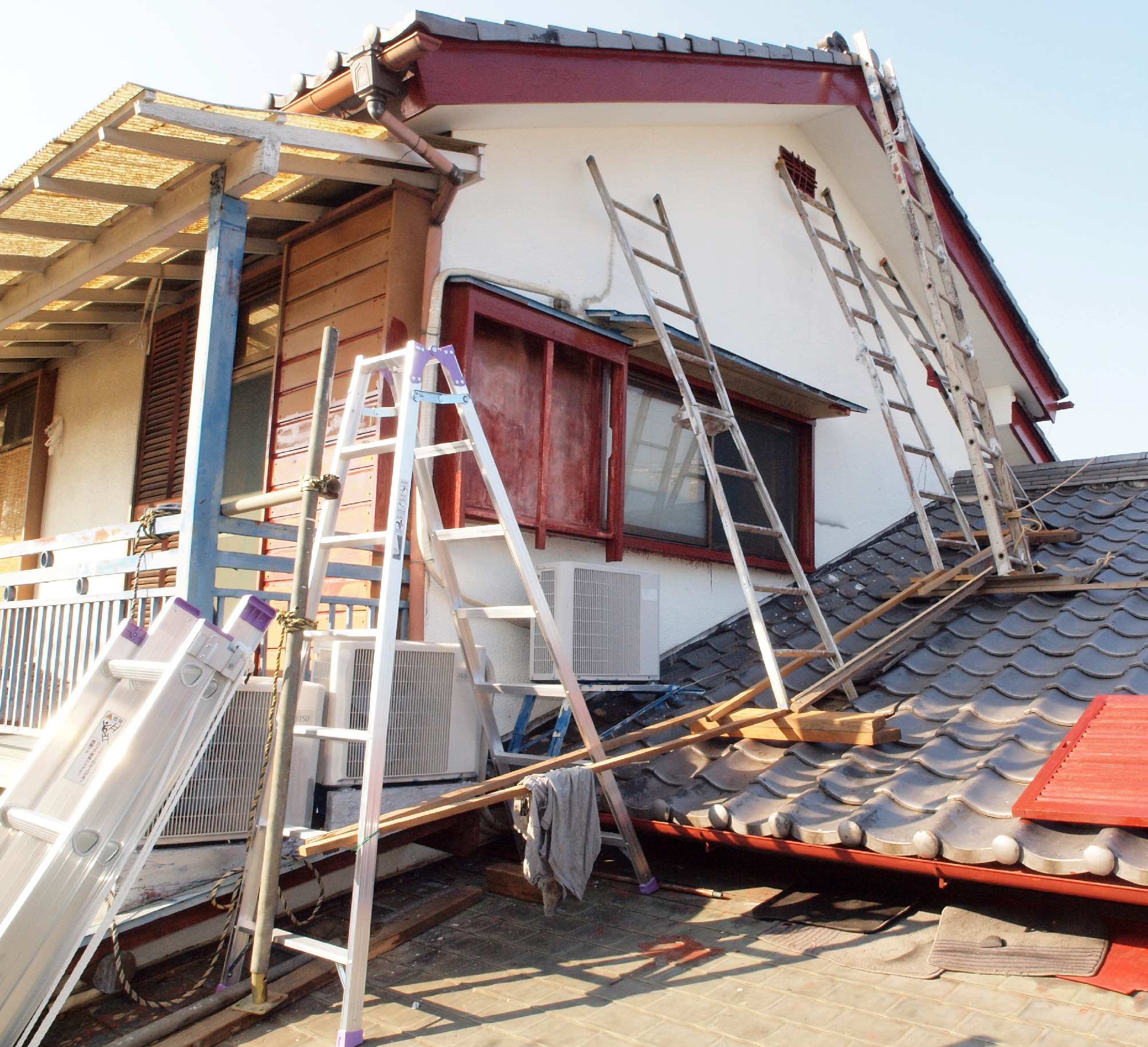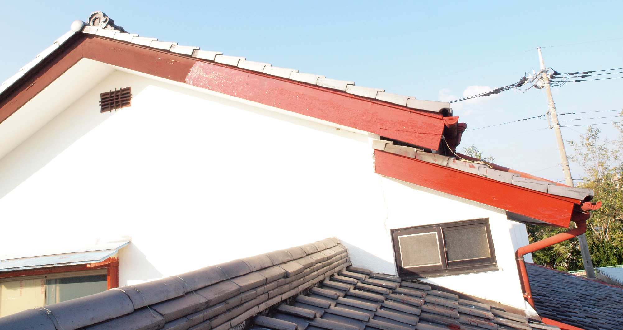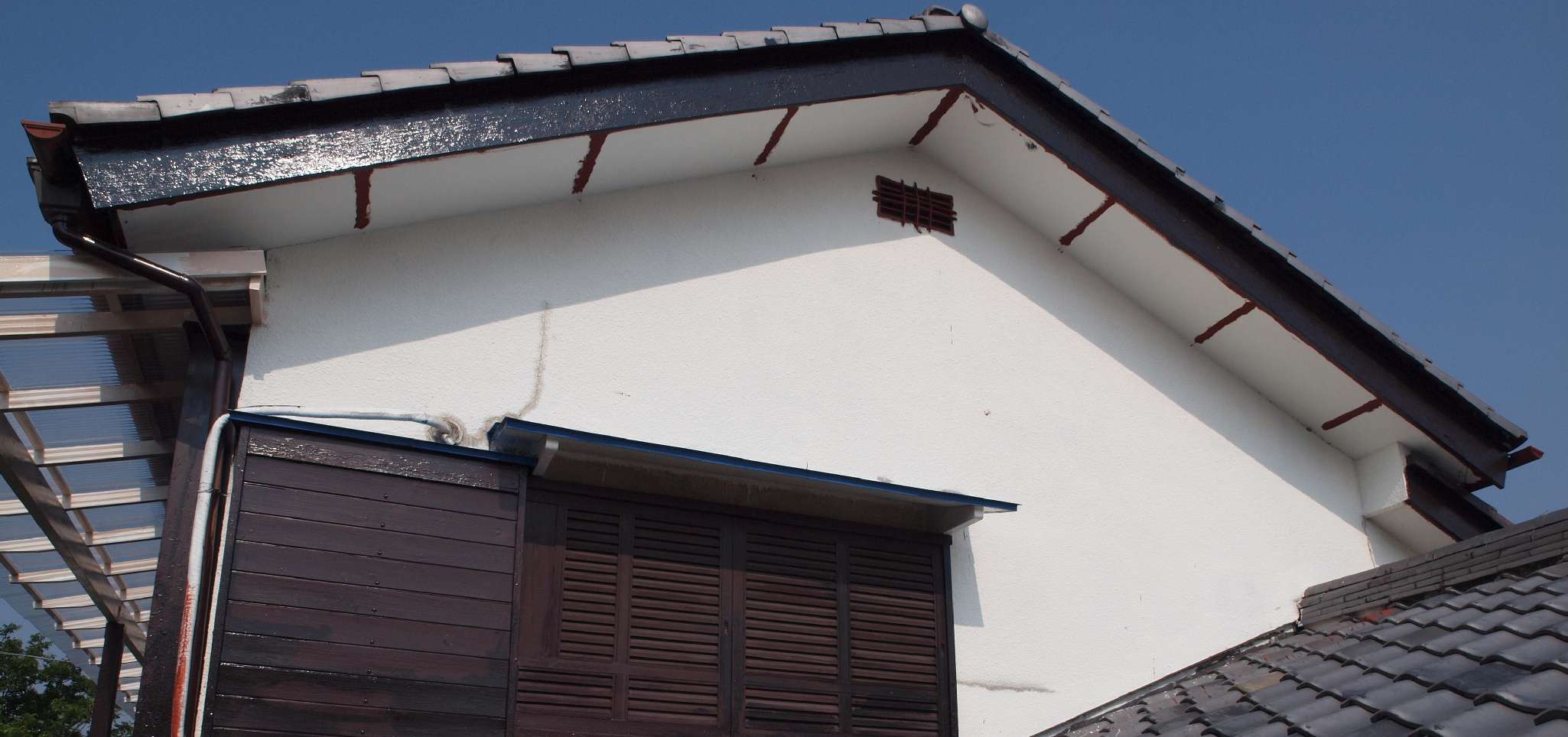 4. 平成29年修理中 軒天塗装。 破風下端も塗装する。